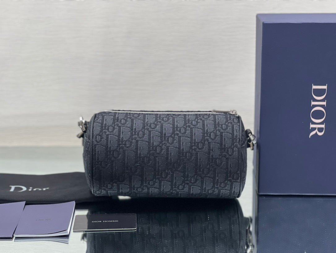 ROUND BUCKET 21 BAG IN BLACK OBLIQUE JACQUARD