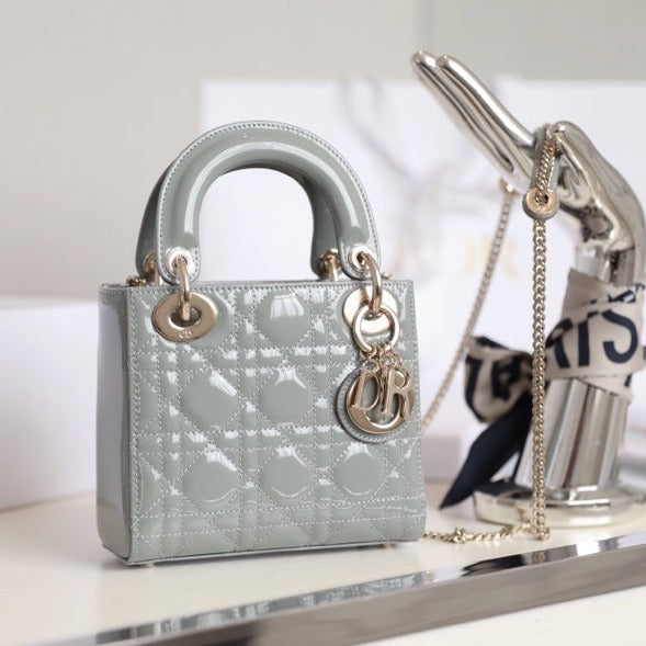 SMALL D-JOY BAG 22 IN GREY LAMBSKIN