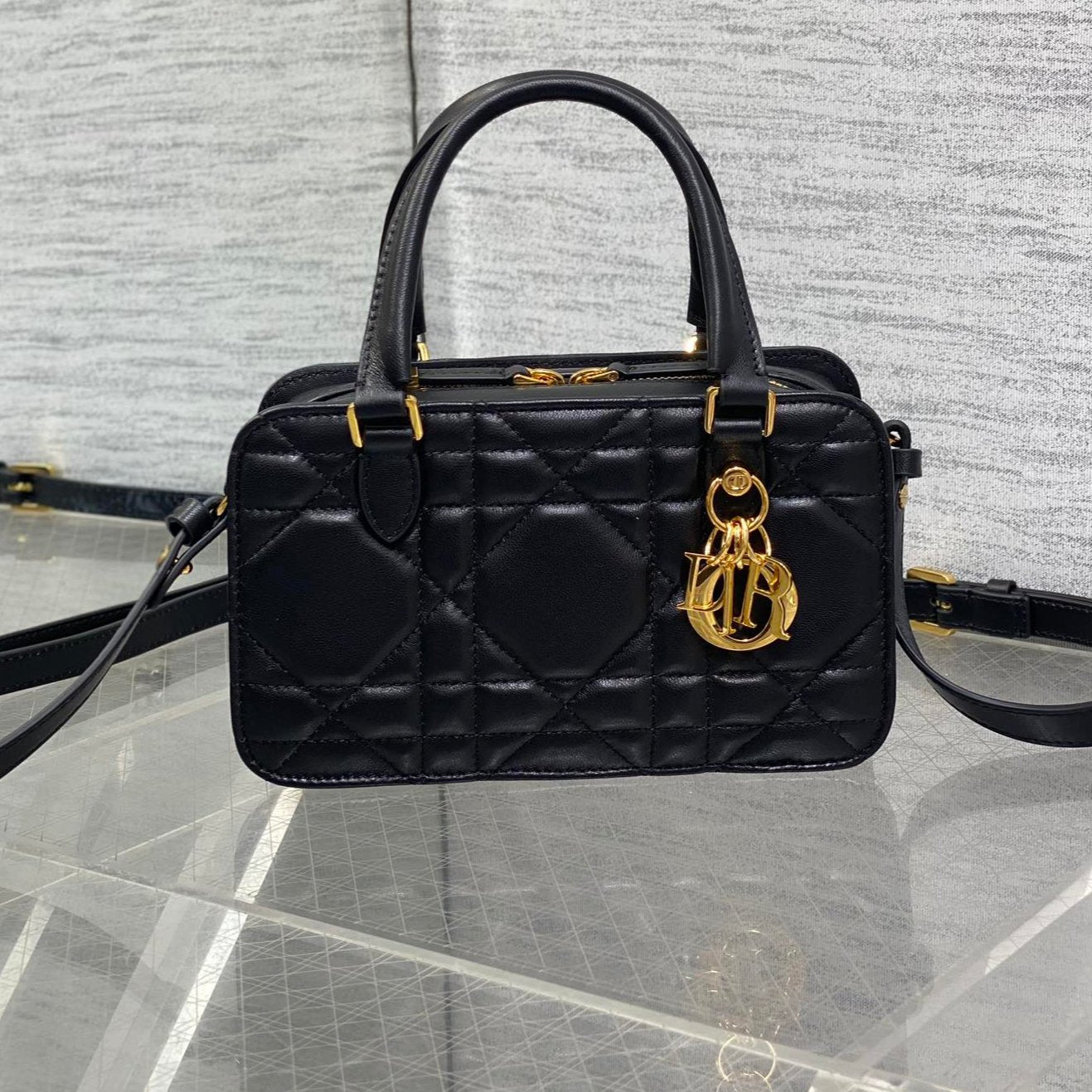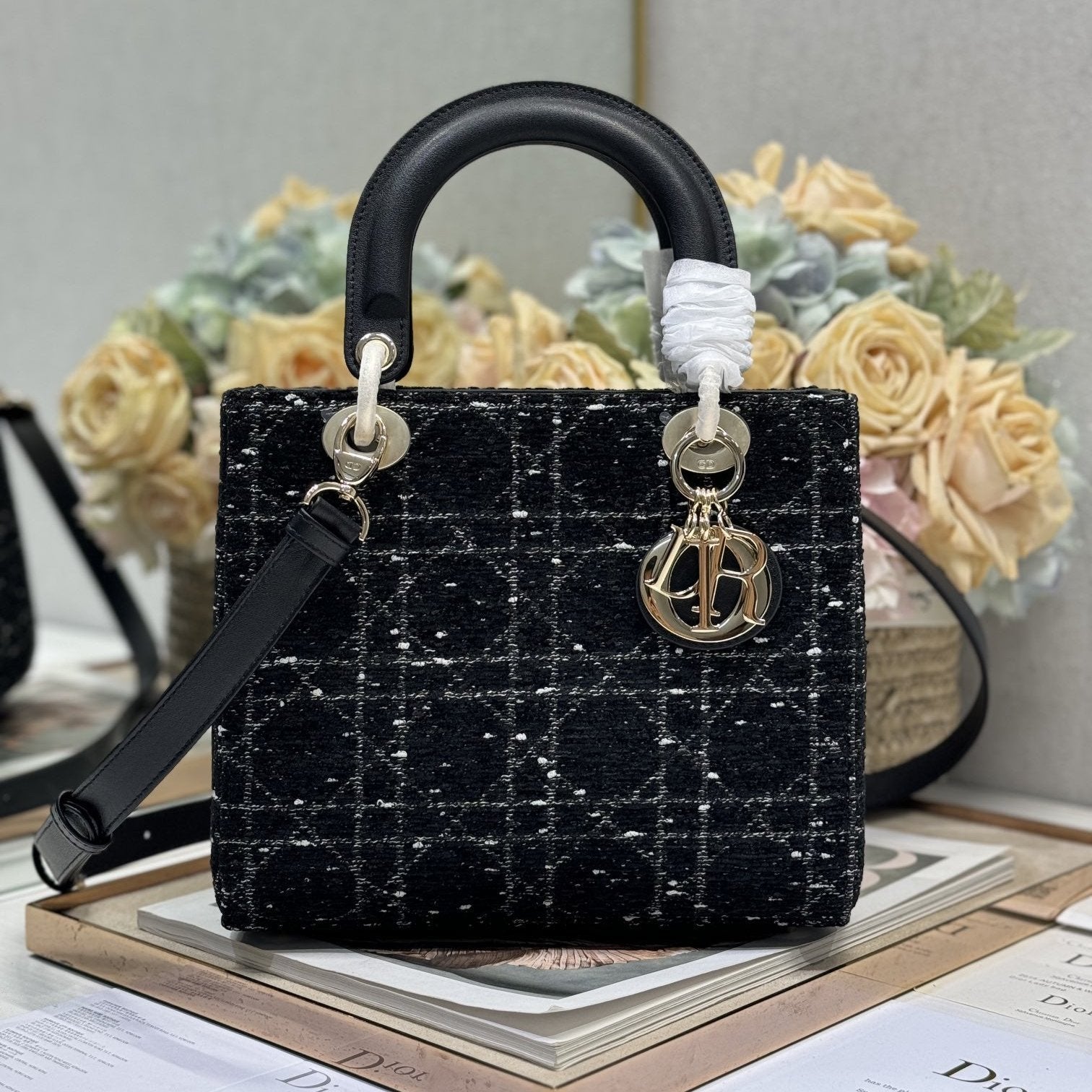 CD Lady Bag 20cm Black Lambskin Black White Canvas