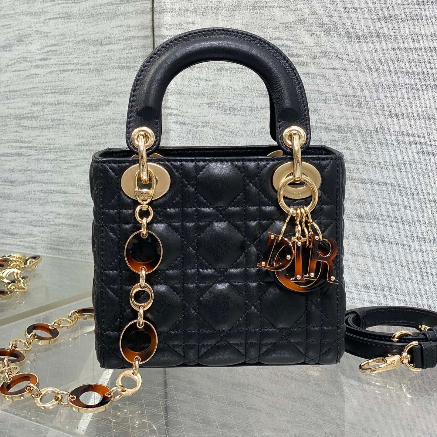 CD Lady Bag 20cm Black Lambskin Brown Charm