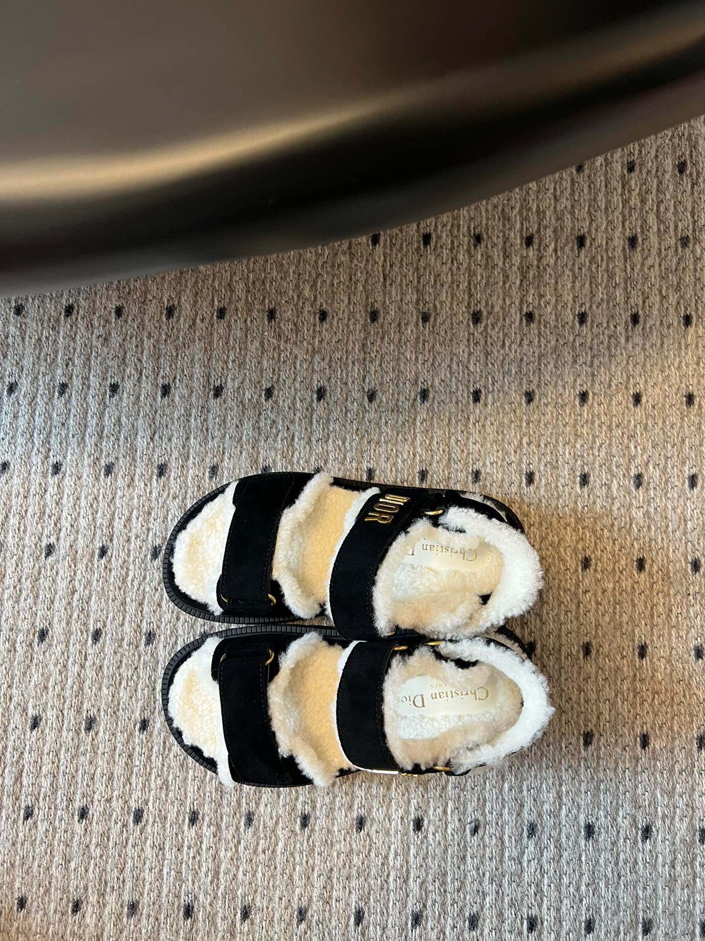 CD Dioract Sandal 40mm Black Suede And Fleece Lining