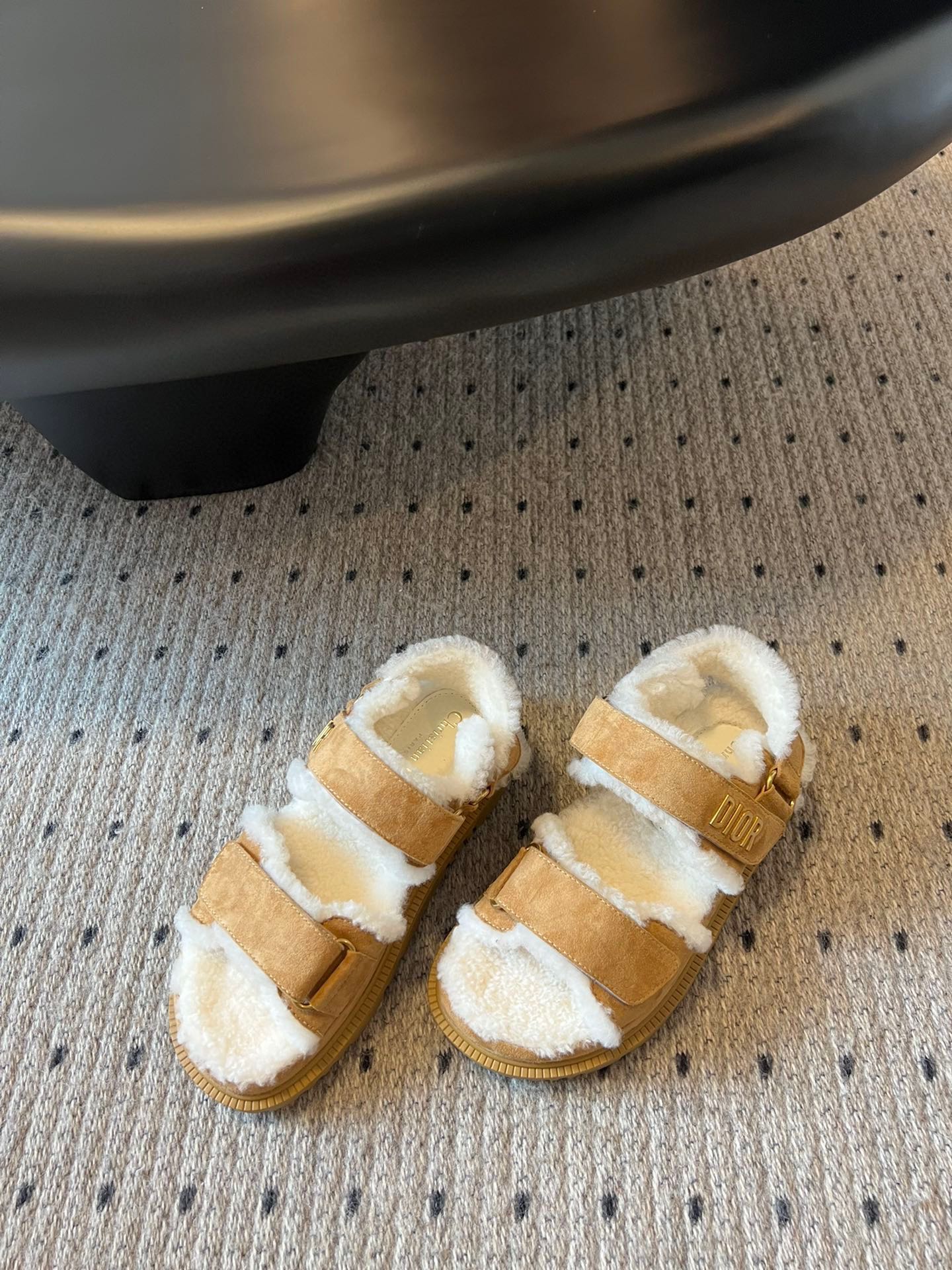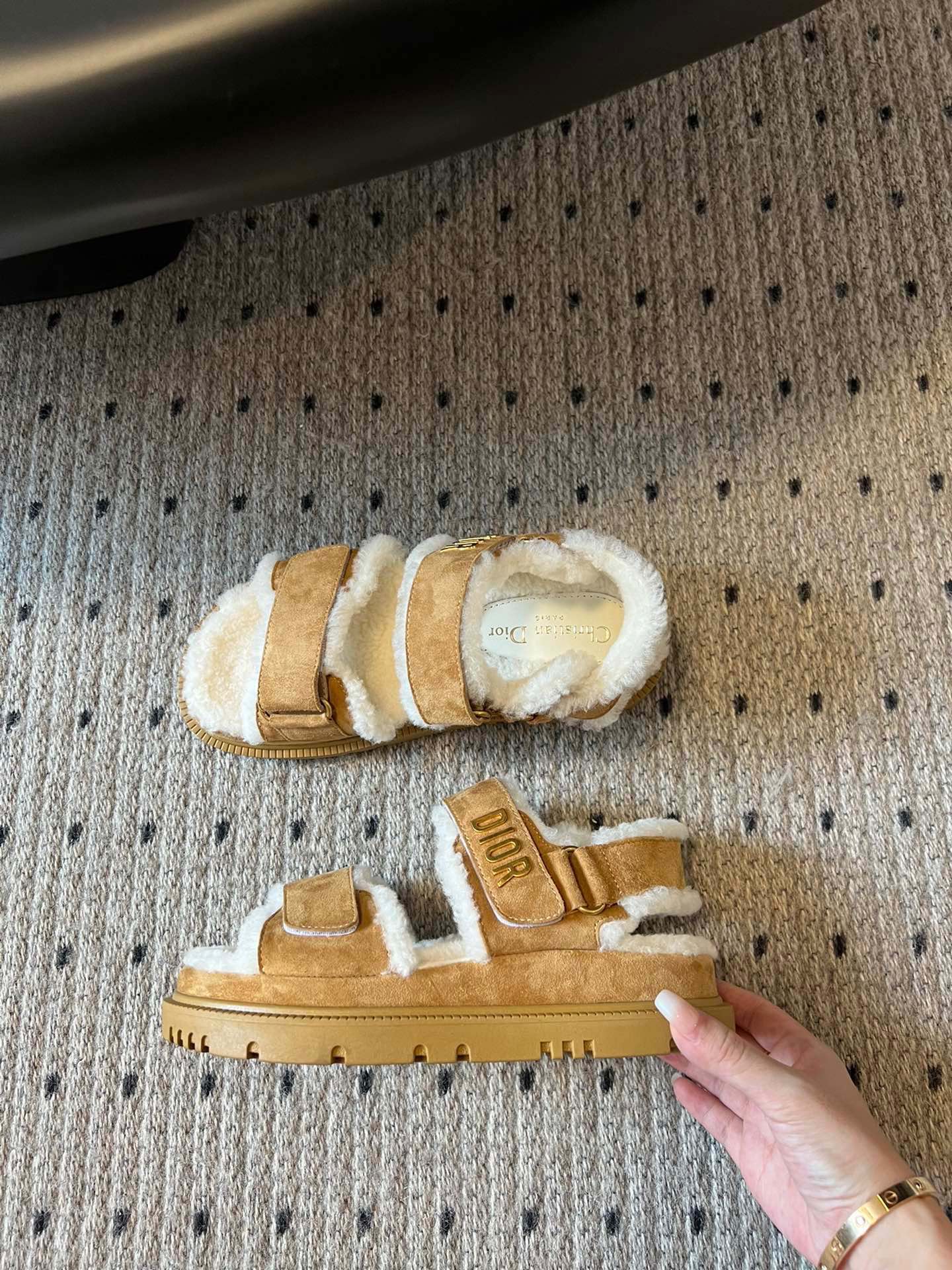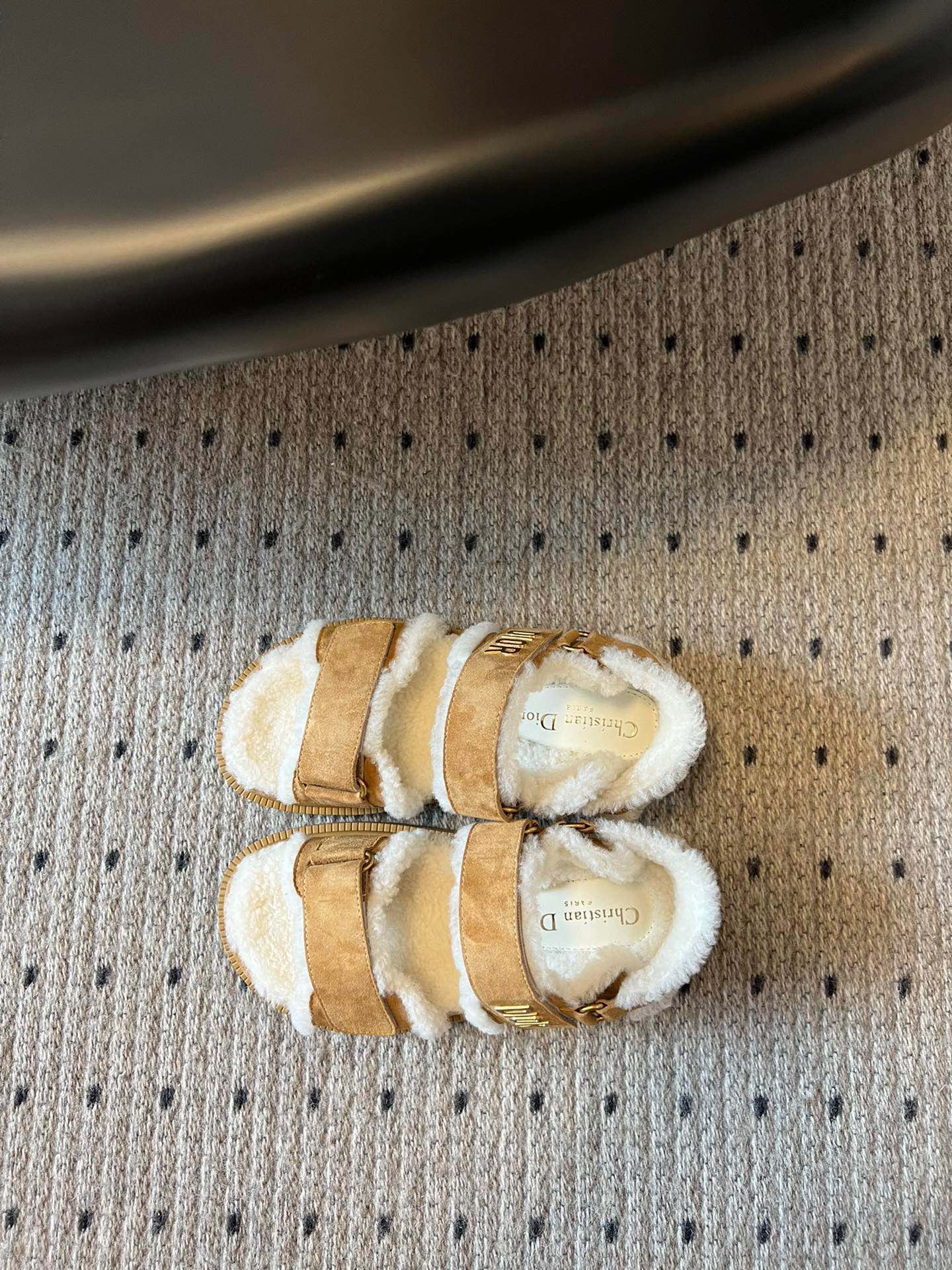 CD Dioract Sandal 40mm Brown Yellow Suede And Fleece Lining