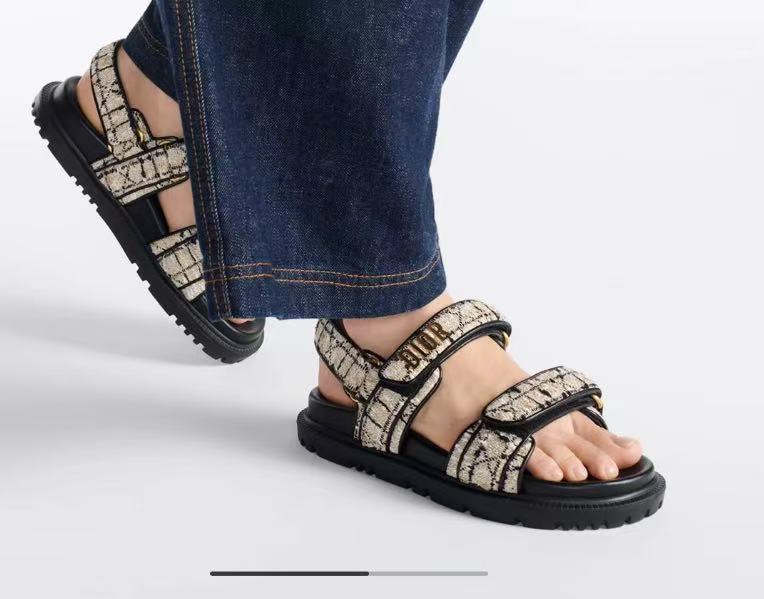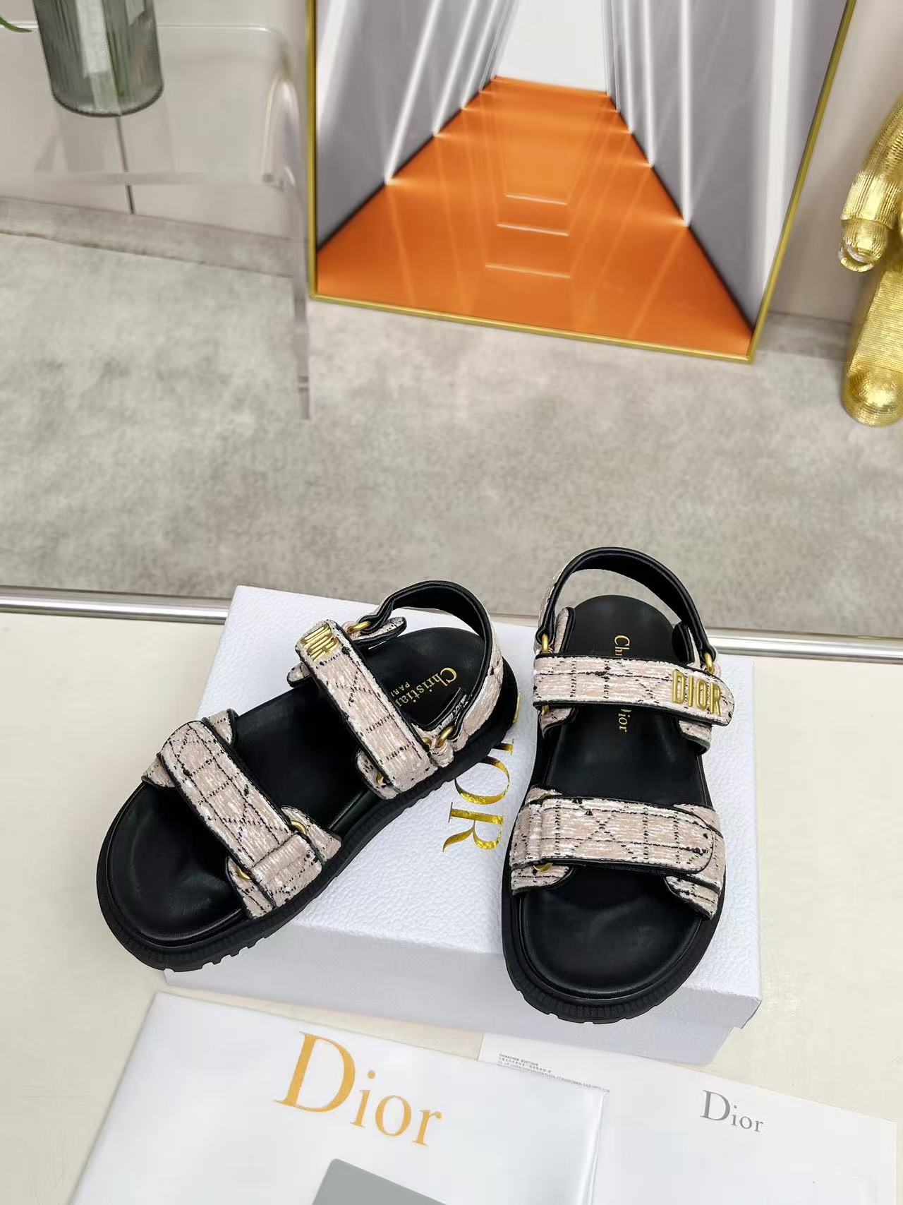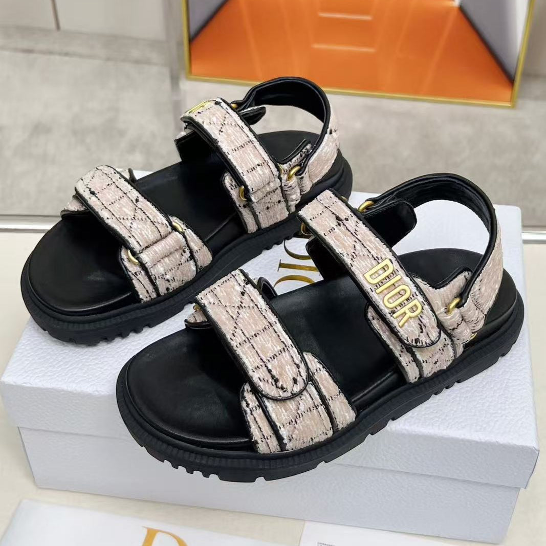 CD Dioract Sandal Beige & Black Cannage Tweed Leather