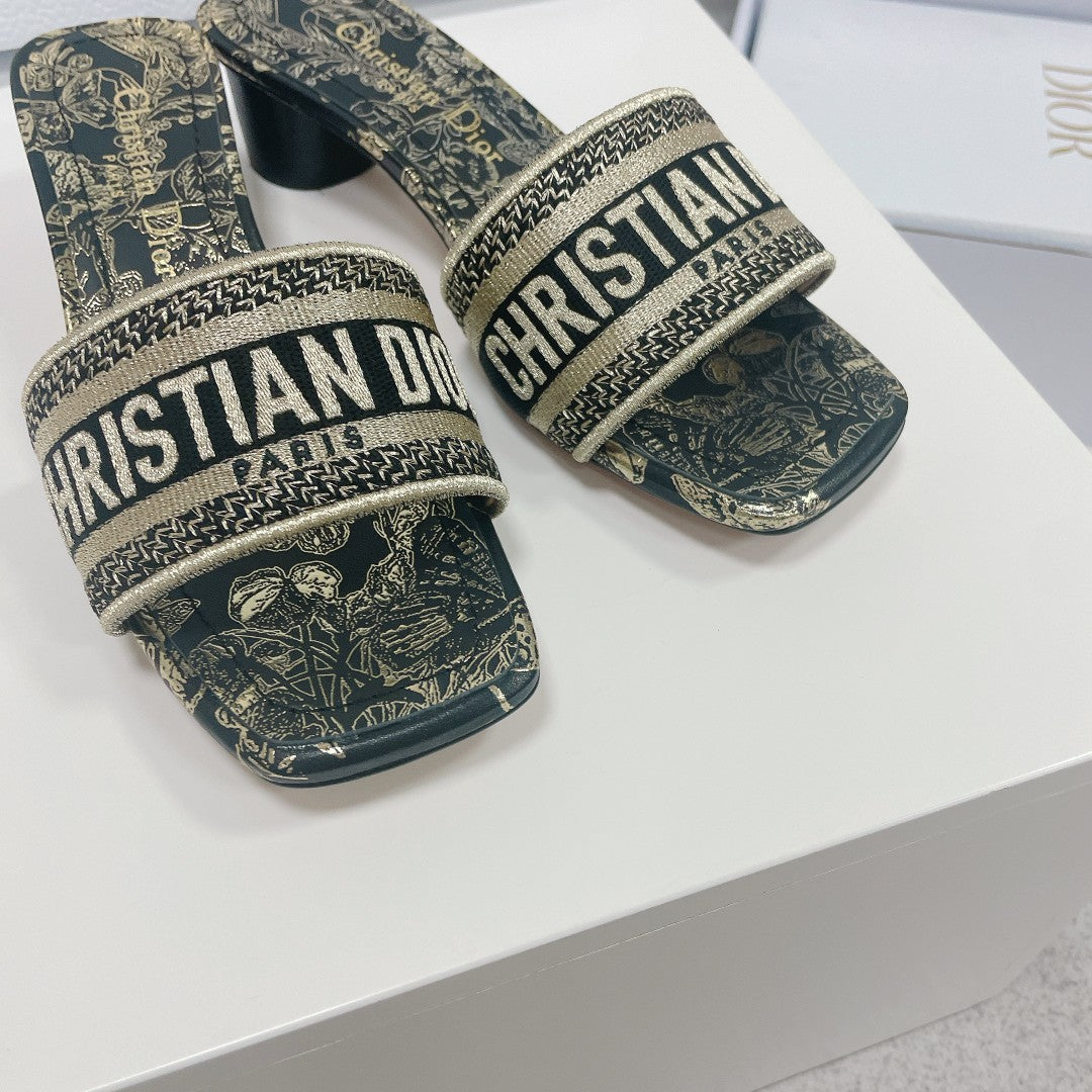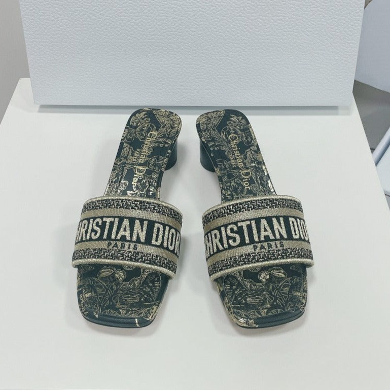 cd dway slide 35 gold-tone black cotton embroidery flower motif
