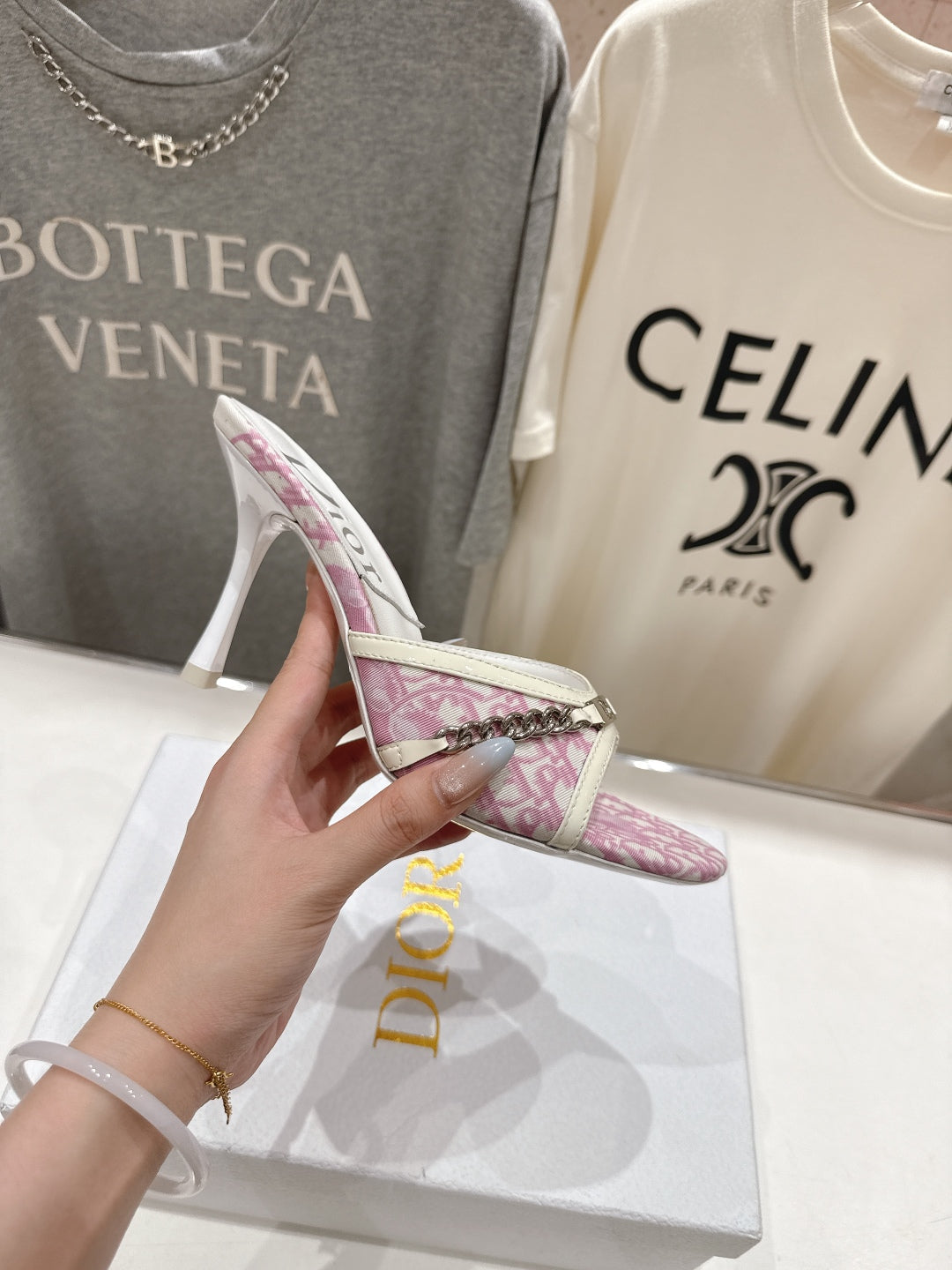 Dior Sandal Pink mix White Canvas Sheepskin 174103