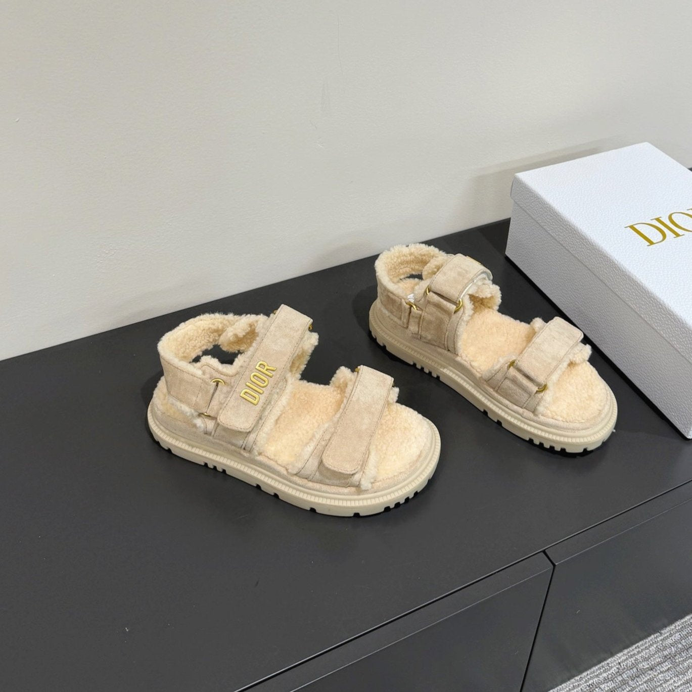 Dioract Sandal In Light Grey Suede And Wool Fleece Lining 109873