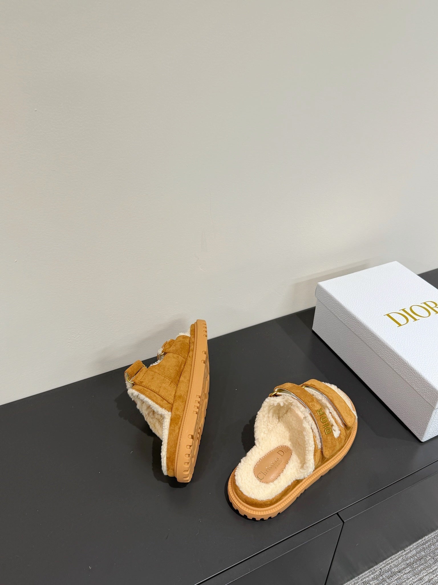 Dioract Slide In Caramel Suede And Wool Fleece Lining 109877
