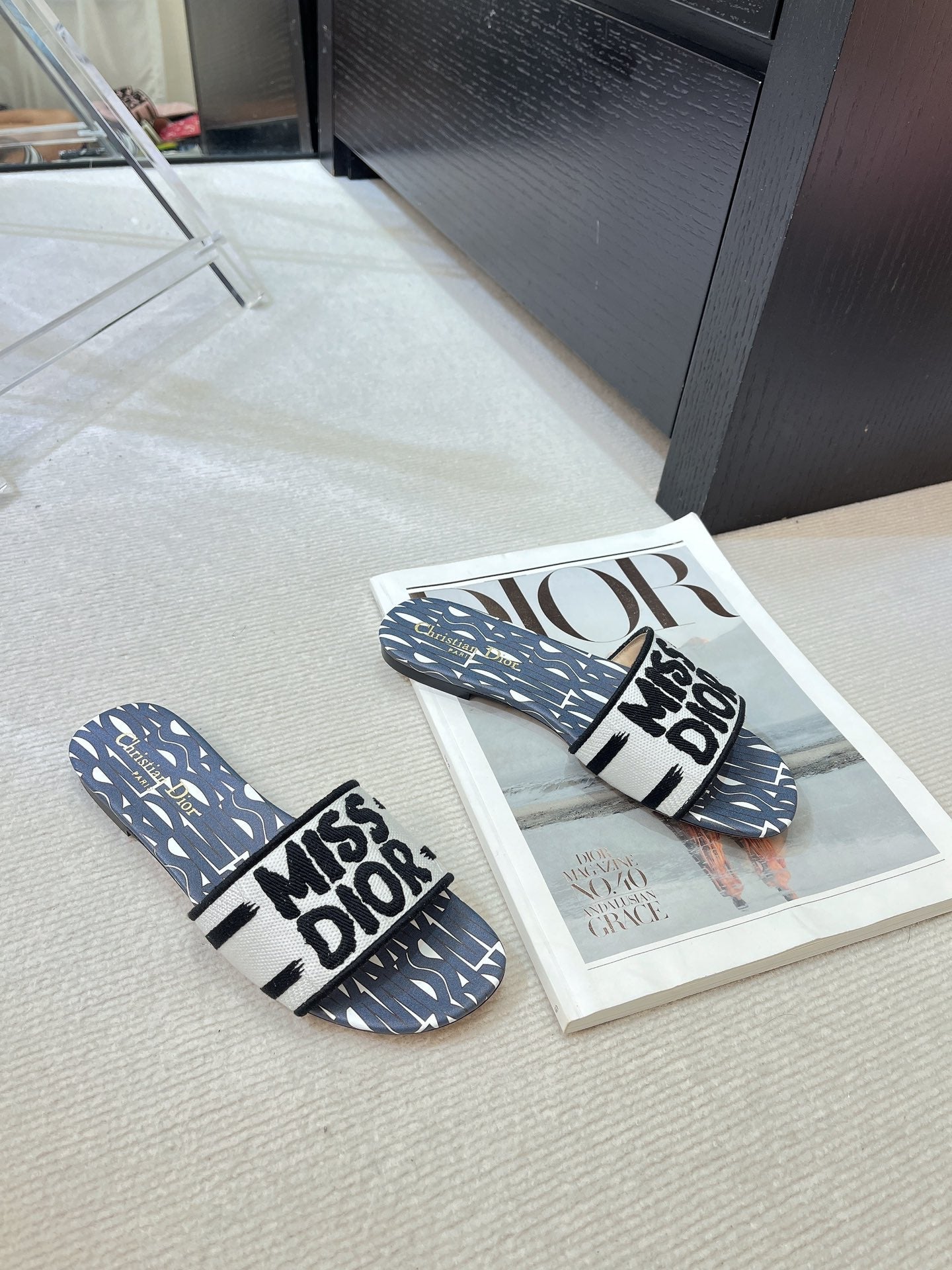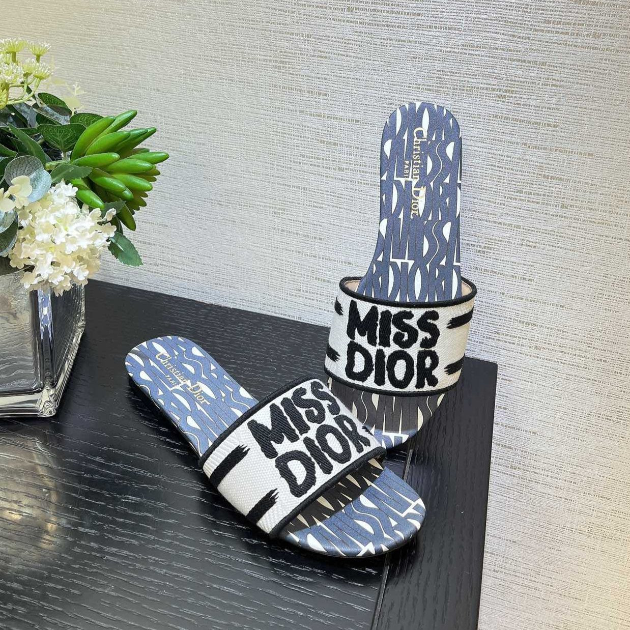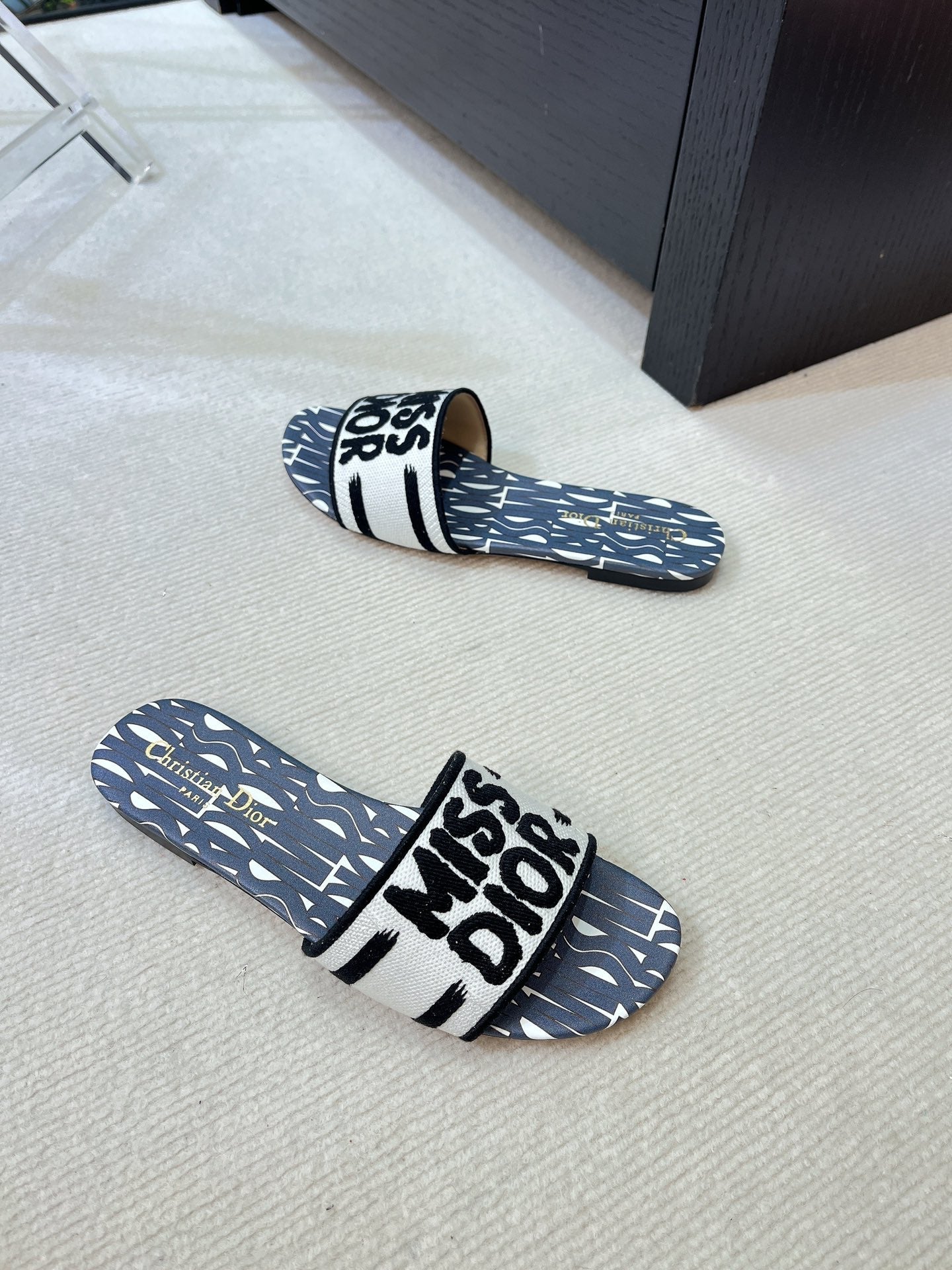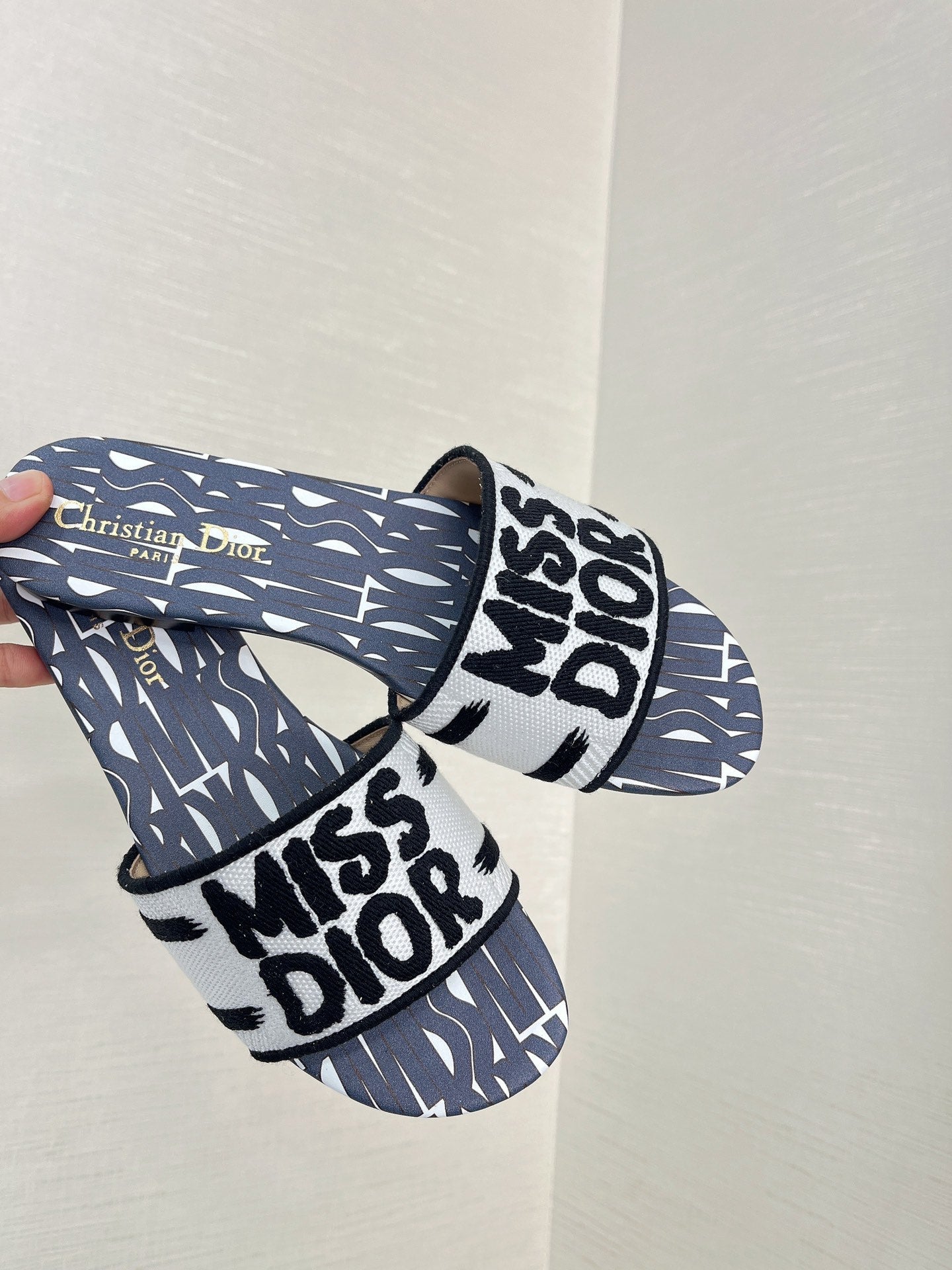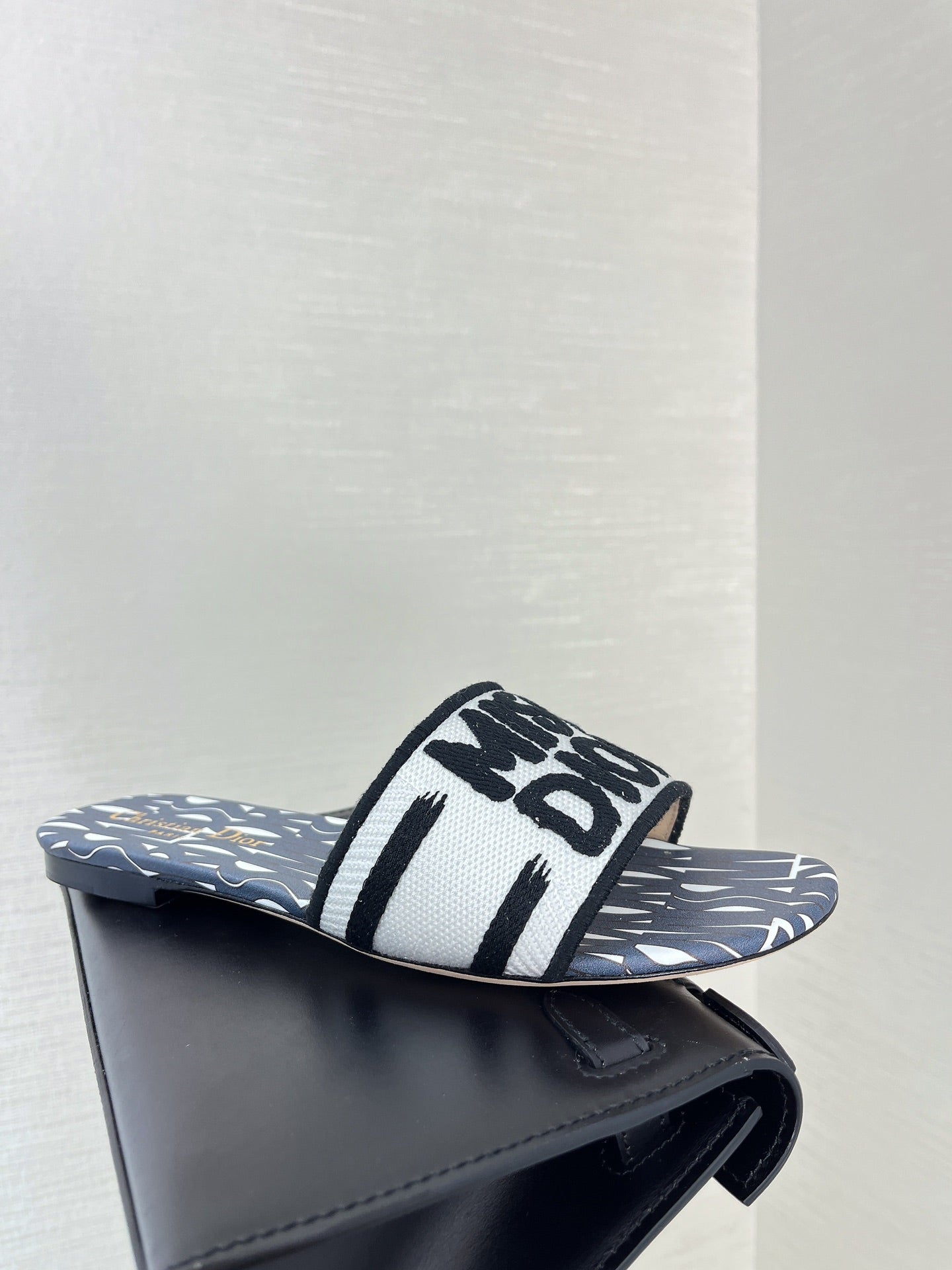 dway slide embroidered cotton grey miss cd alllover motif