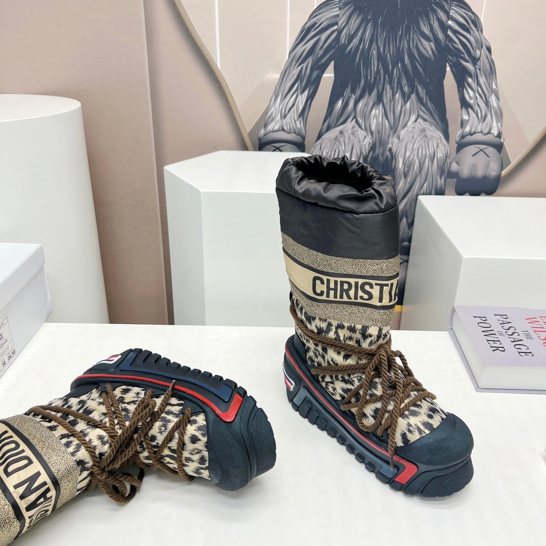CD Snow Ankle Boots Black Beige Cowhide Nylon Fabric 539662