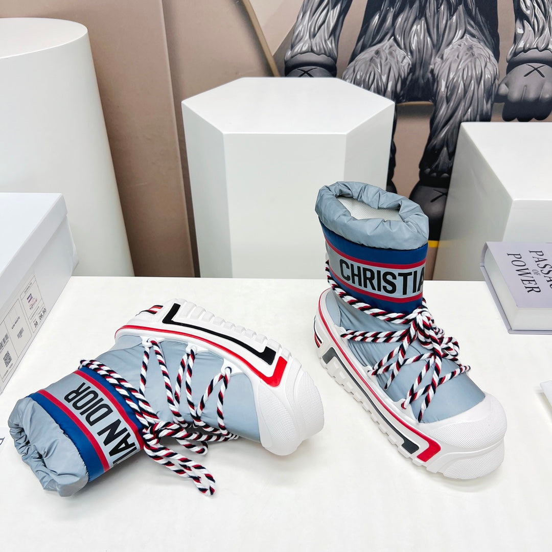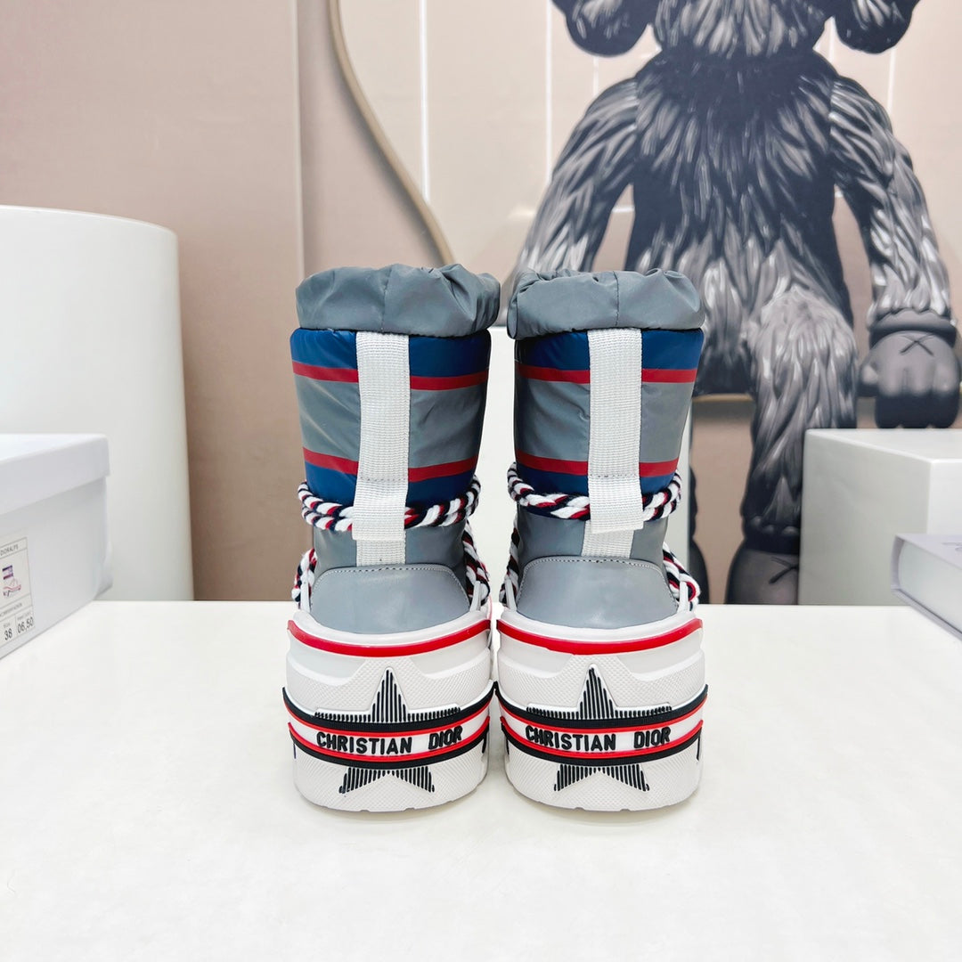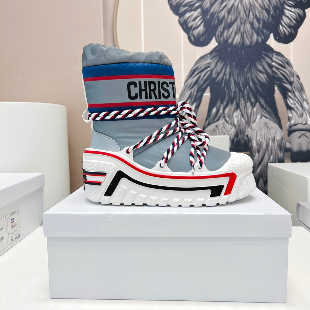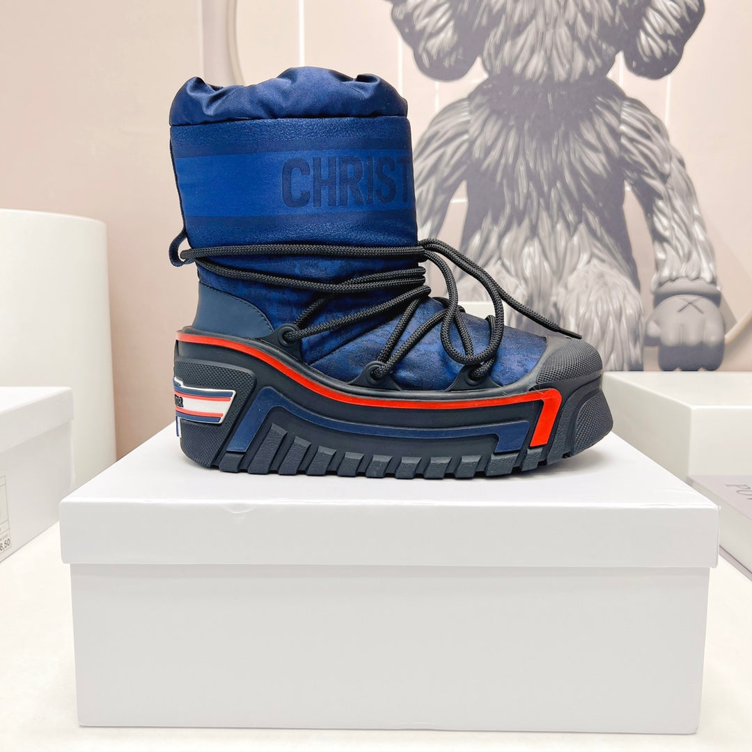 CD Platform Snow Boots Navy Blue White Cowhide Nylon 539657