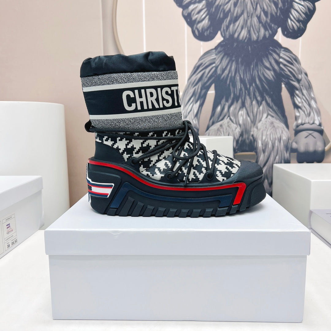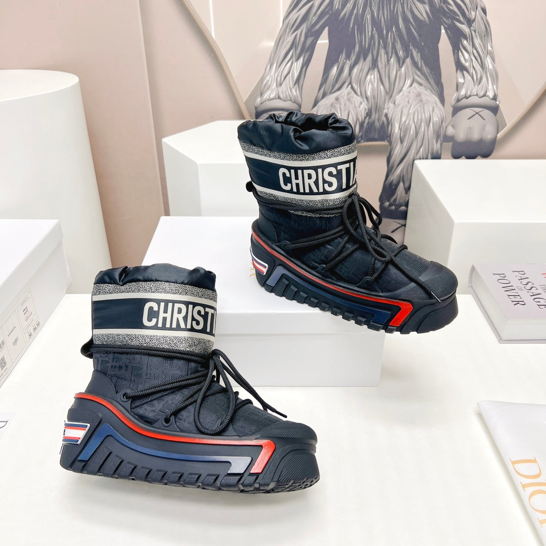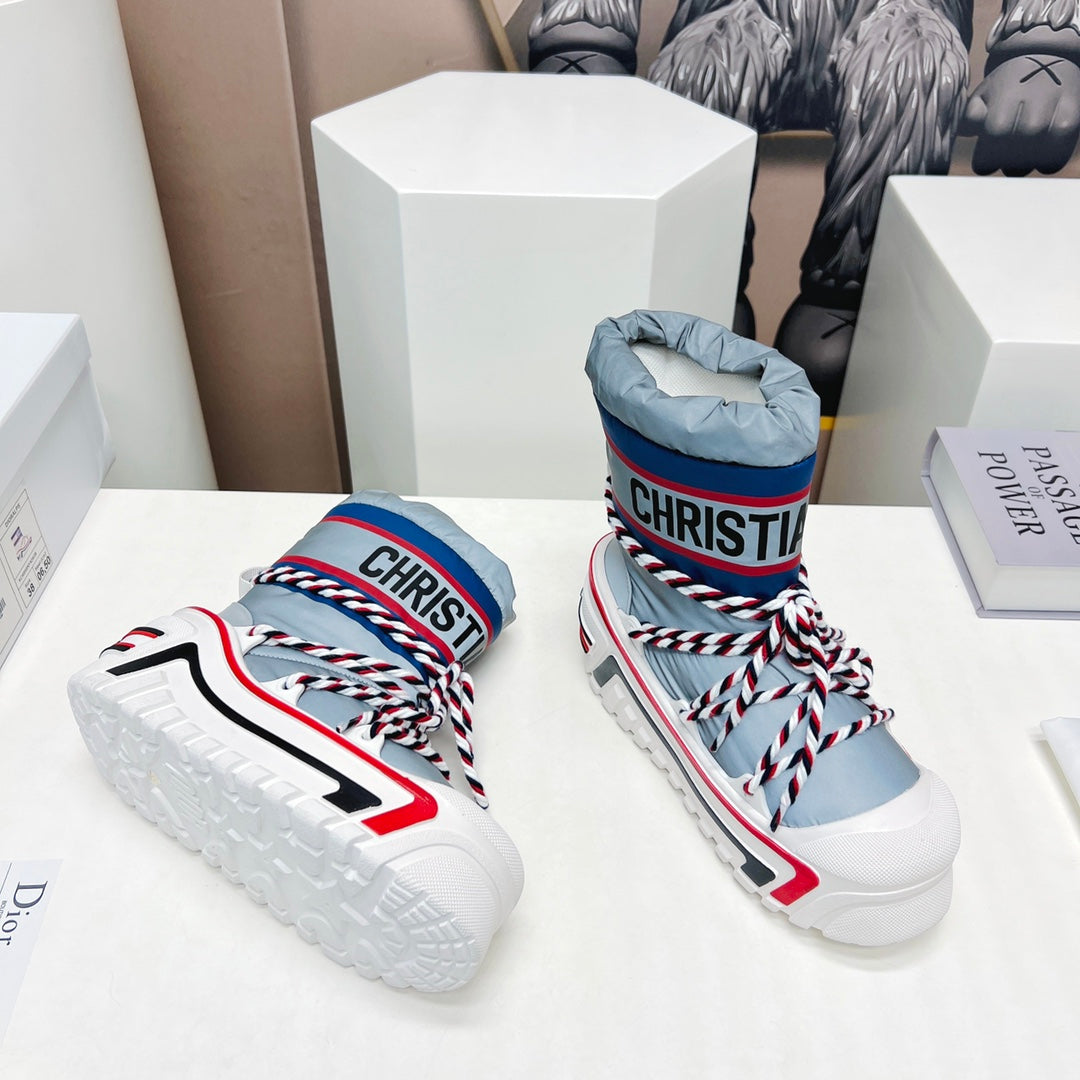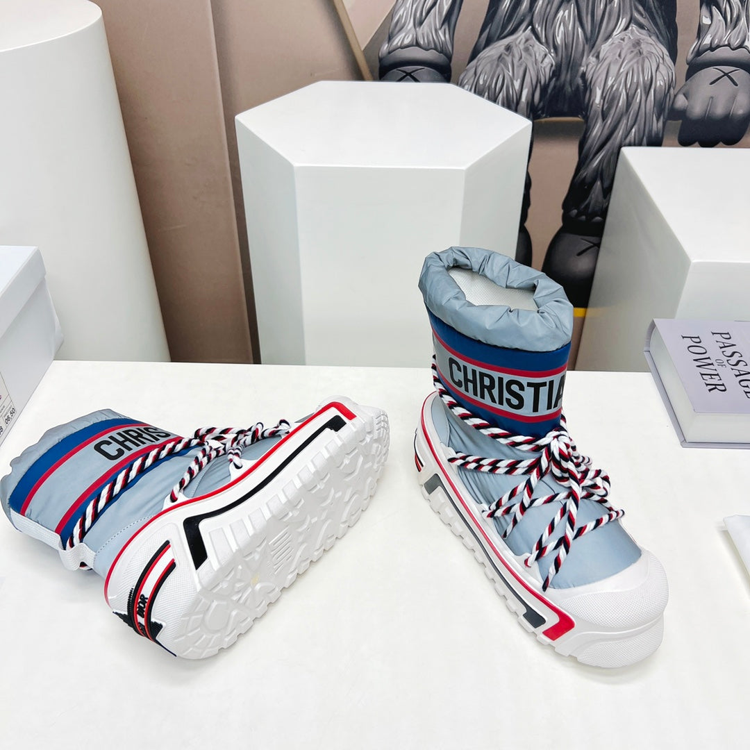 CD Platform Snow Boots Navy Blue White Cowhide Nylon 539657