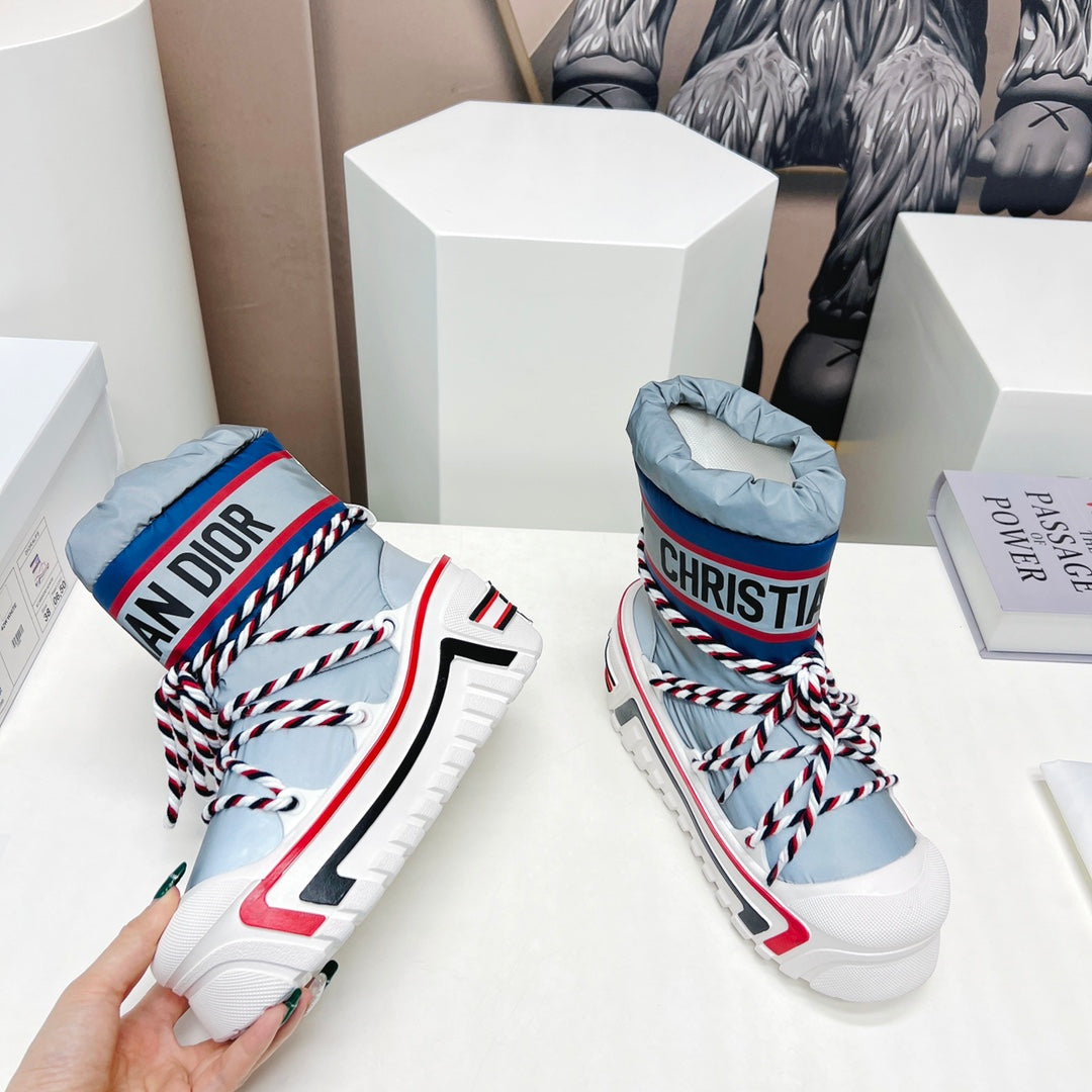 CD Snow Ankle Boots Light Blue Cowhide Nylon Fabric 539659