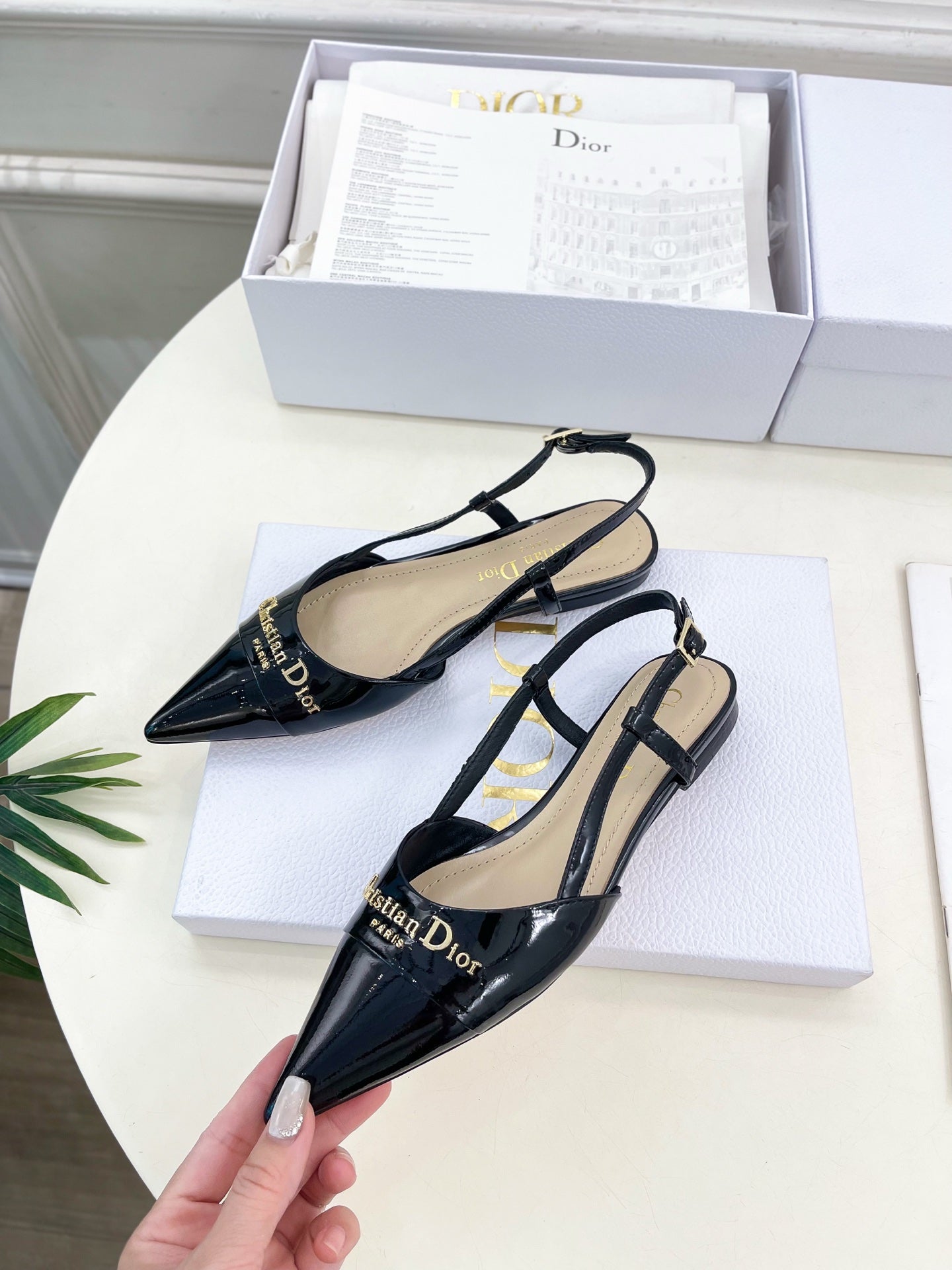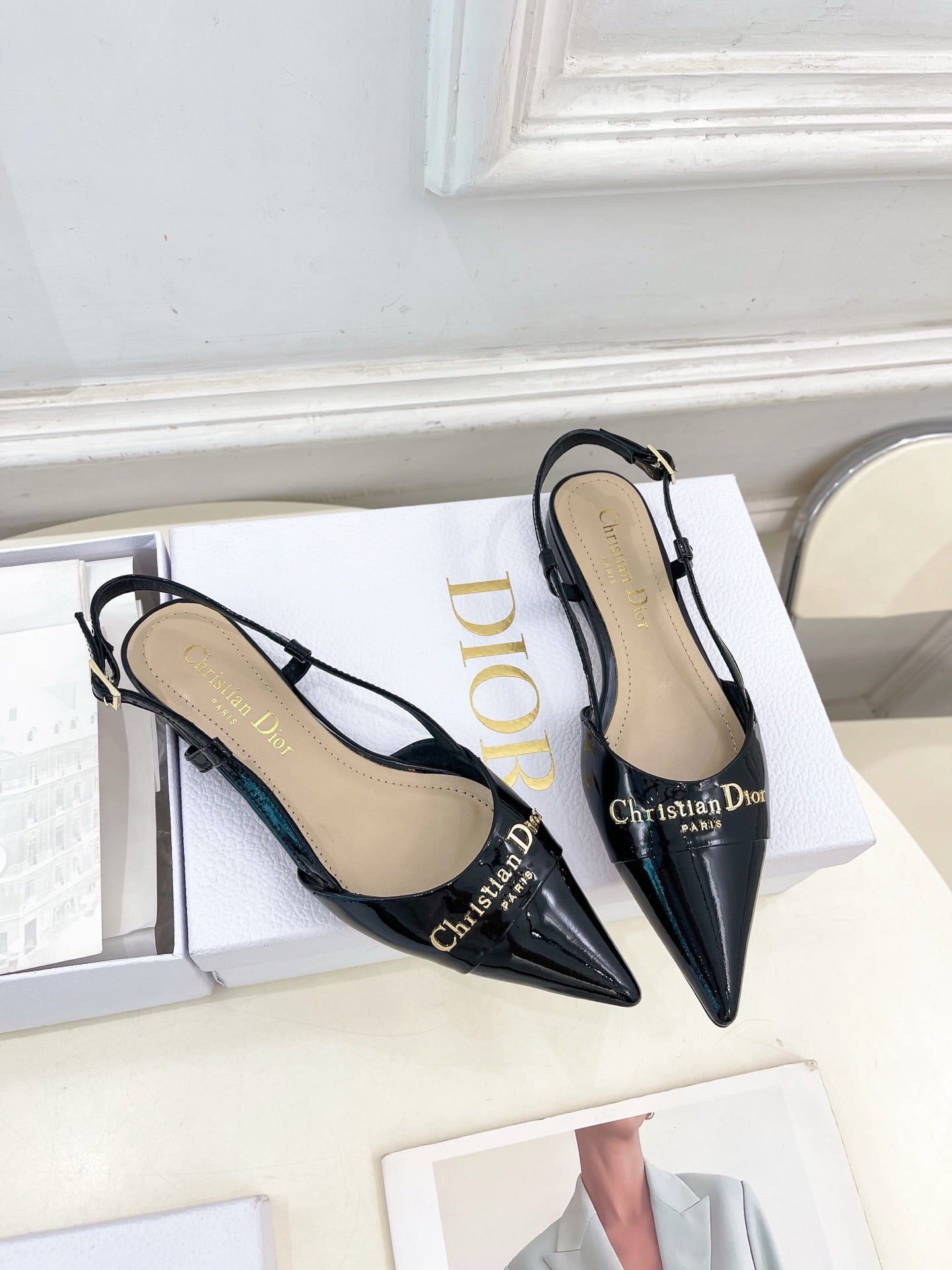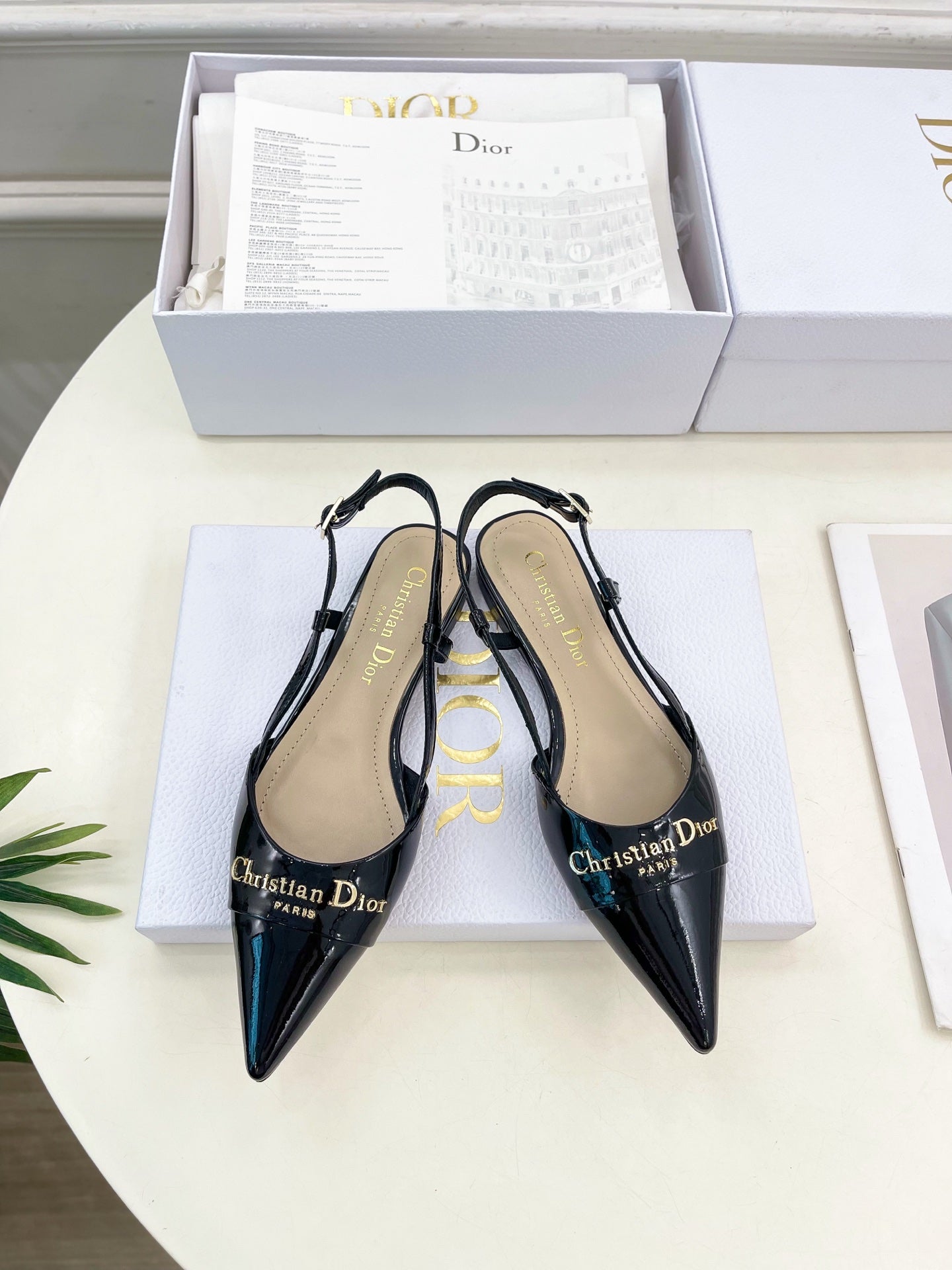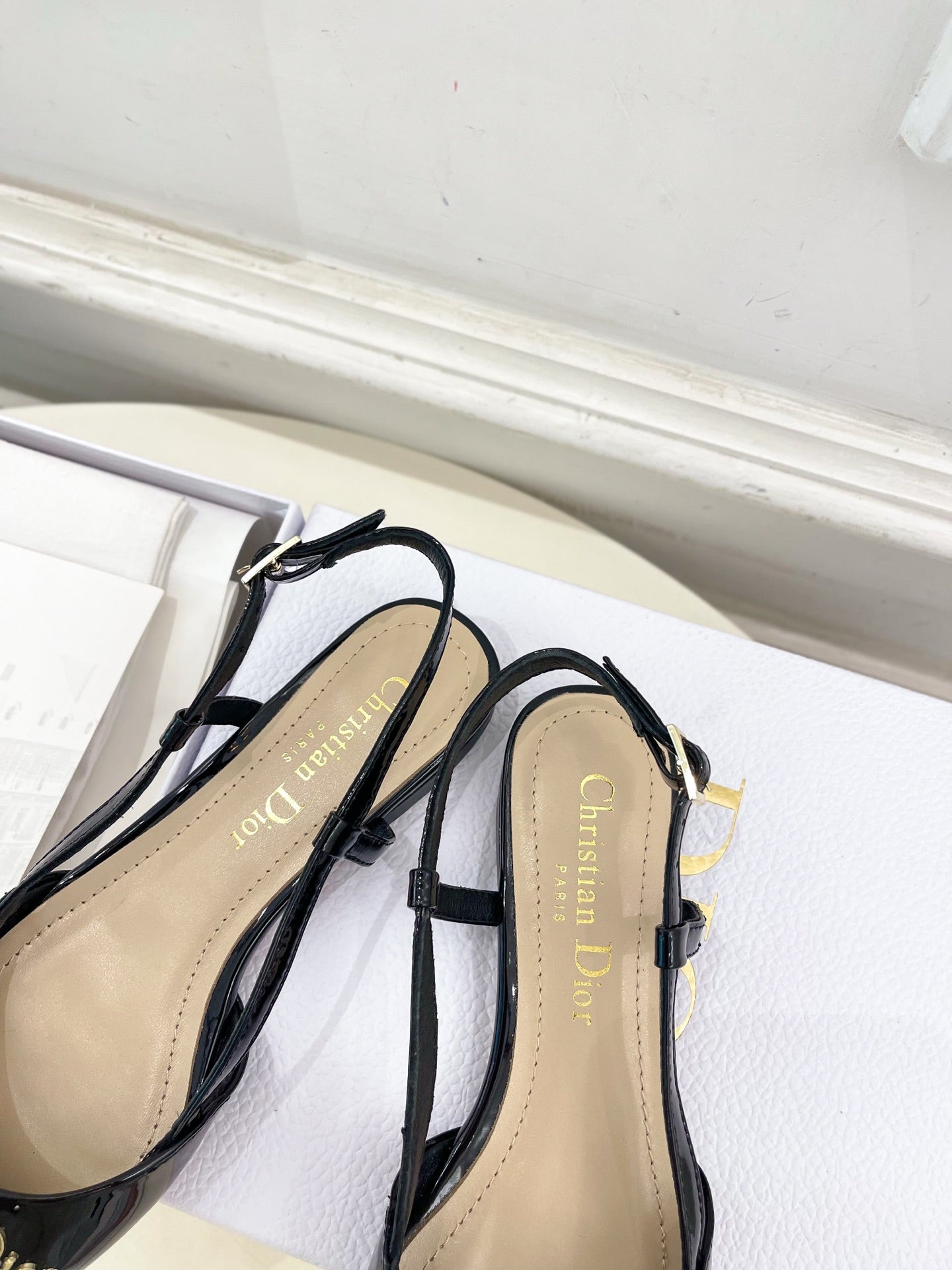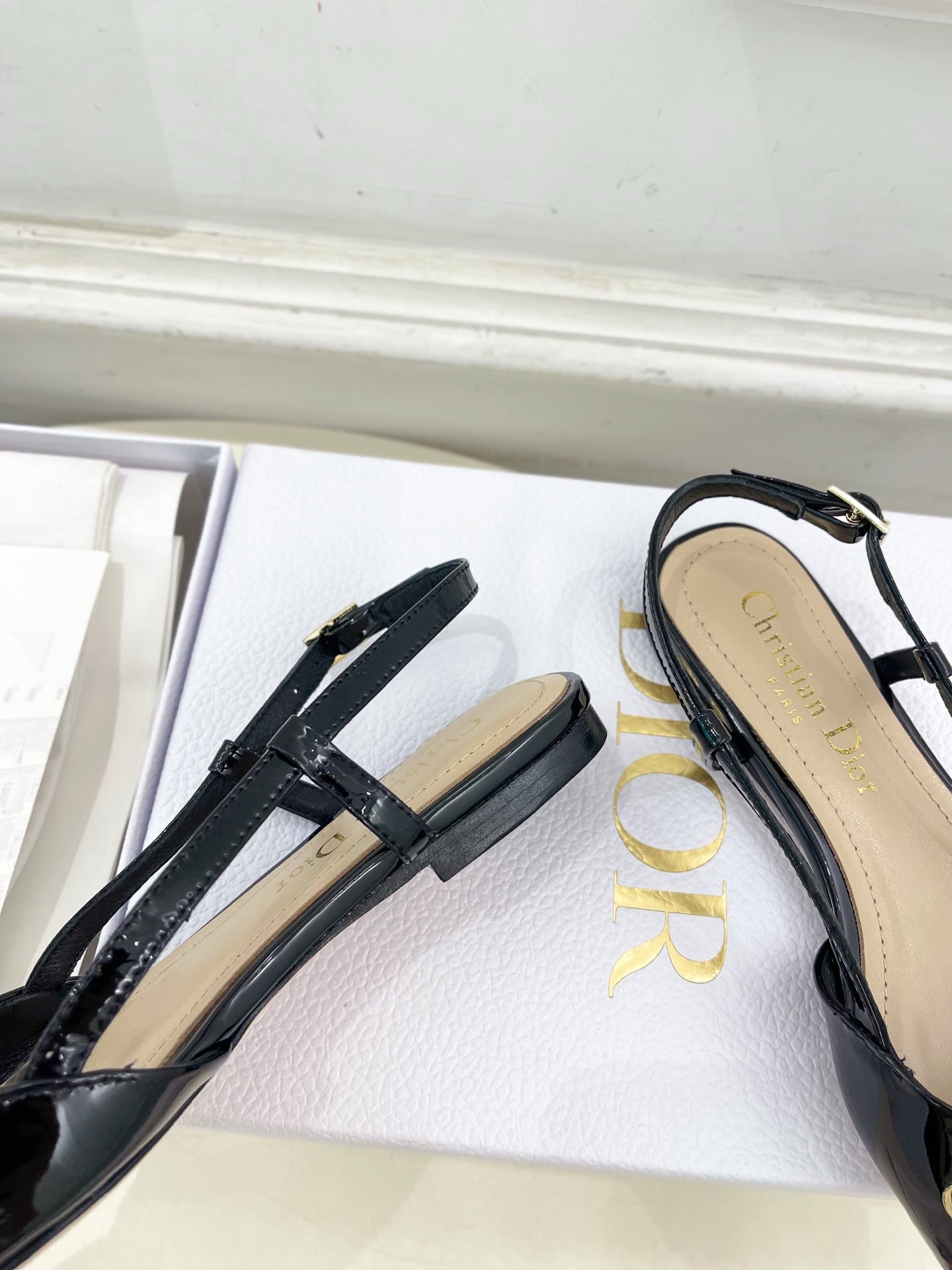 CD 25 Slingback Flat Black Patent Leather 307438