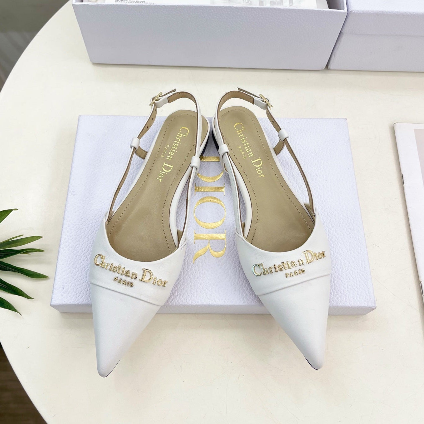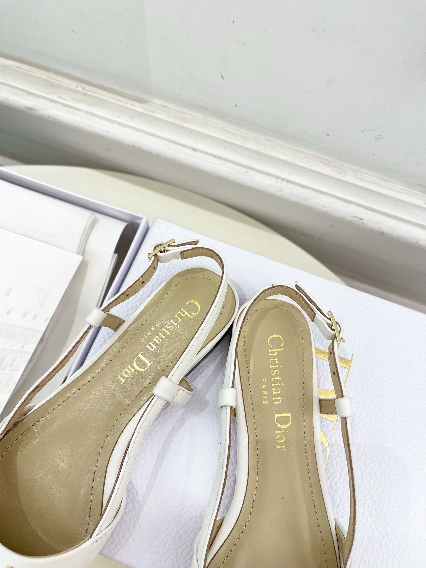 CD 25 Slingback Flat White Calfskin 307442