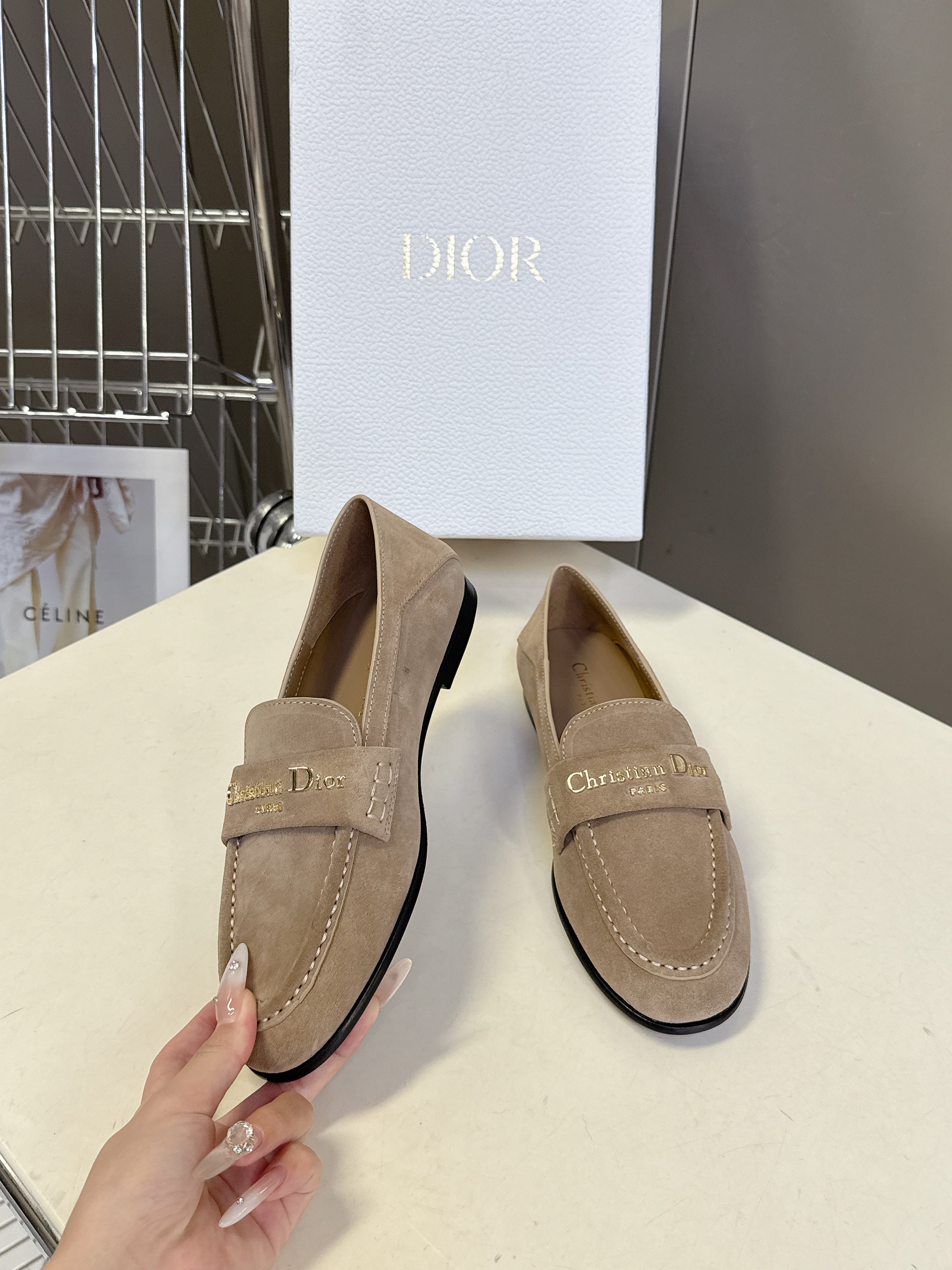 CD Boy Loafer Rope 5mm Beige Suede Calfskin 492542