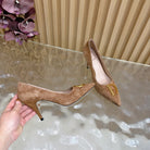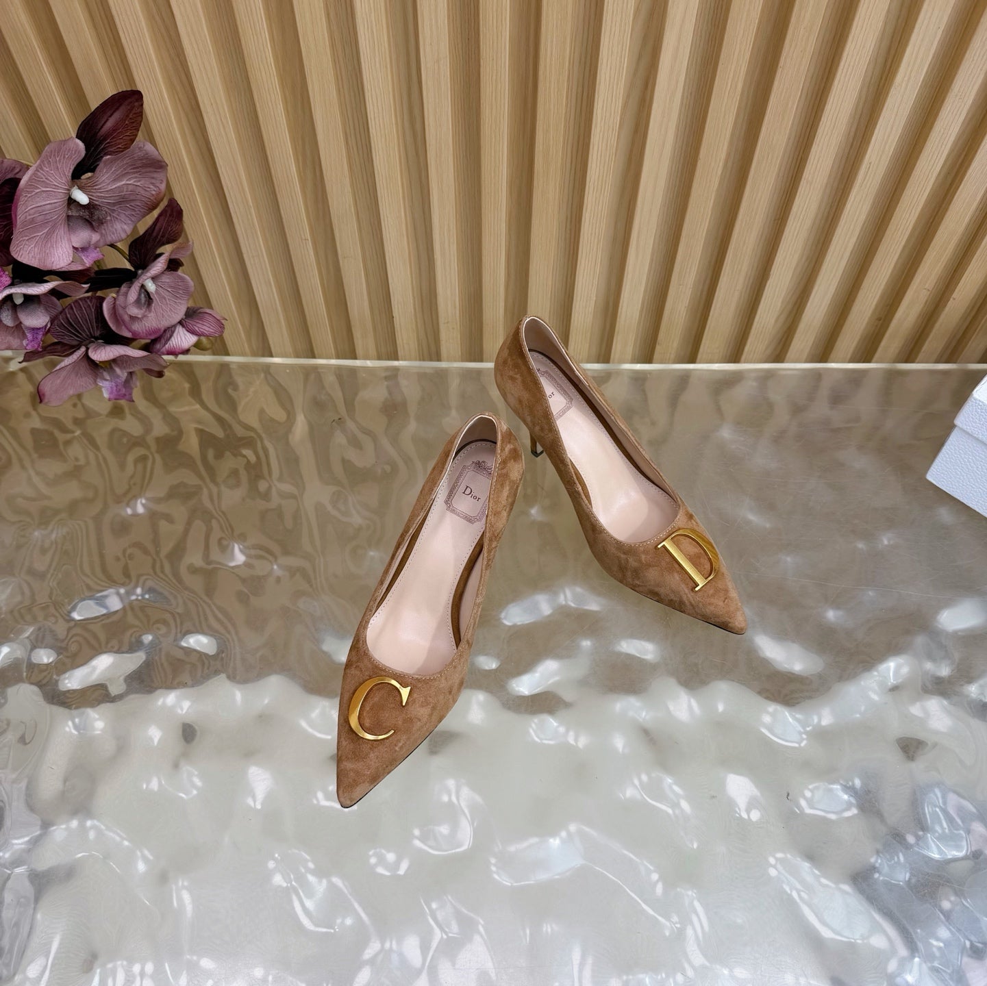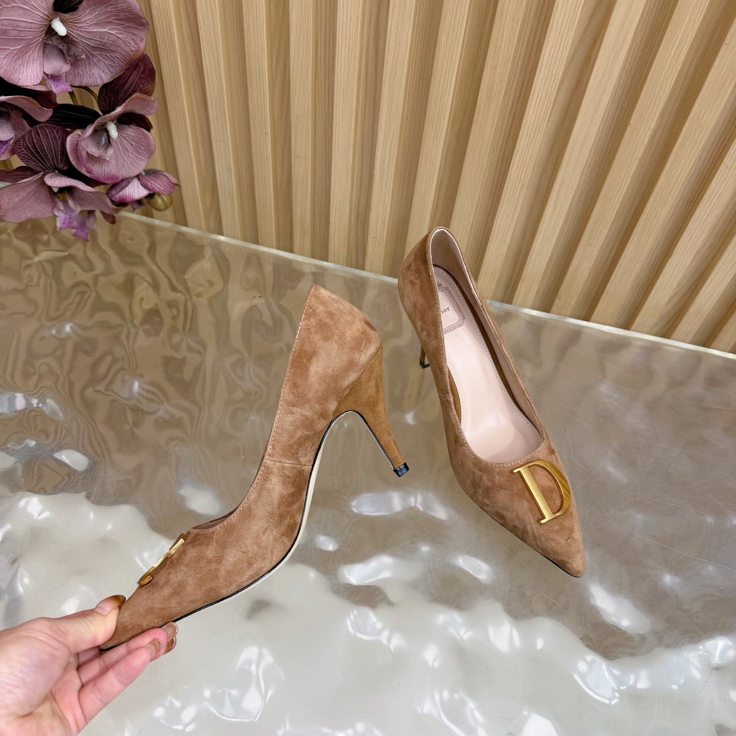 CD Buckle High-Heeled Elegant Shoes 85mm Brown Suede 537717