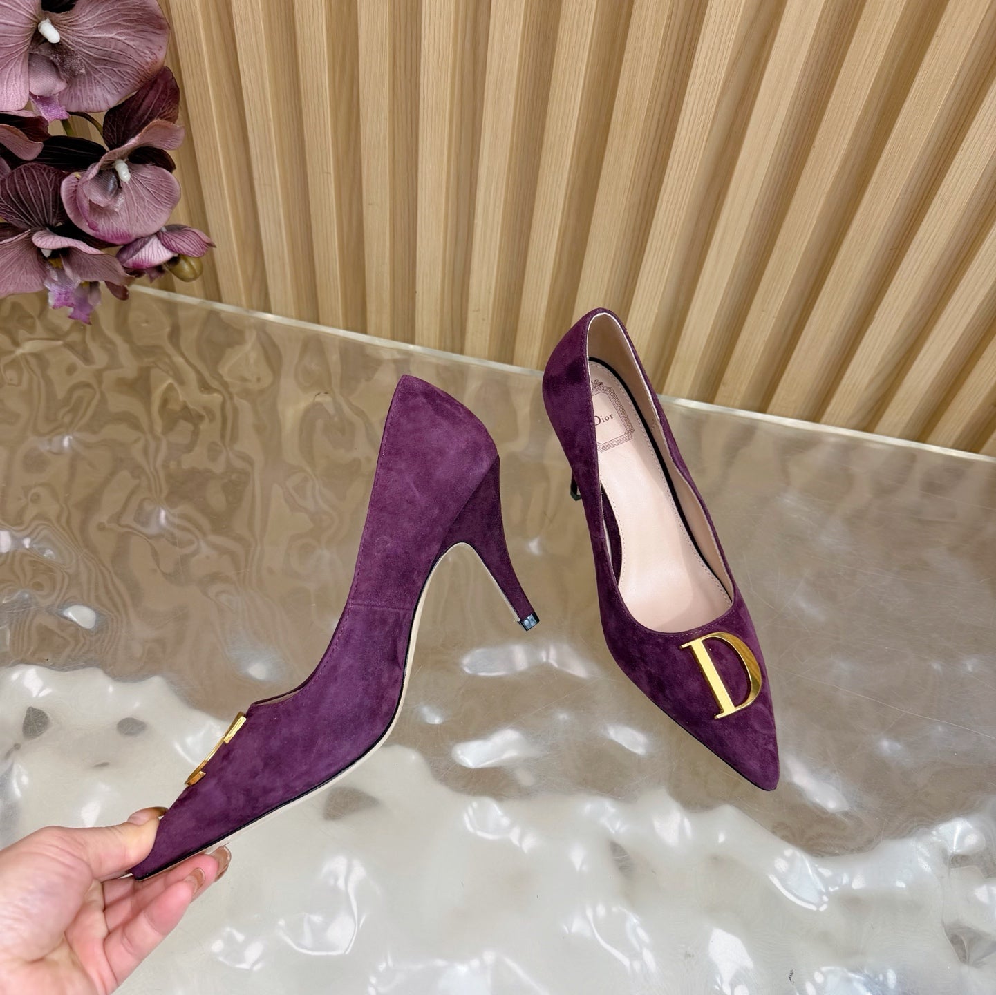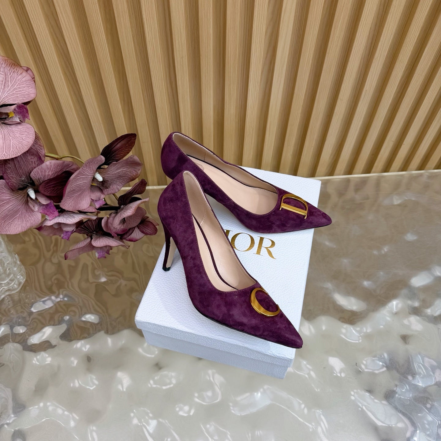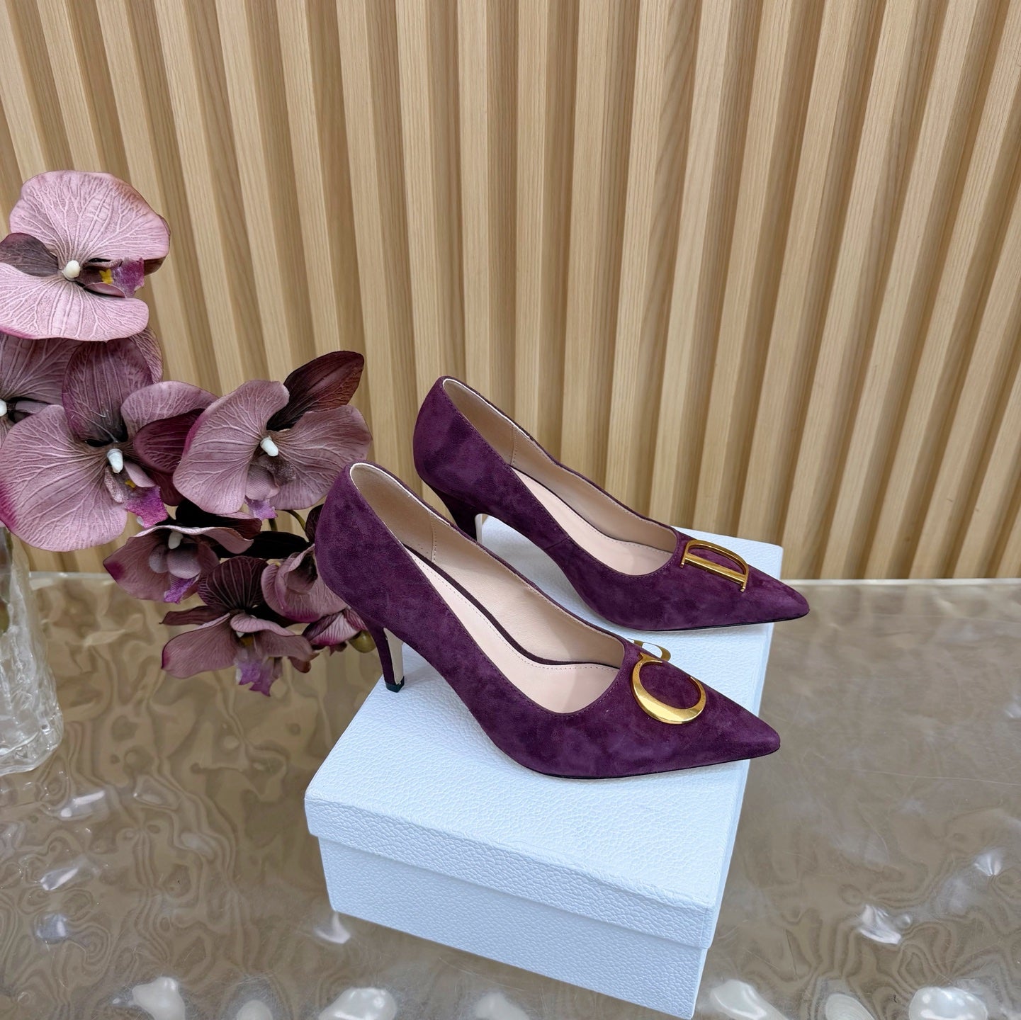 CD Buckle High-Heeled Elegant Shoes 85mm Burgundy Suede 537716