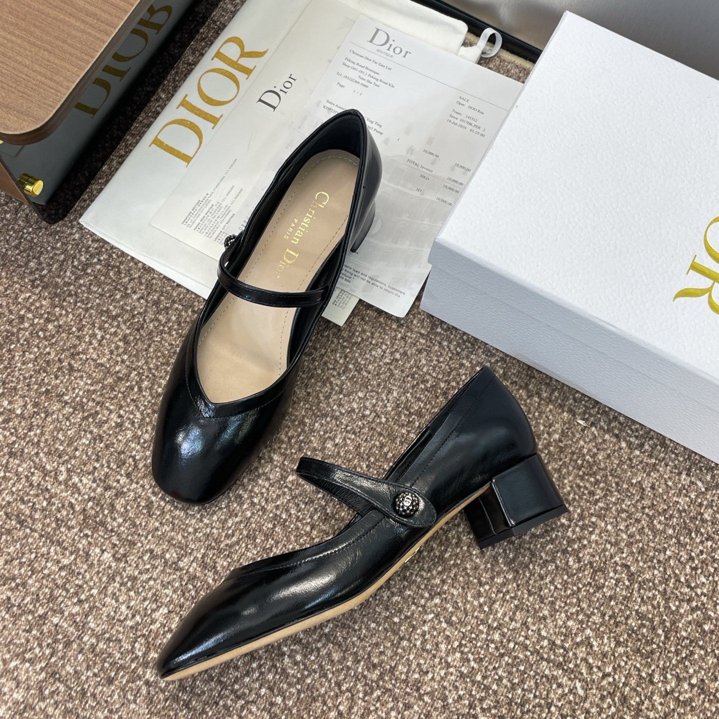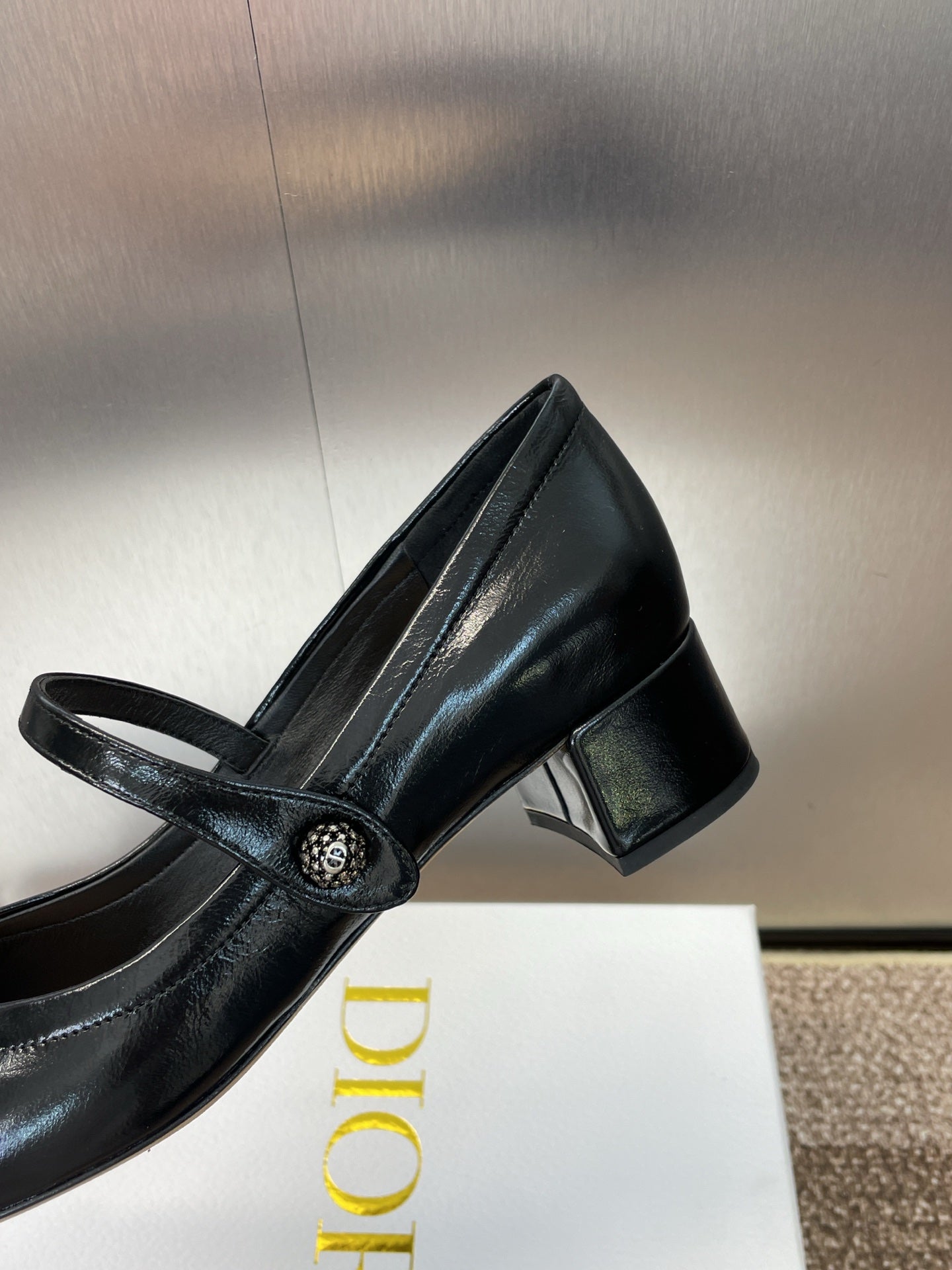 CD Chunky Heel Round Toe Ballet Black Patent Leather 524205