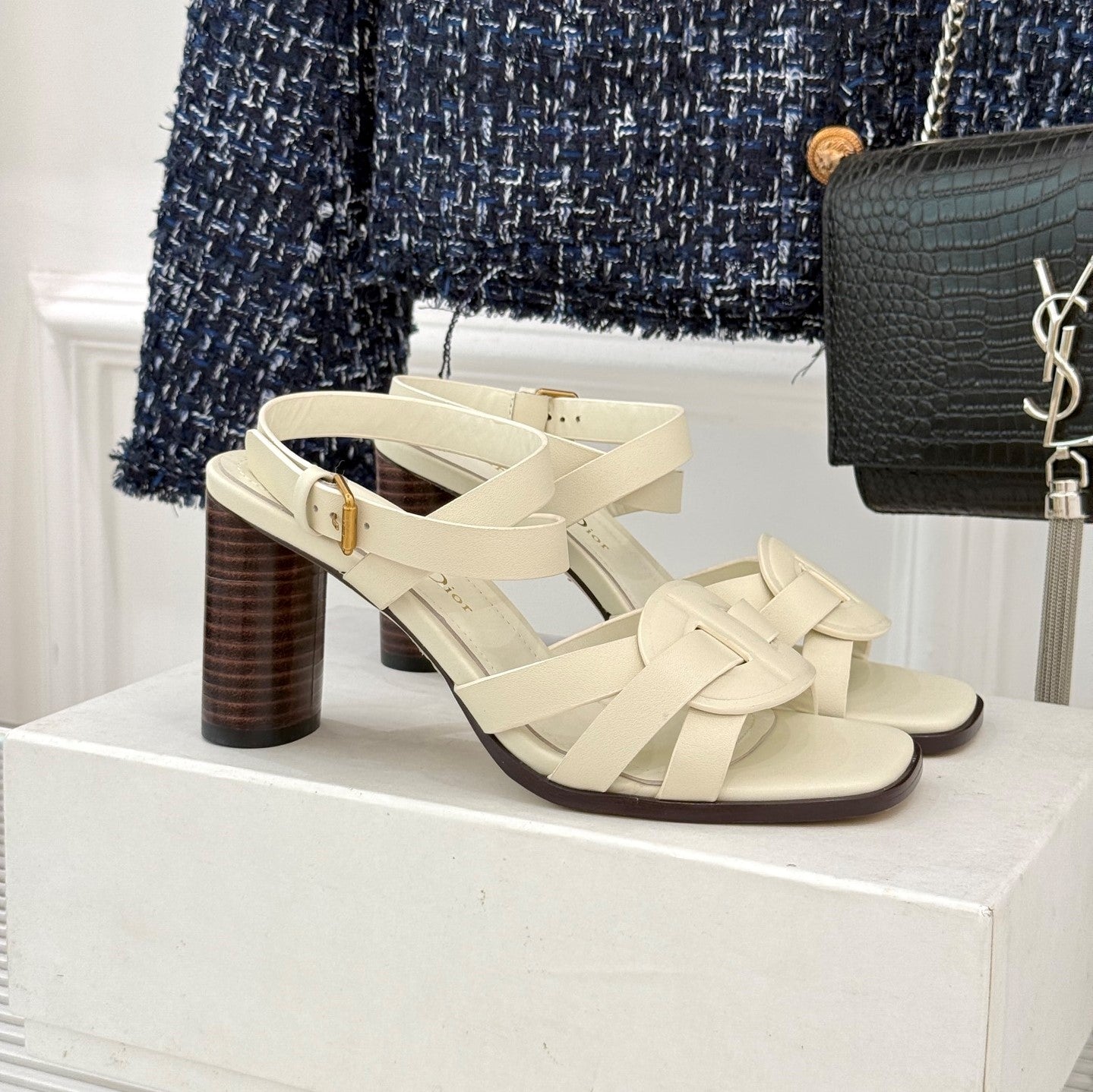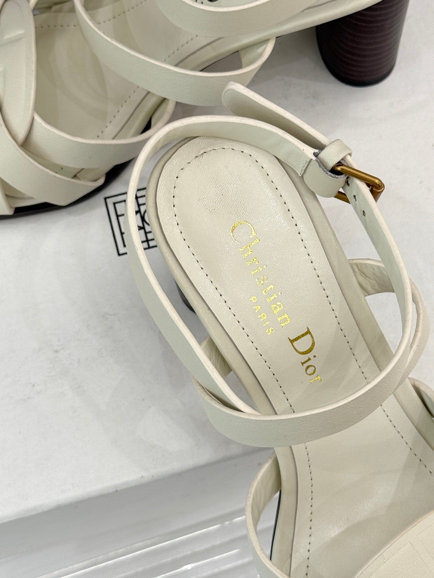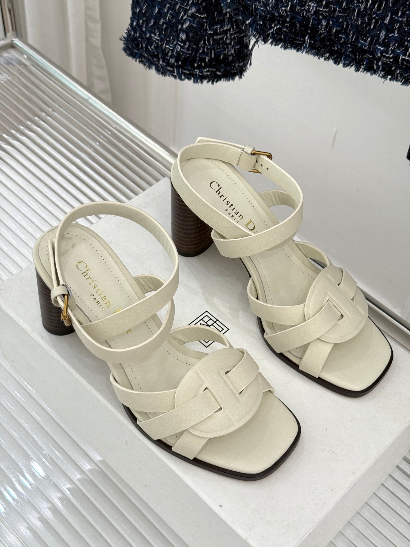 CD D-Club Heeled Sandal 80mm Cream Calfskin 473830