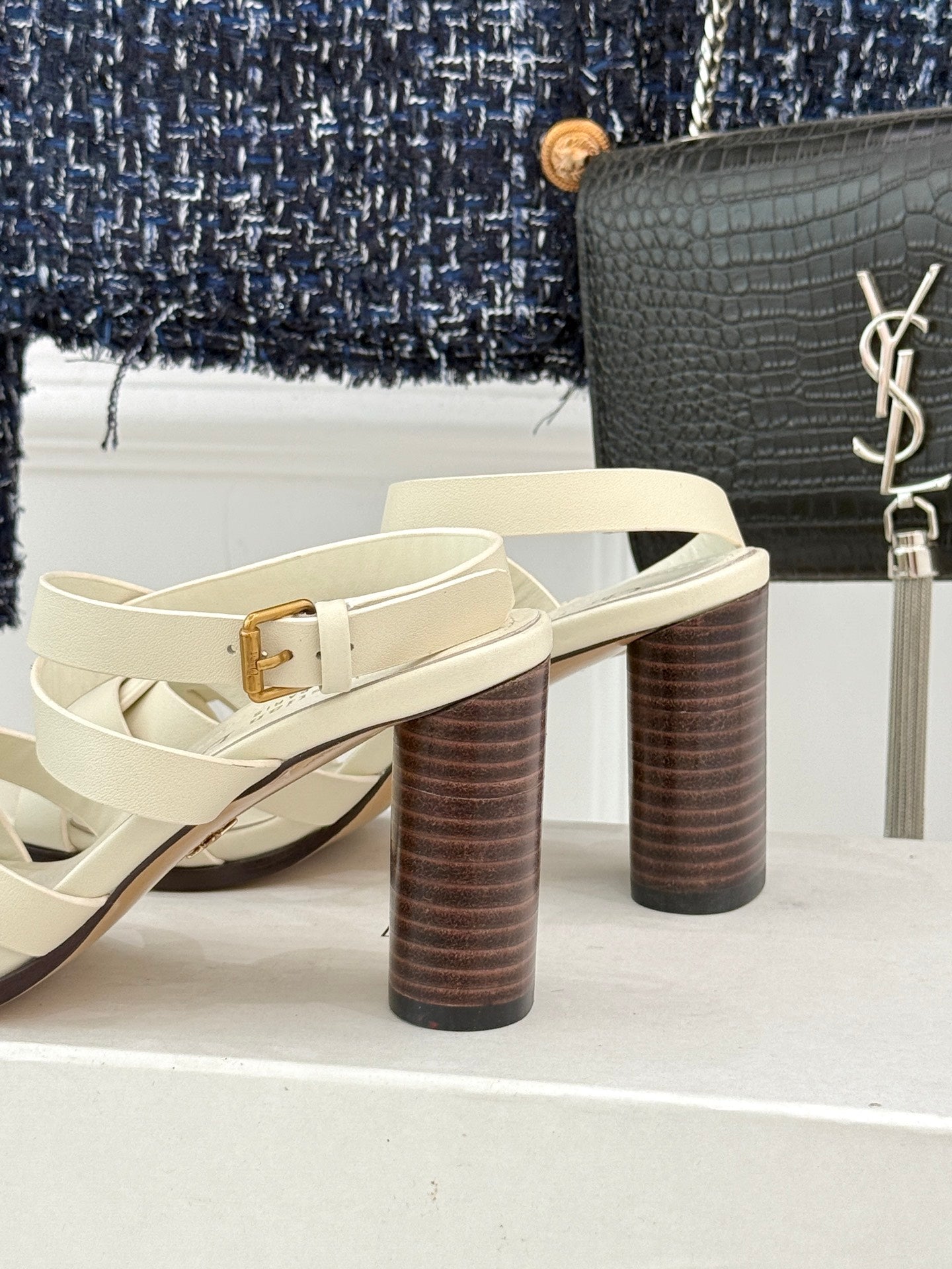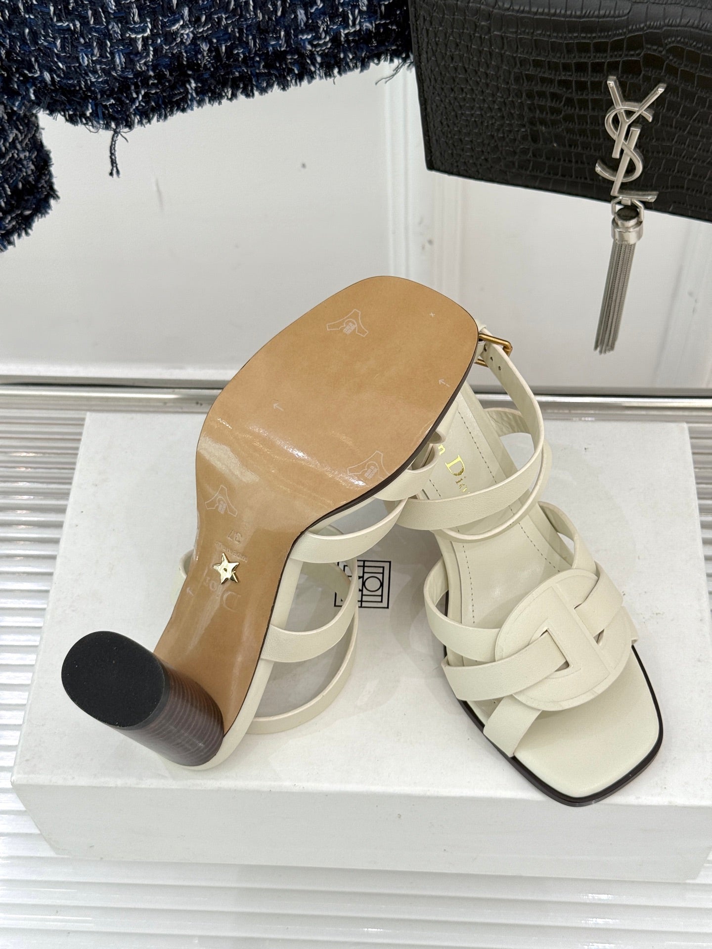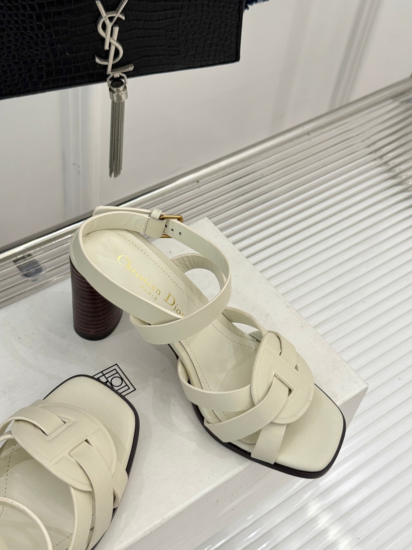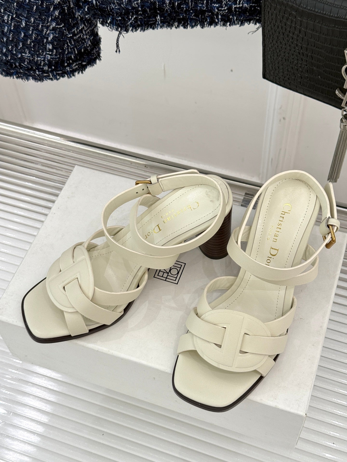 CD D-Club Heeled Sandal 80mm Cream Calfskin 473830