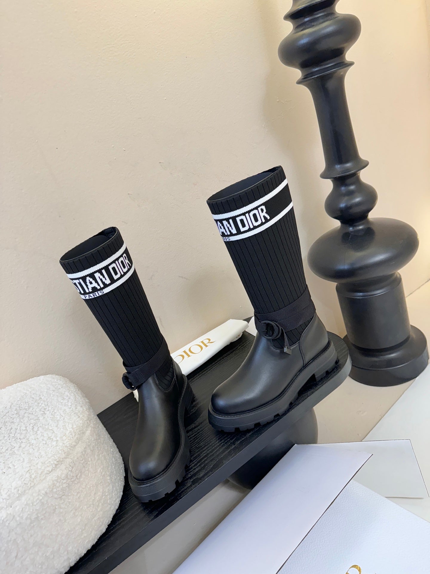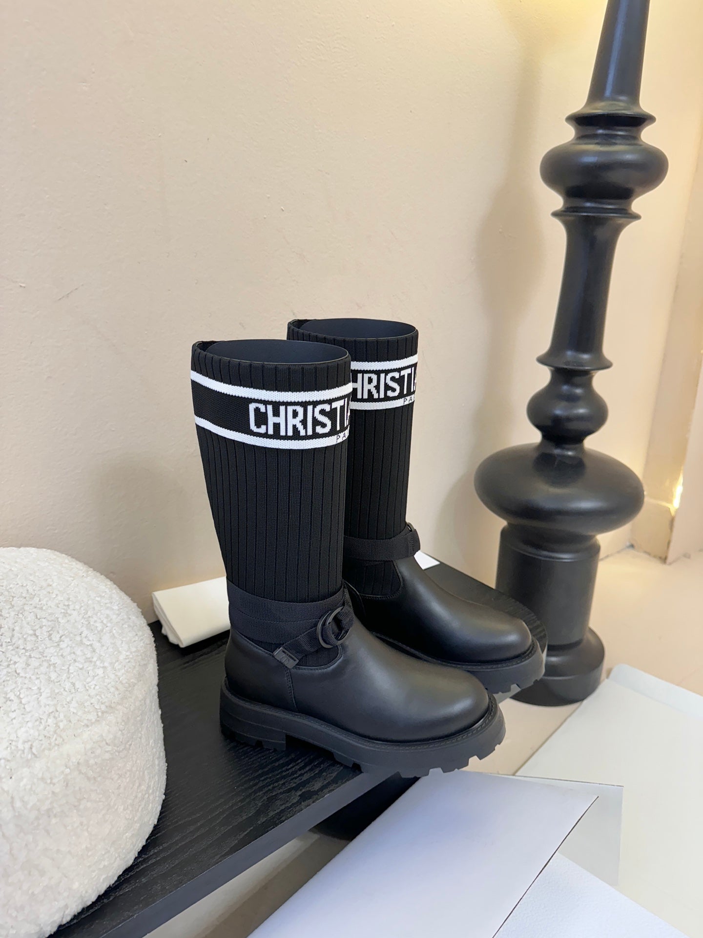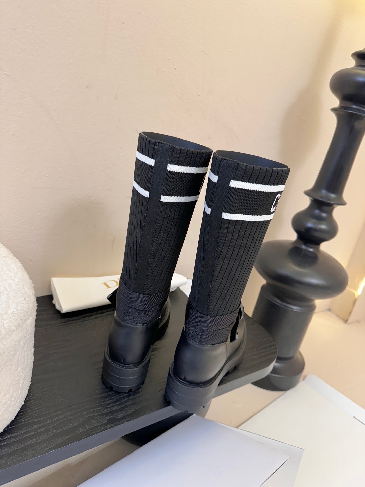 CD D-Major Boot Black White Technical Knit Calfskin 530618