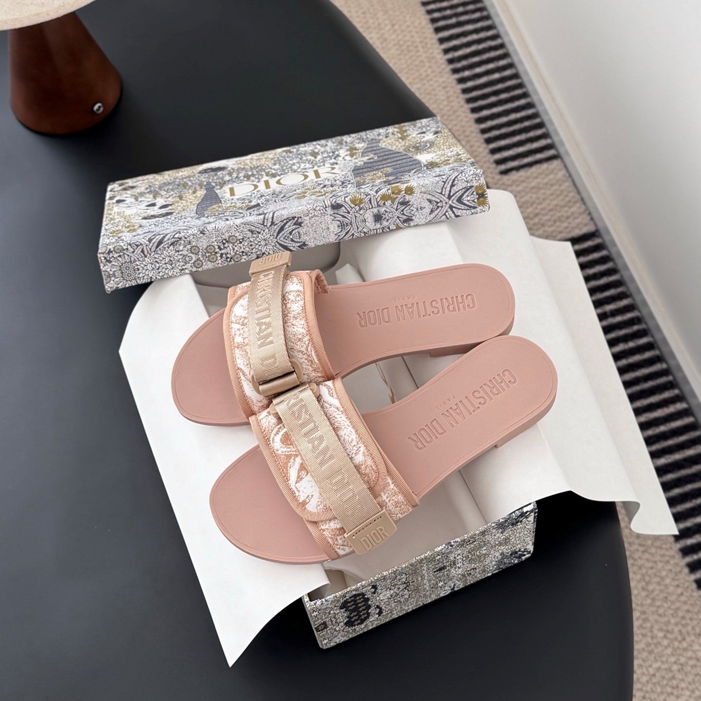 CD D-Wander Slide Pink Dior Oblique Printed Technical Fabric 540692