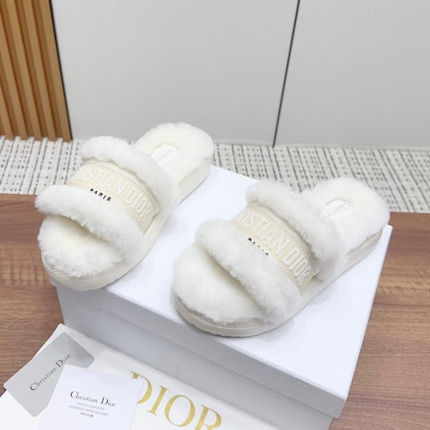CD Dway Slide White Light Beige Fleece Lining And Canvas Fabric