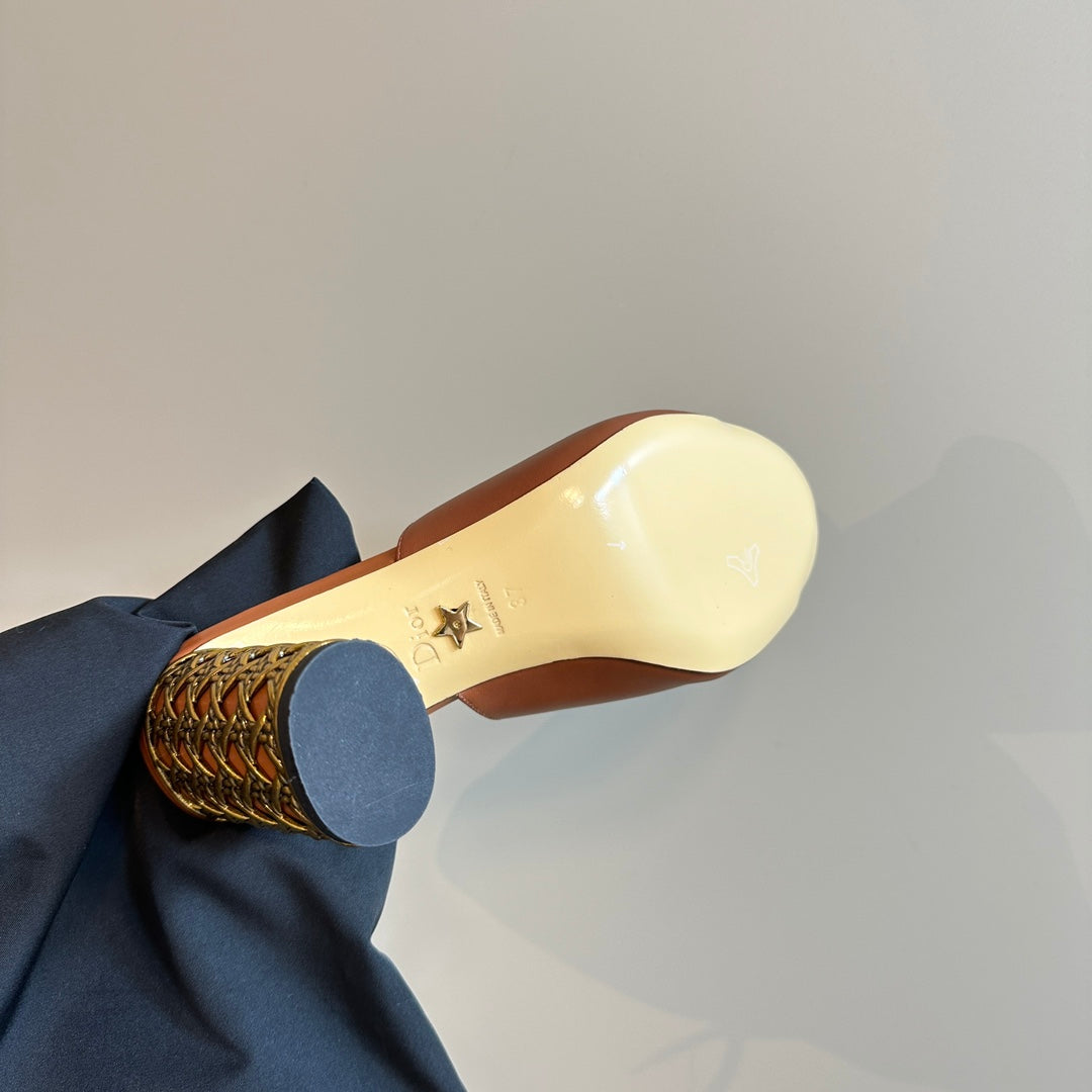 CD Icon Heeled Slide 95mm Brown Calfskin