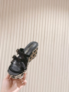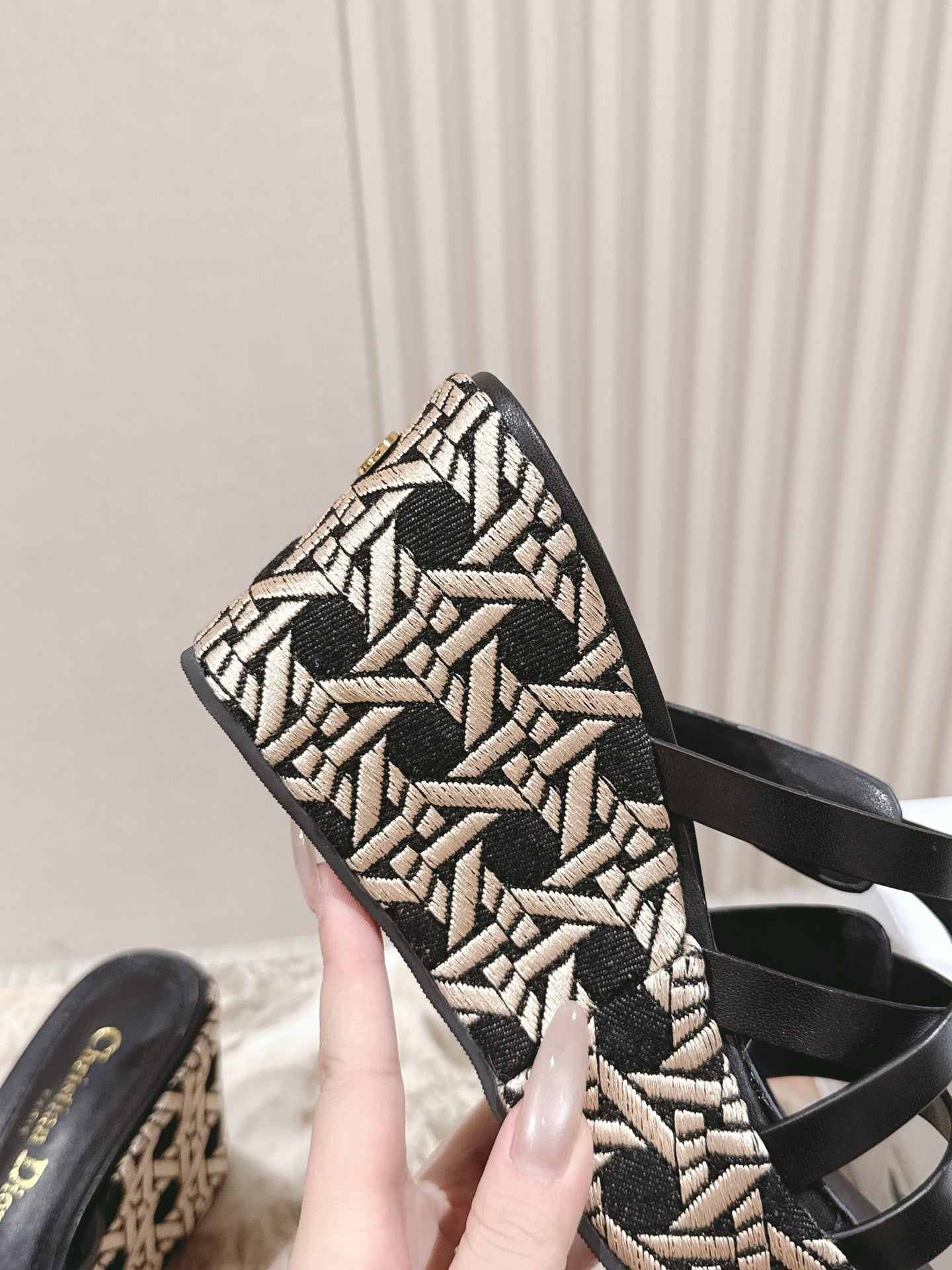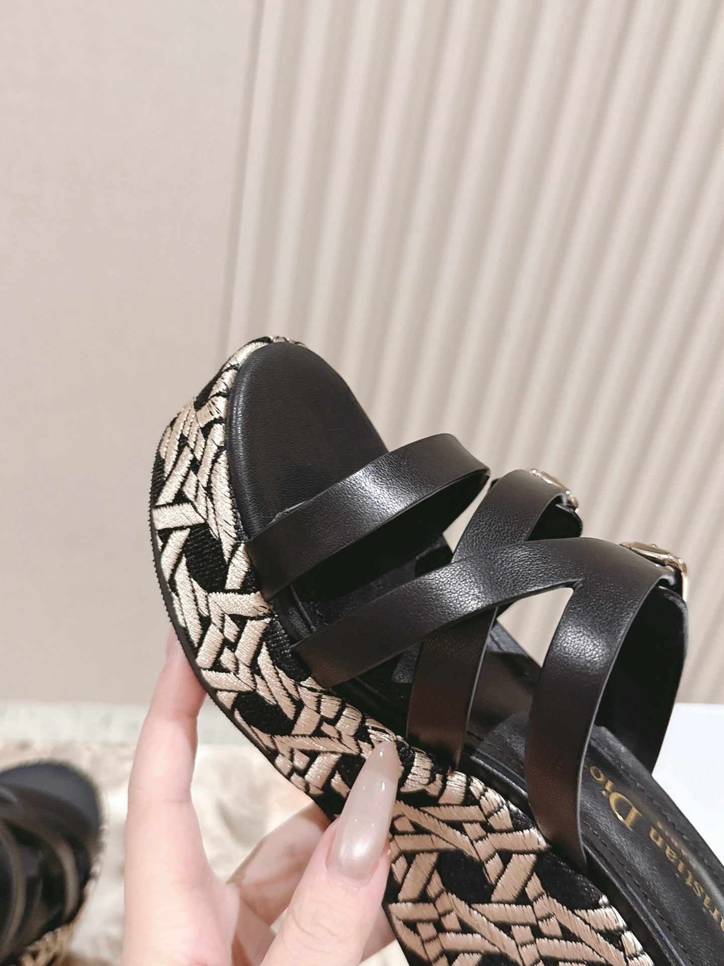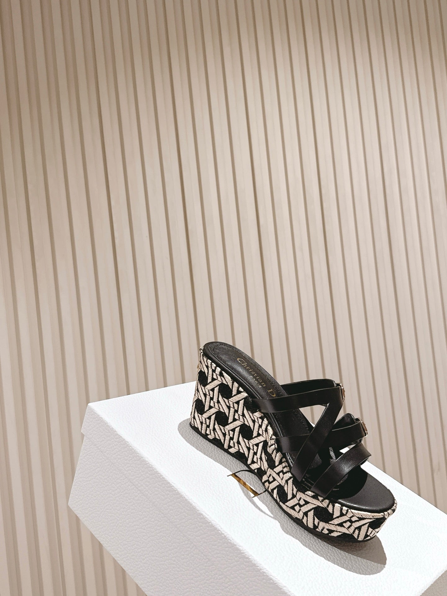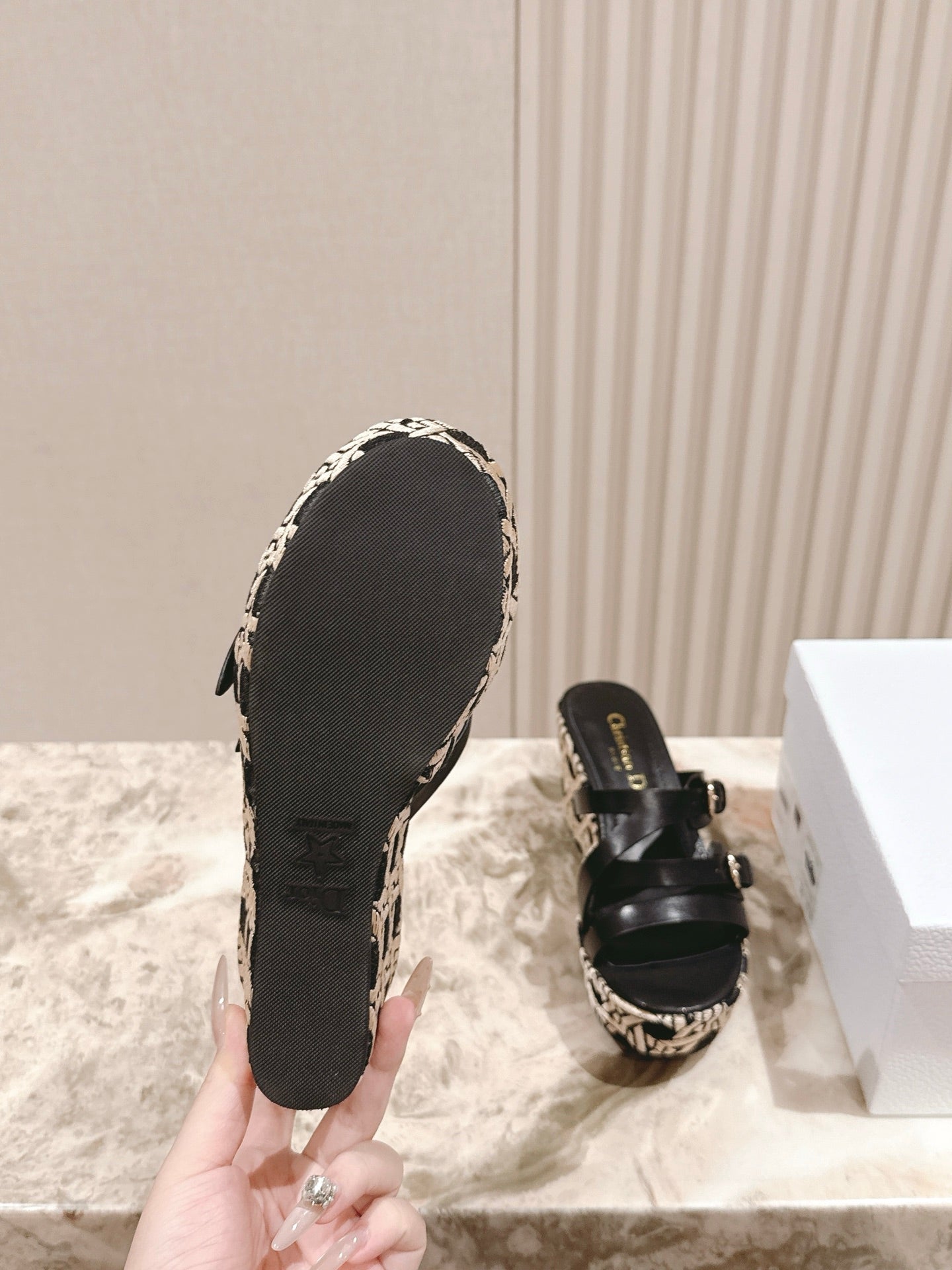 CD L'Amazone Wedge Slide 85mm Black Calfskin and Raffia 483084