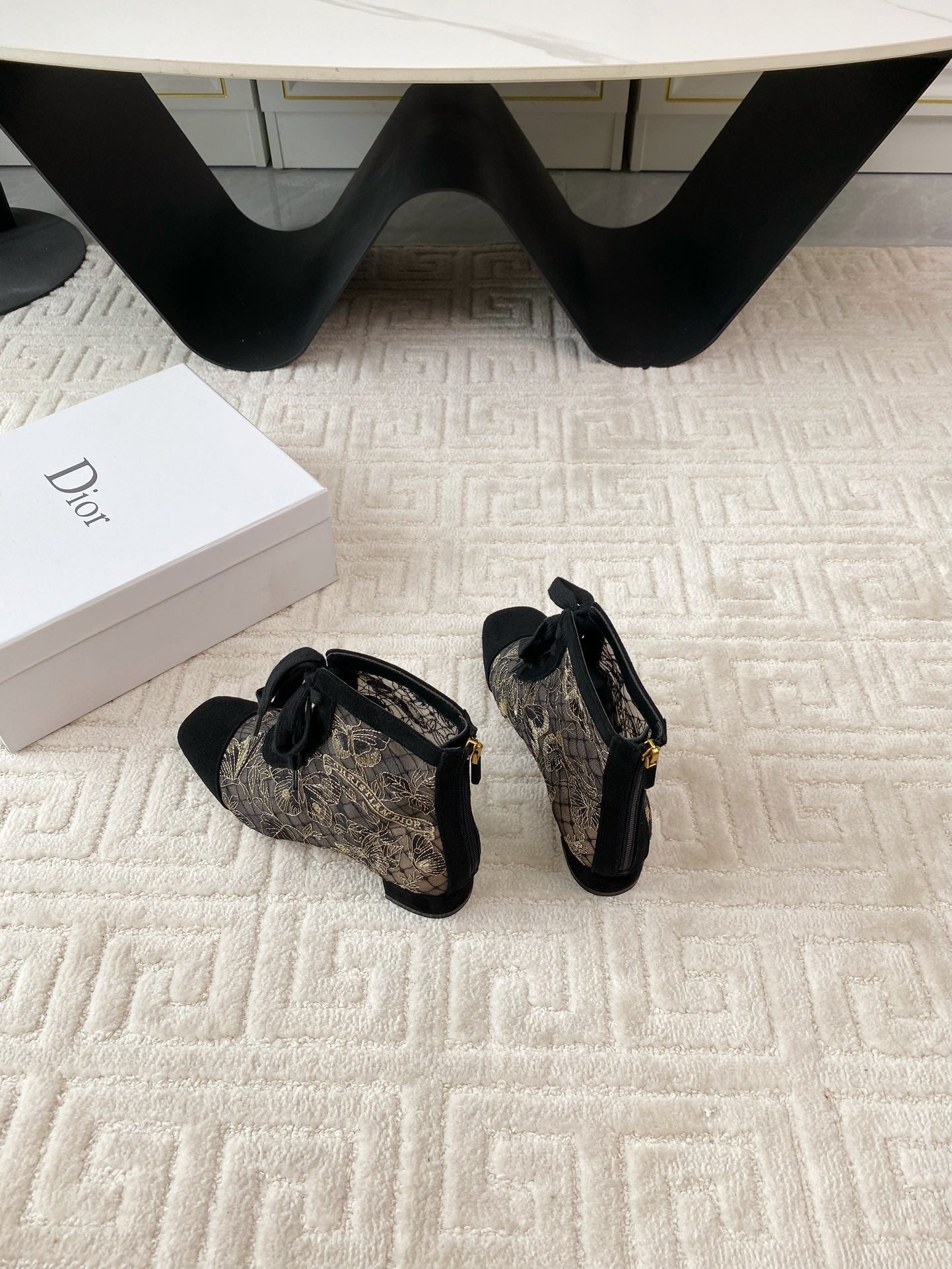 CD Naughtily-D Heeled Ankle Boot Black Transparent Mesh Butterfly And Suede