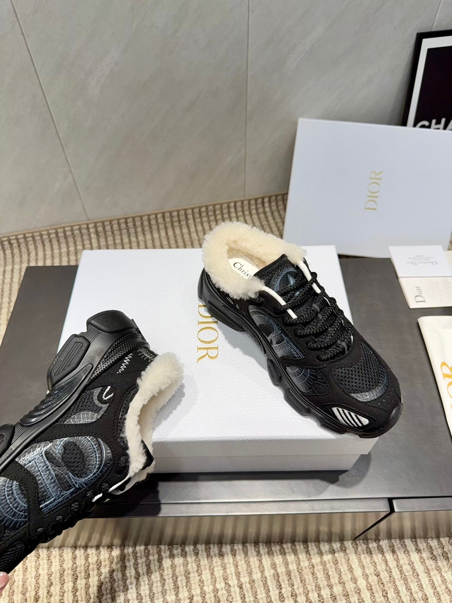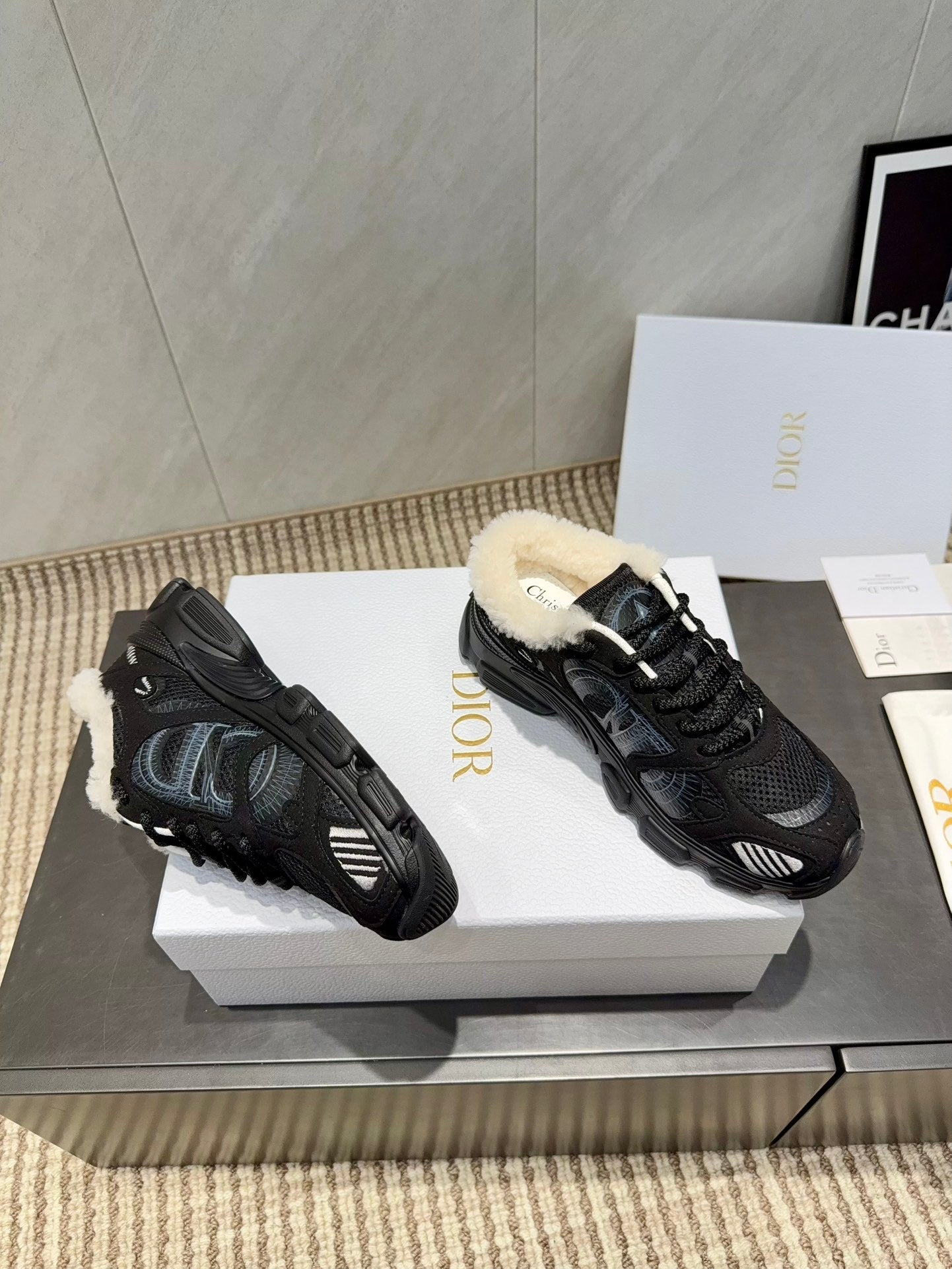CD platform casual sneaker black wool suede mesh 539678