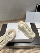 CD platform casual sneaker cream wool suede mesh 539683