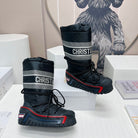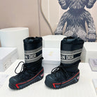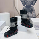 CD Platform Snow Boots Black Red Cowhide Nylon Fabric 539651