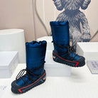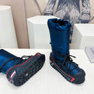 CD Platform Snow Boots Dark Blue Cowhide Nylon Fabric 539653