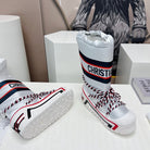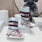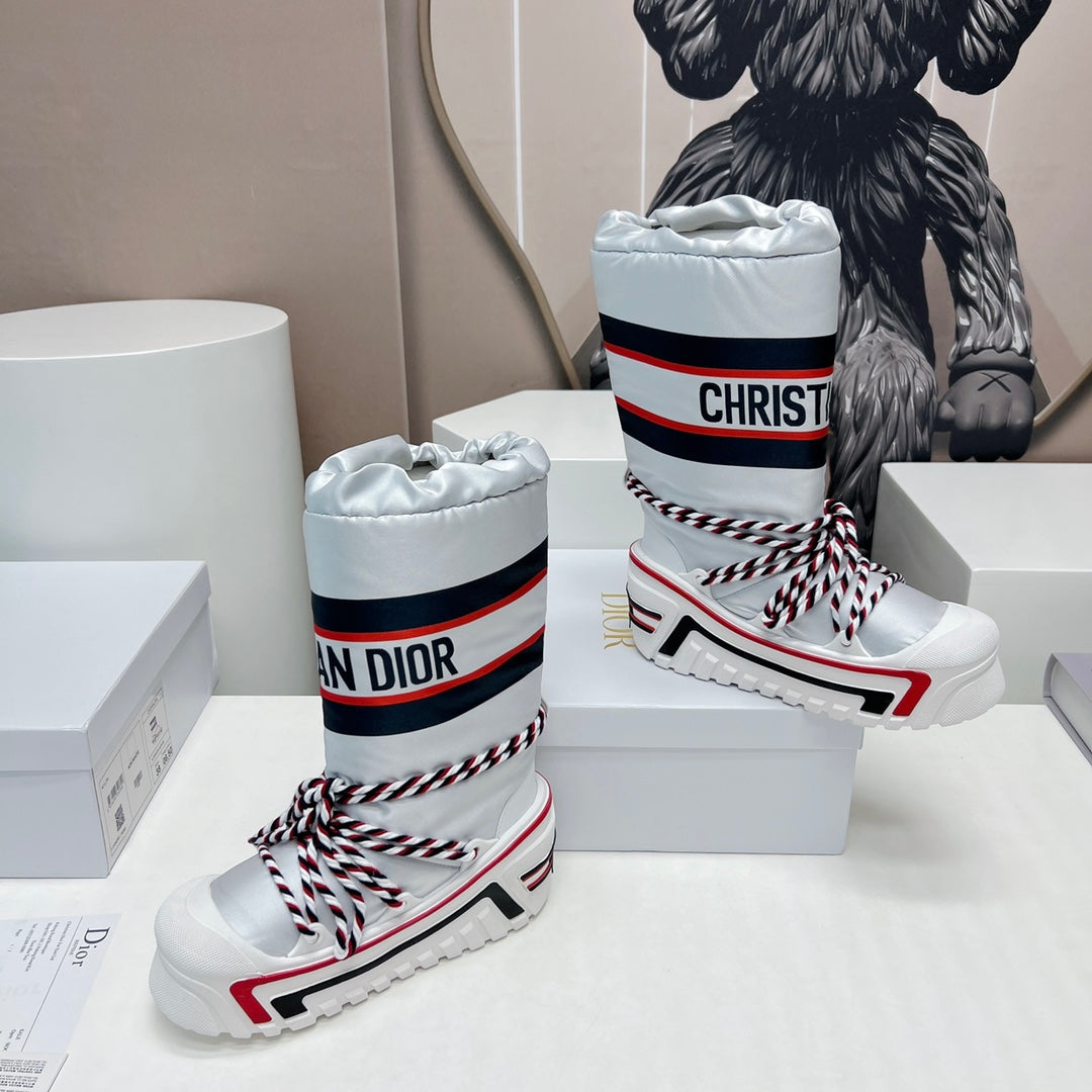 CD Platform Snow Boots White Navy Blue Cowhide Nylon Fabric 539652