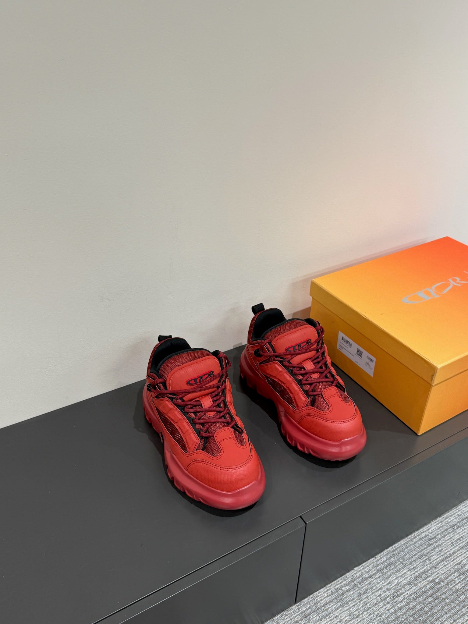 CD Sneaker In Red Mix Burgundy Calfskin And Mesh Fabric 109252