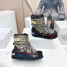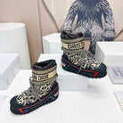 CD Snow Ankle Boots Black Beige Cowhide Nylon Fabric 539662