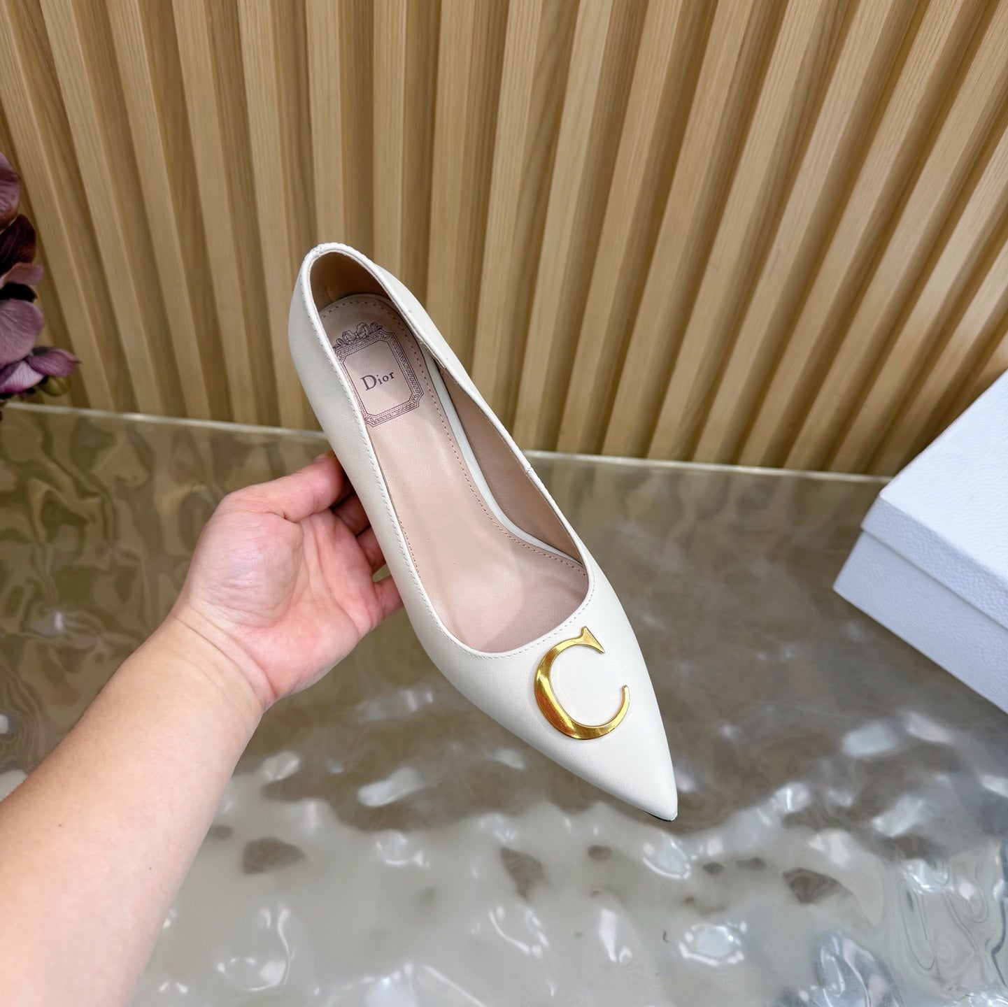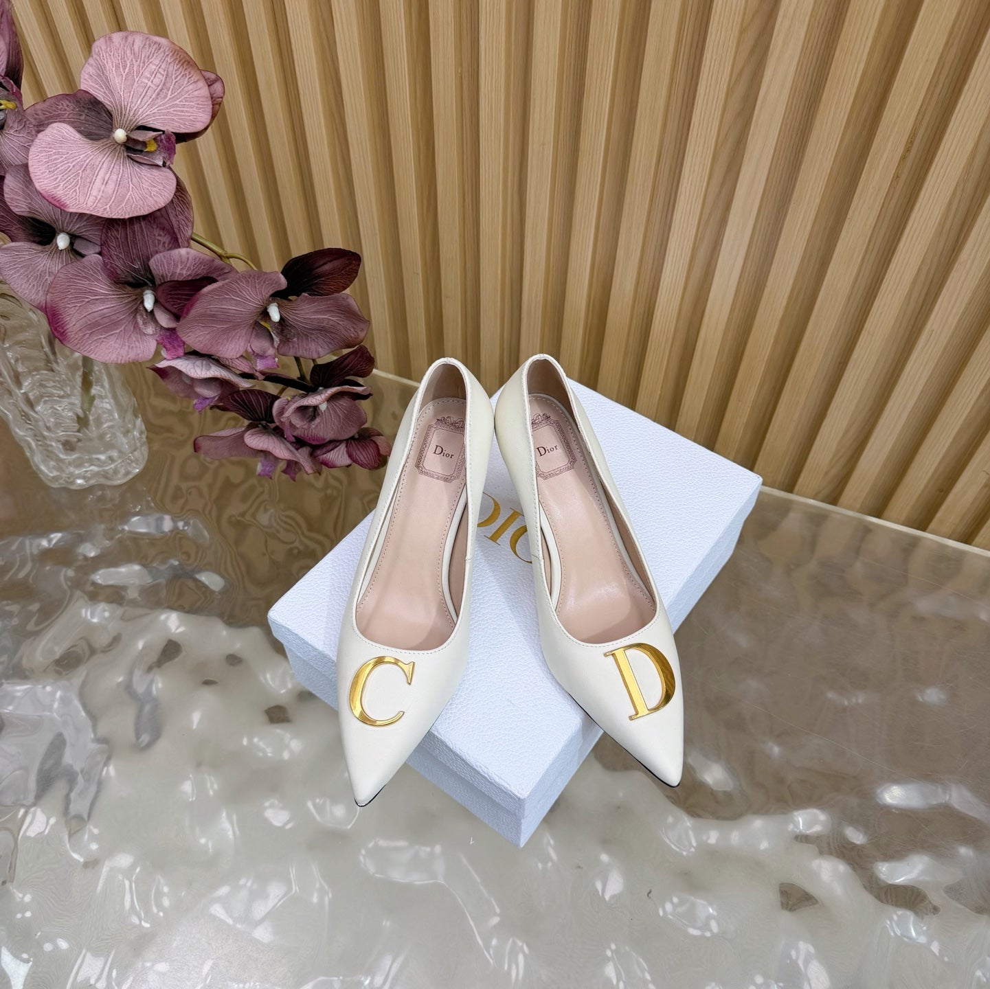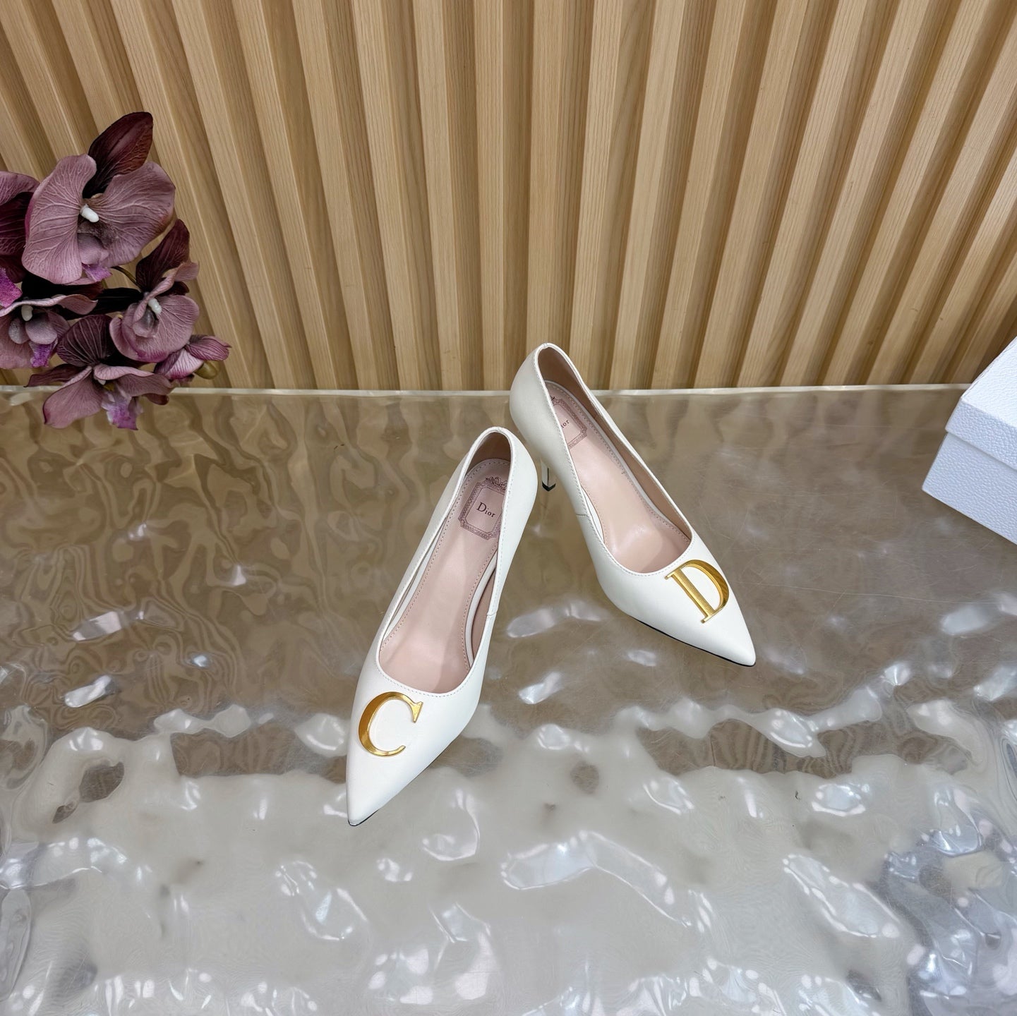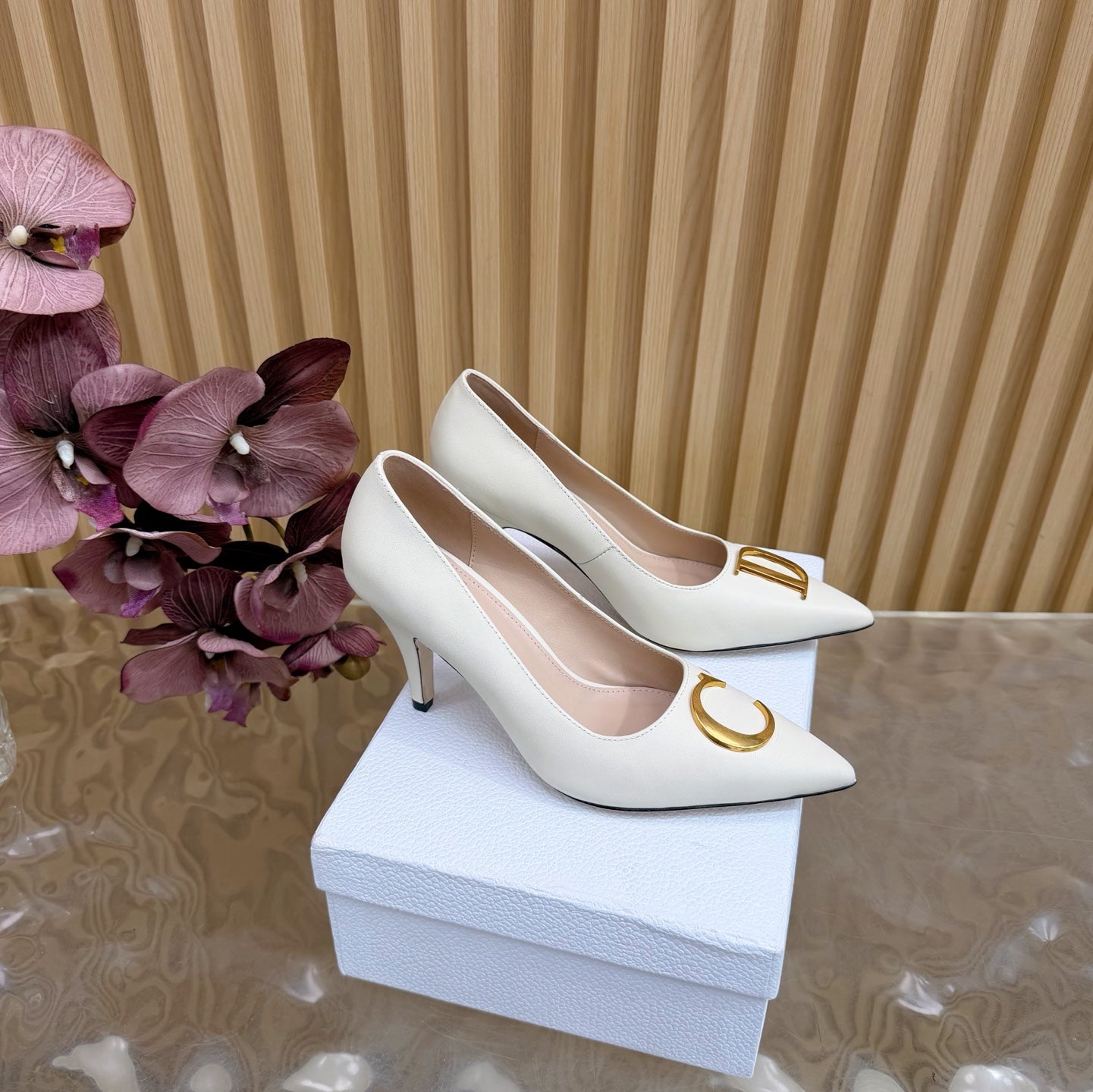 CD Buckle High-Heeled Elegant Shoes 85mm White Cowhide 537722