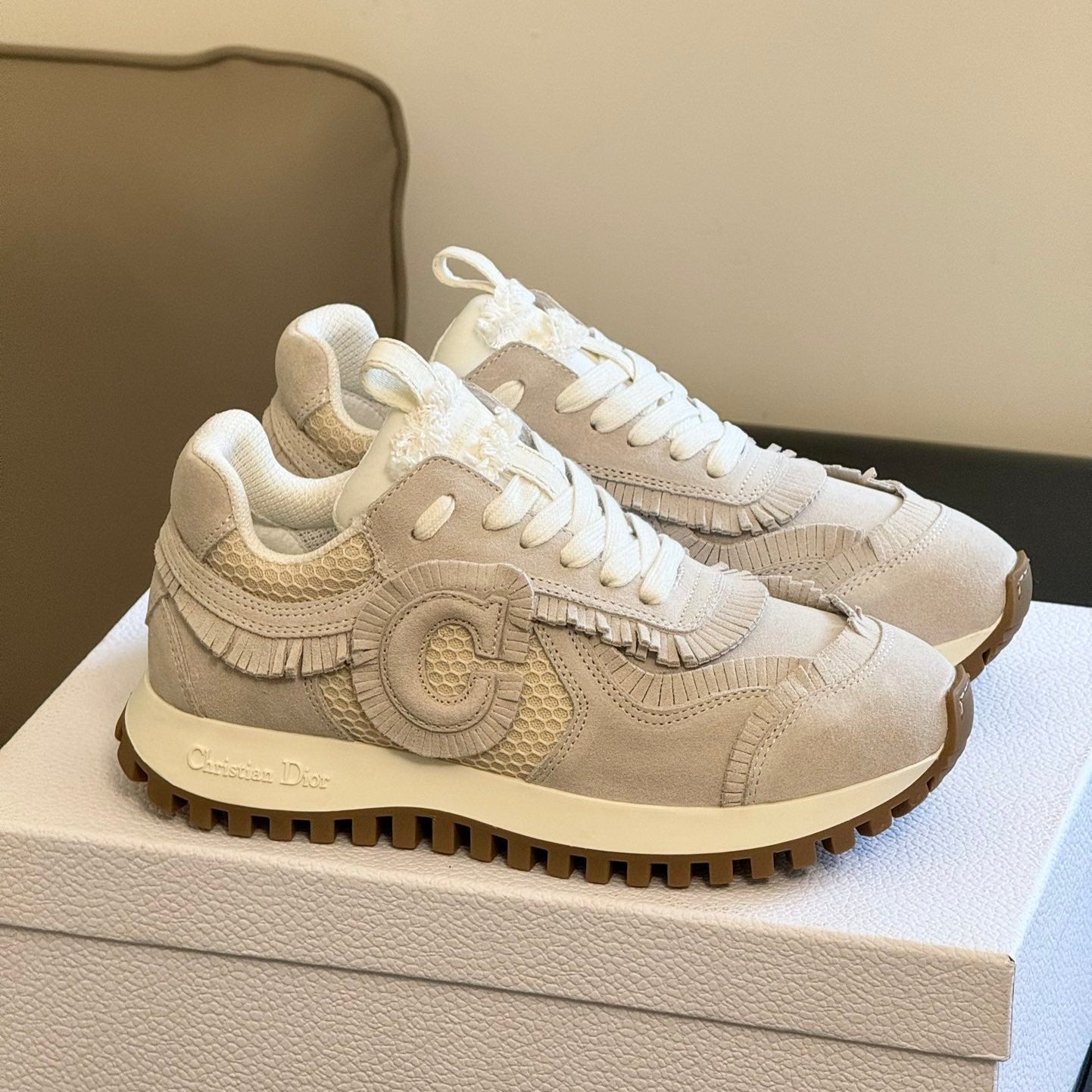Cest CD Sneaker Ecru Suede Calfskin and Mesh