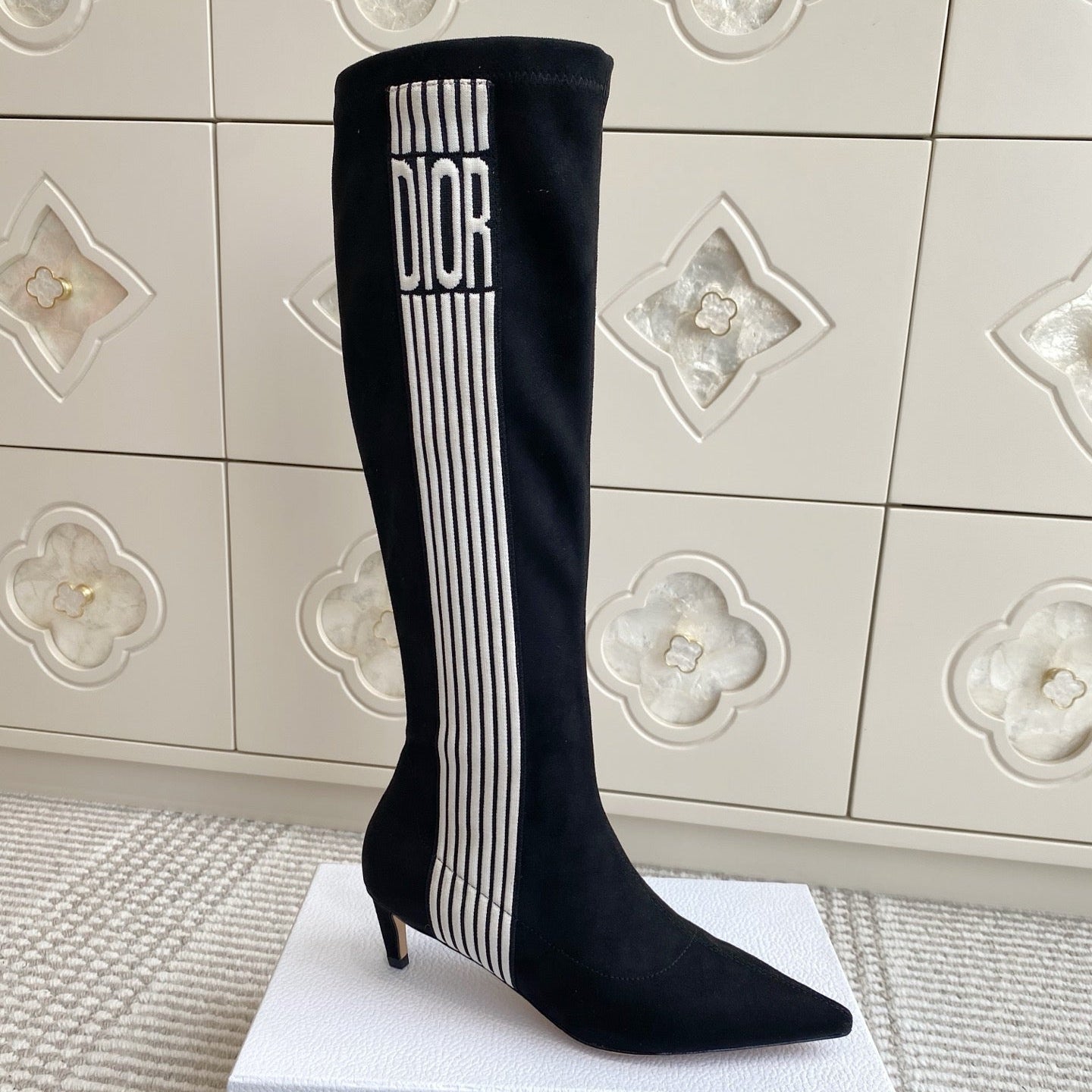 Dior 2025 Tribales Heeled Ankle High Boot 50mm Black White Suede 501201
