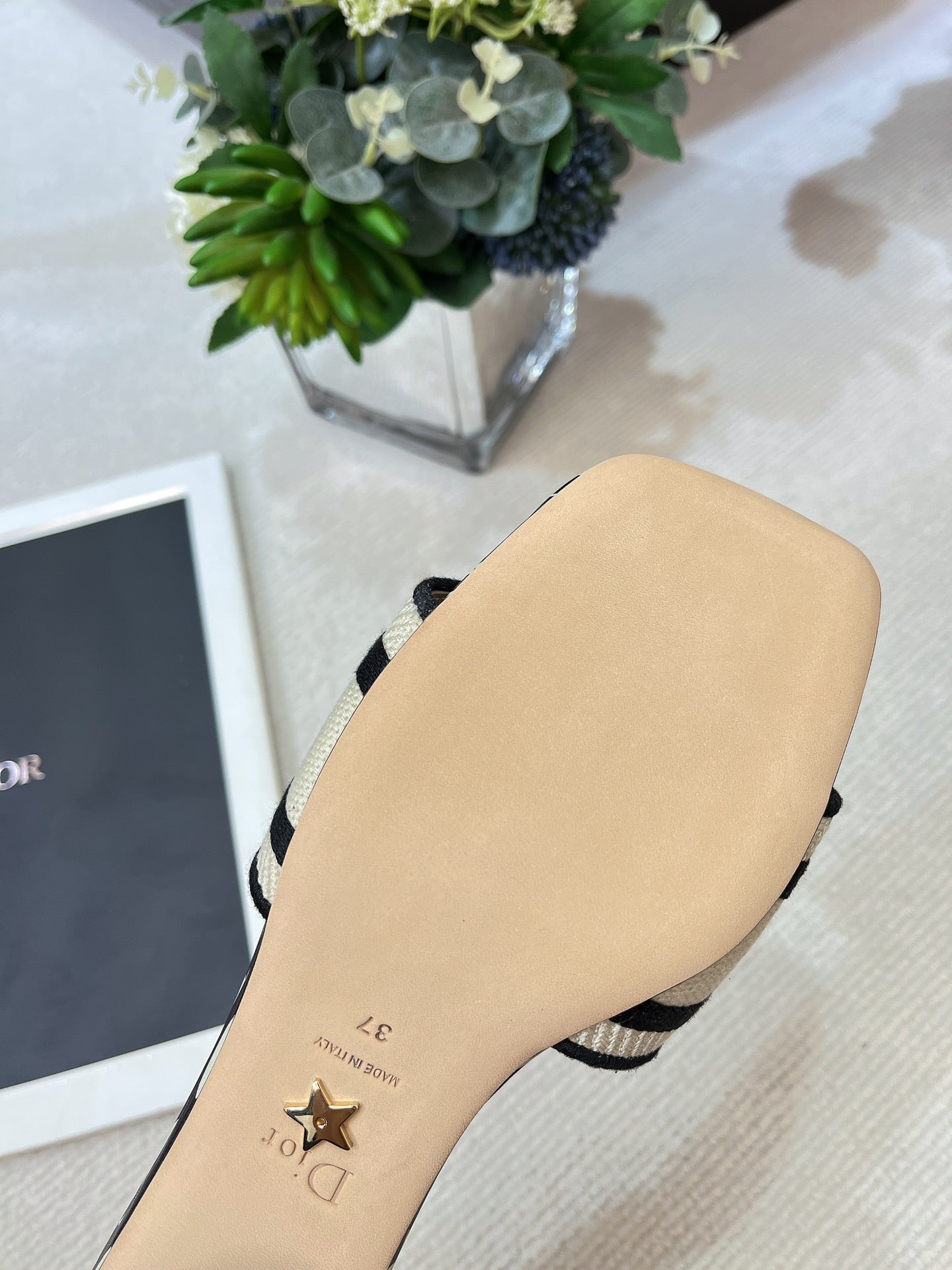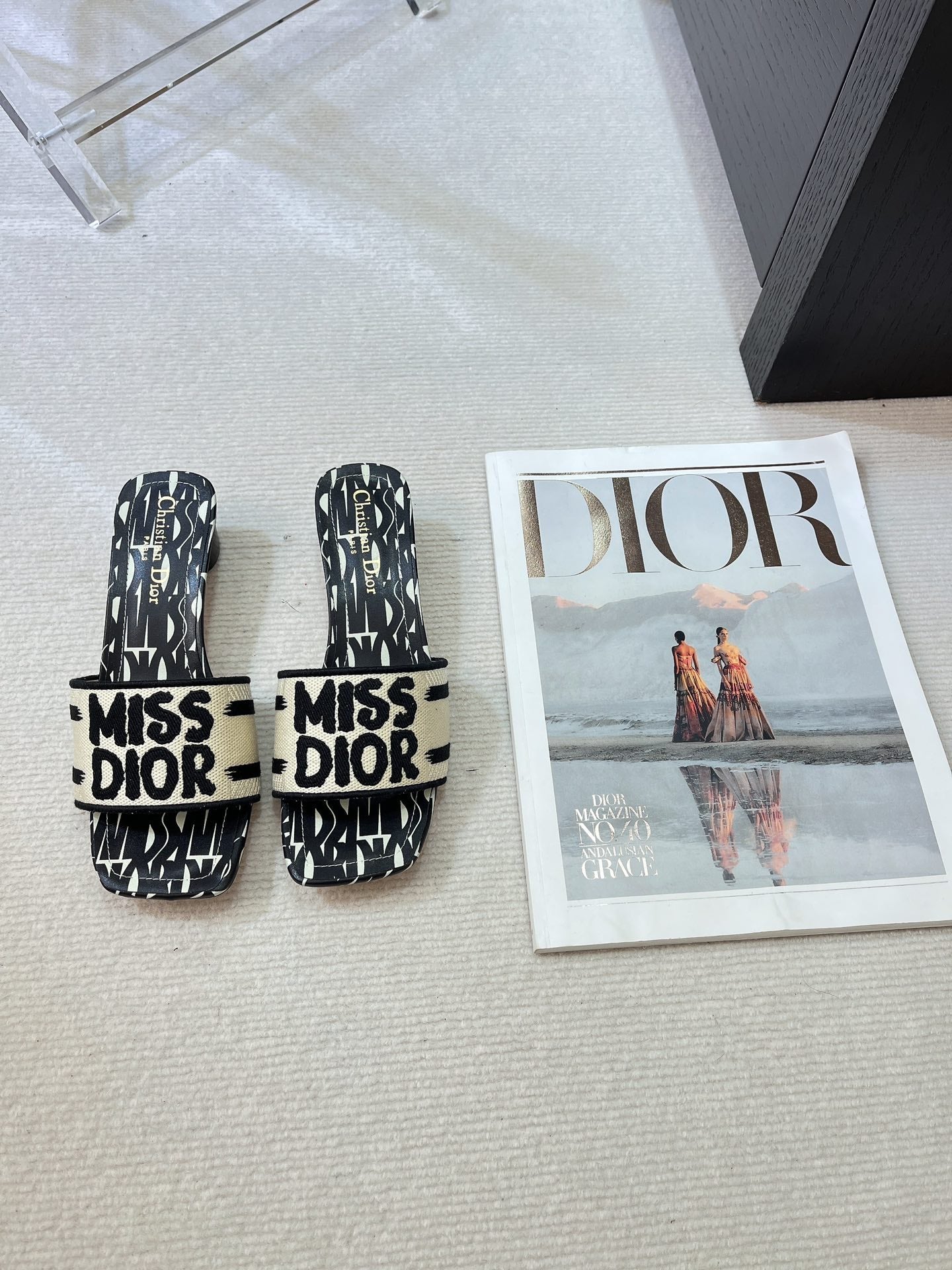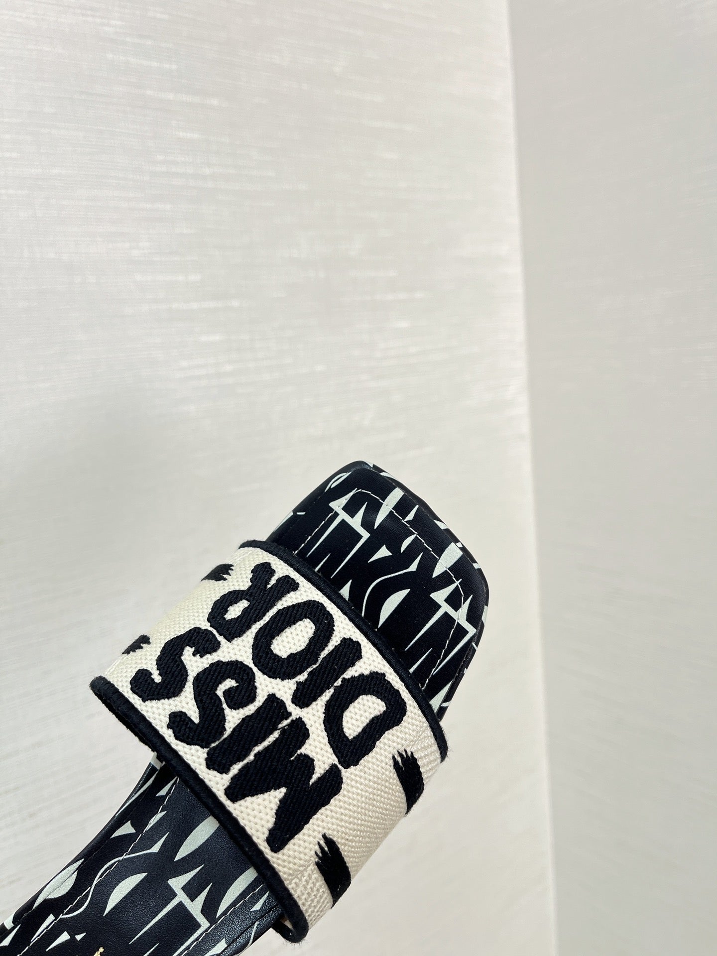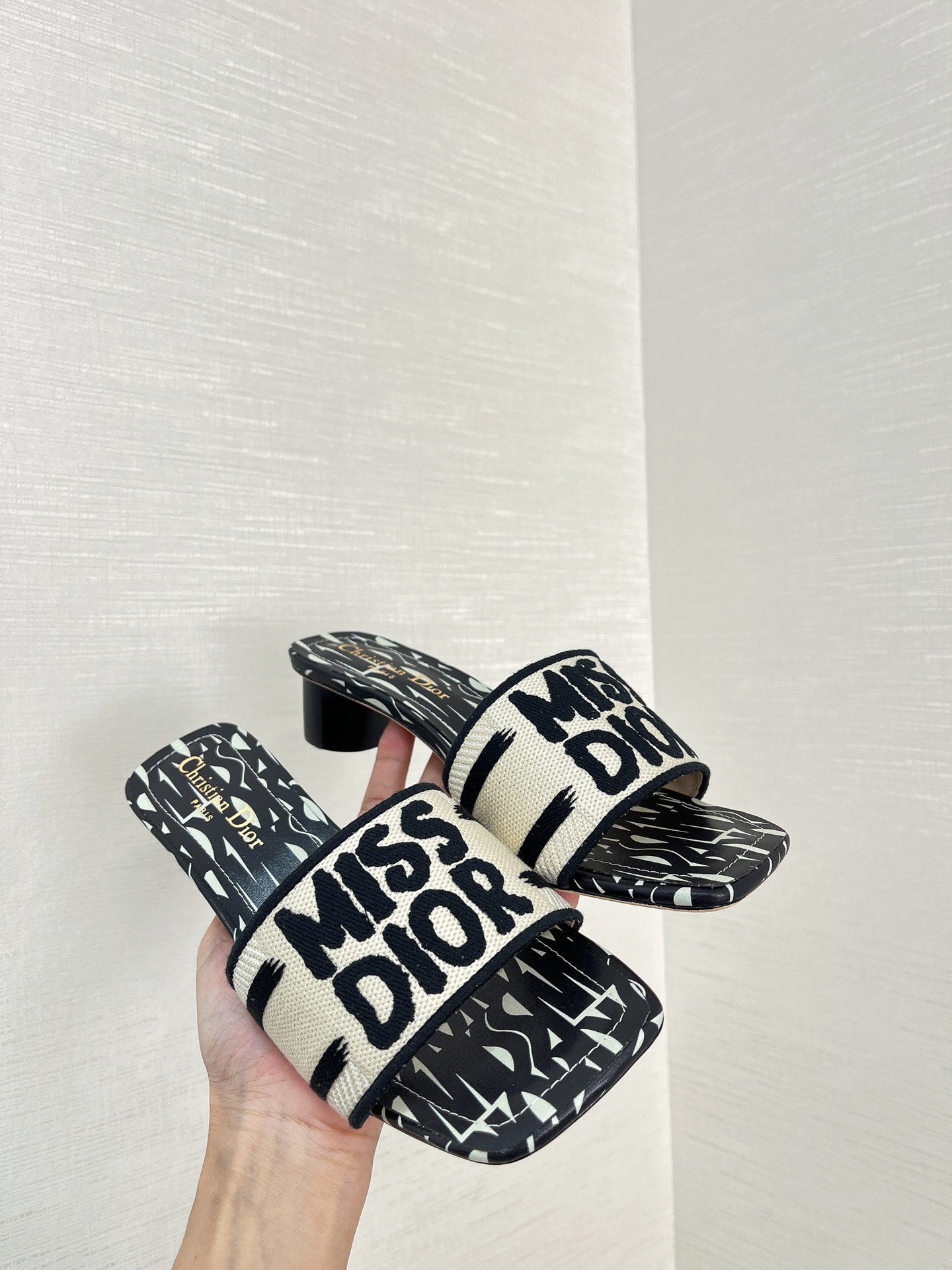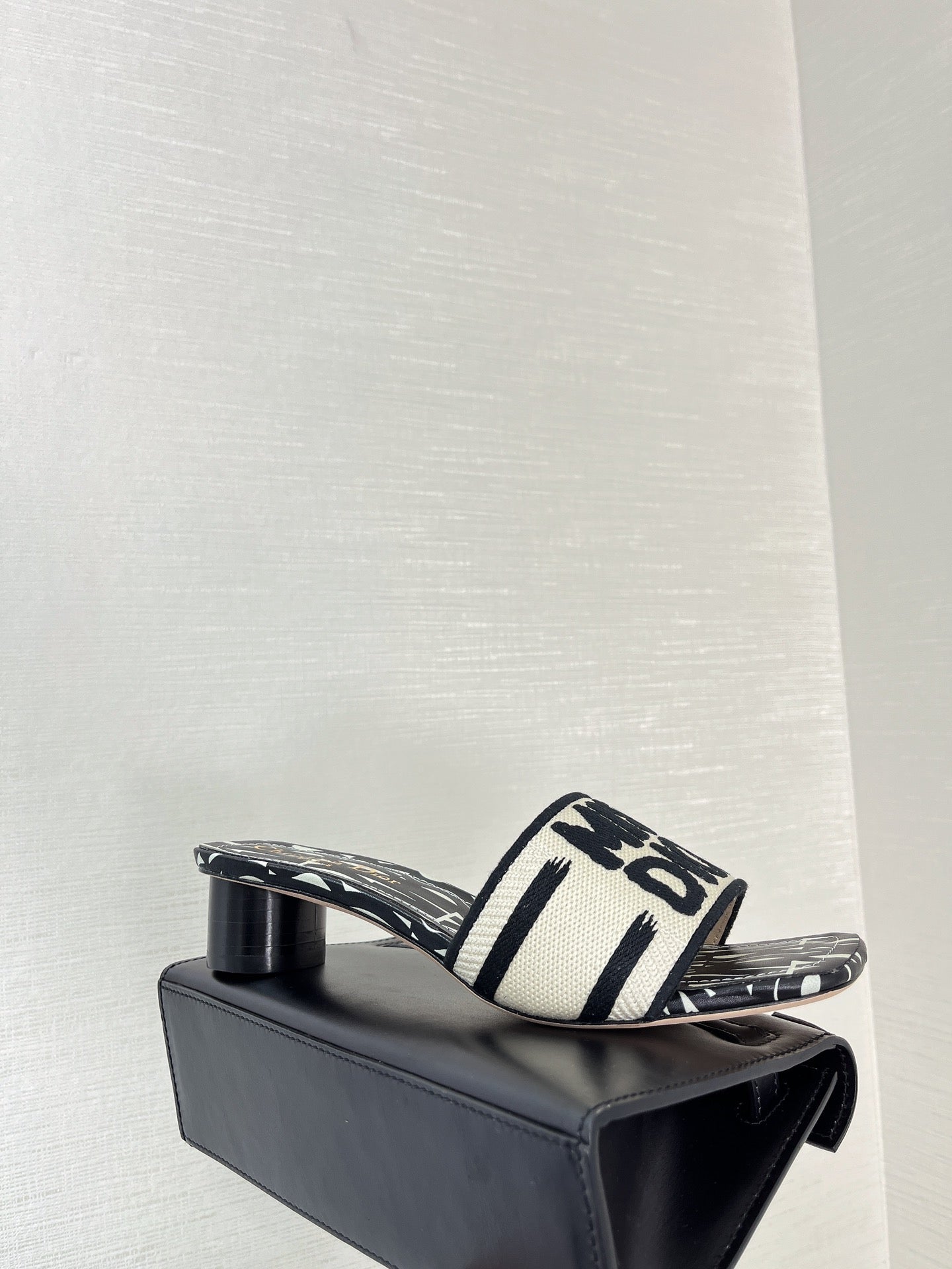 dway heeled slide 35 embroidered cotton black miss cd alllover motif