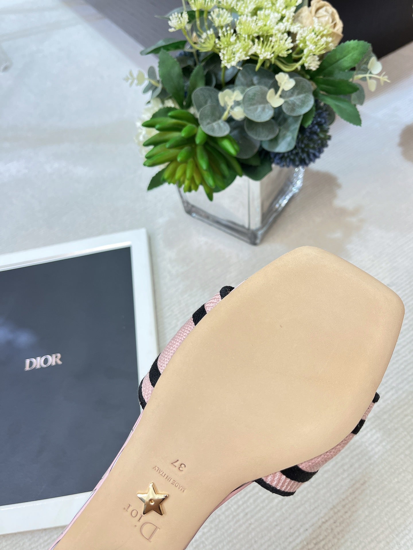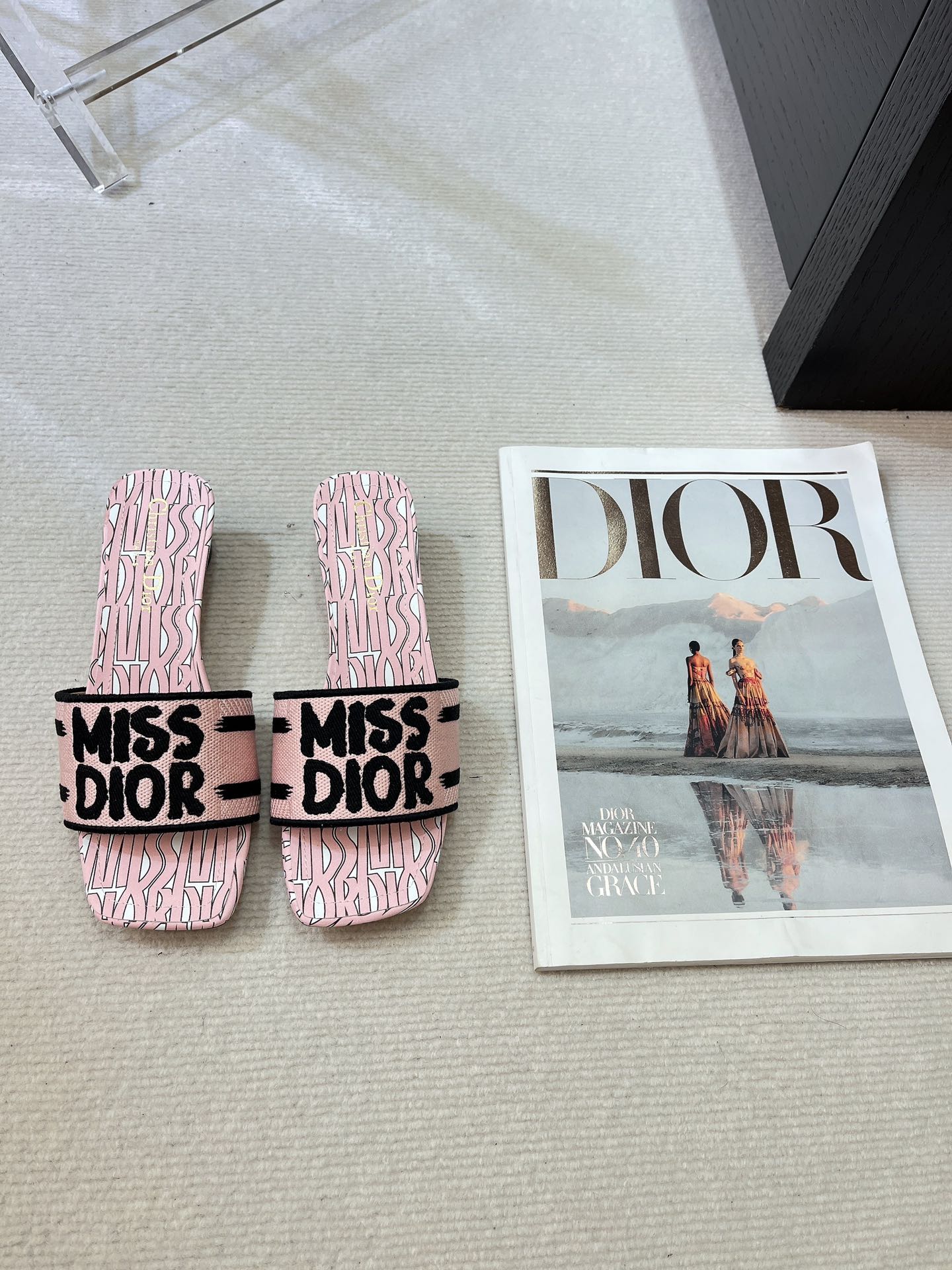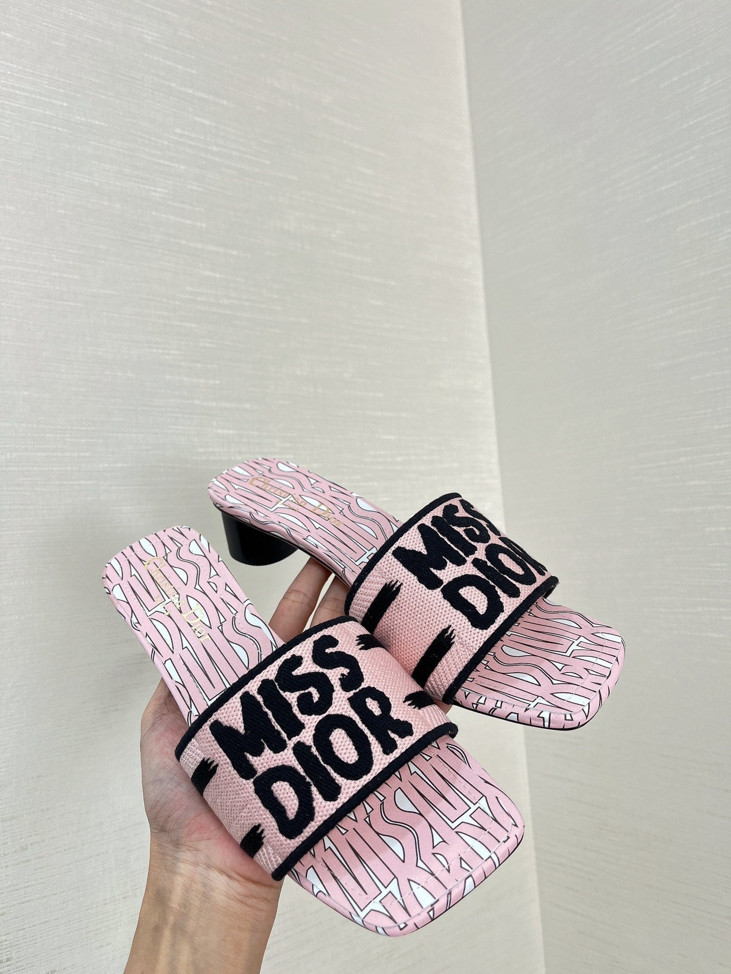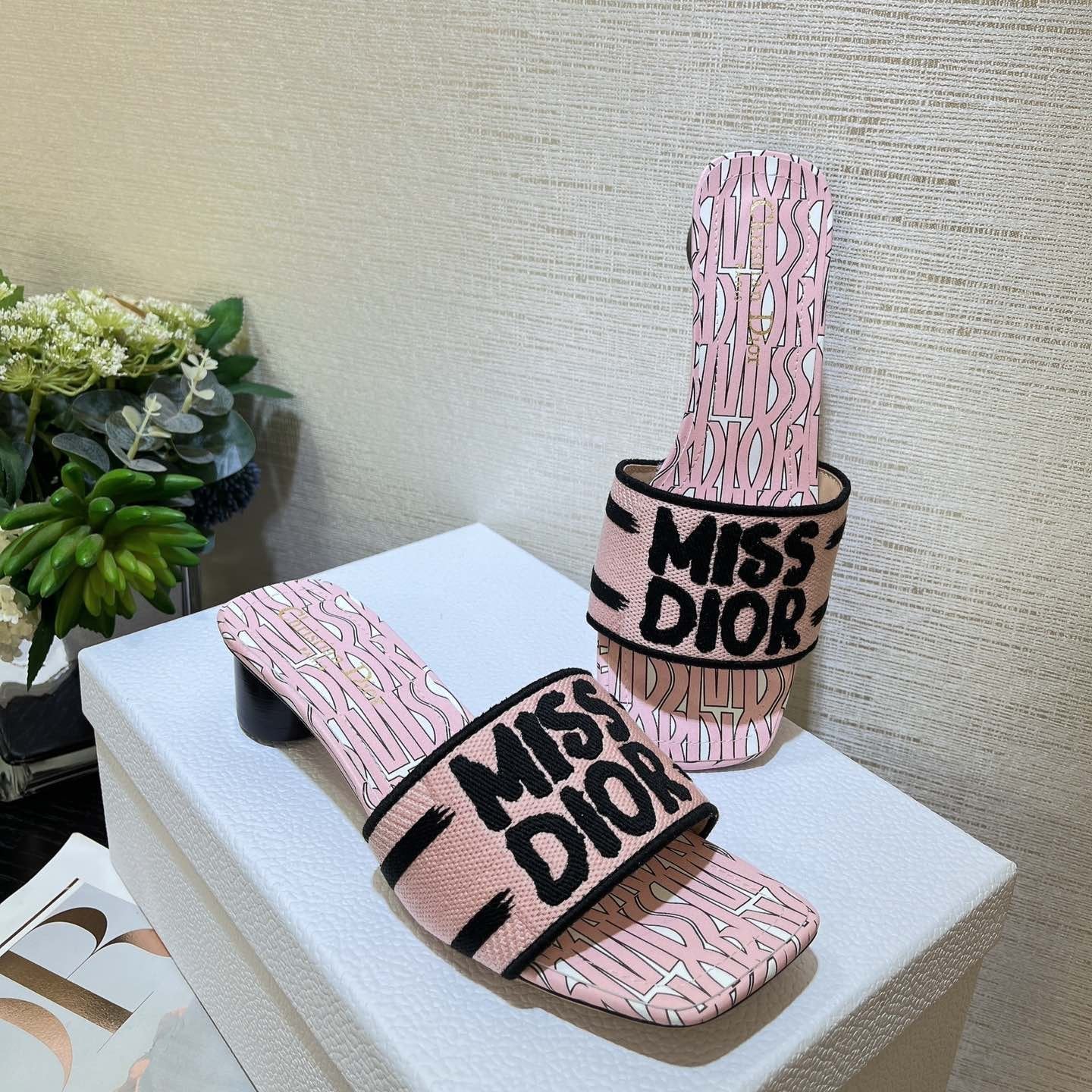 dway heeled slide 35 embroidered cotton pink miss cd alllover motif