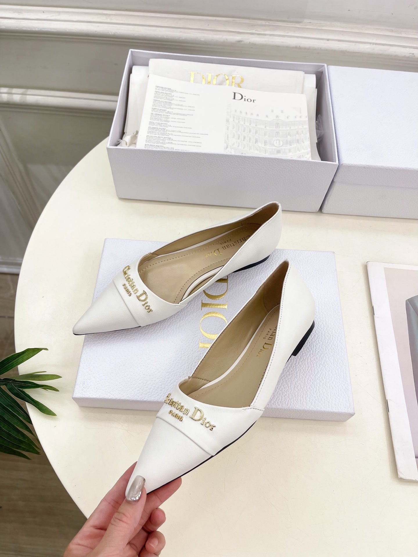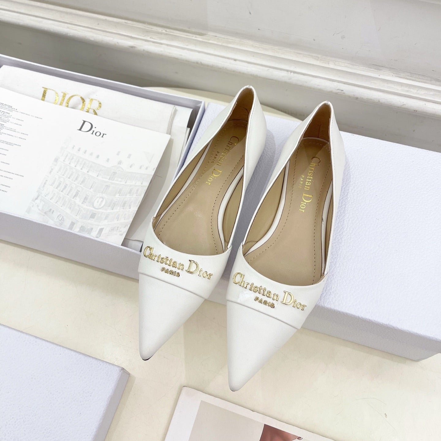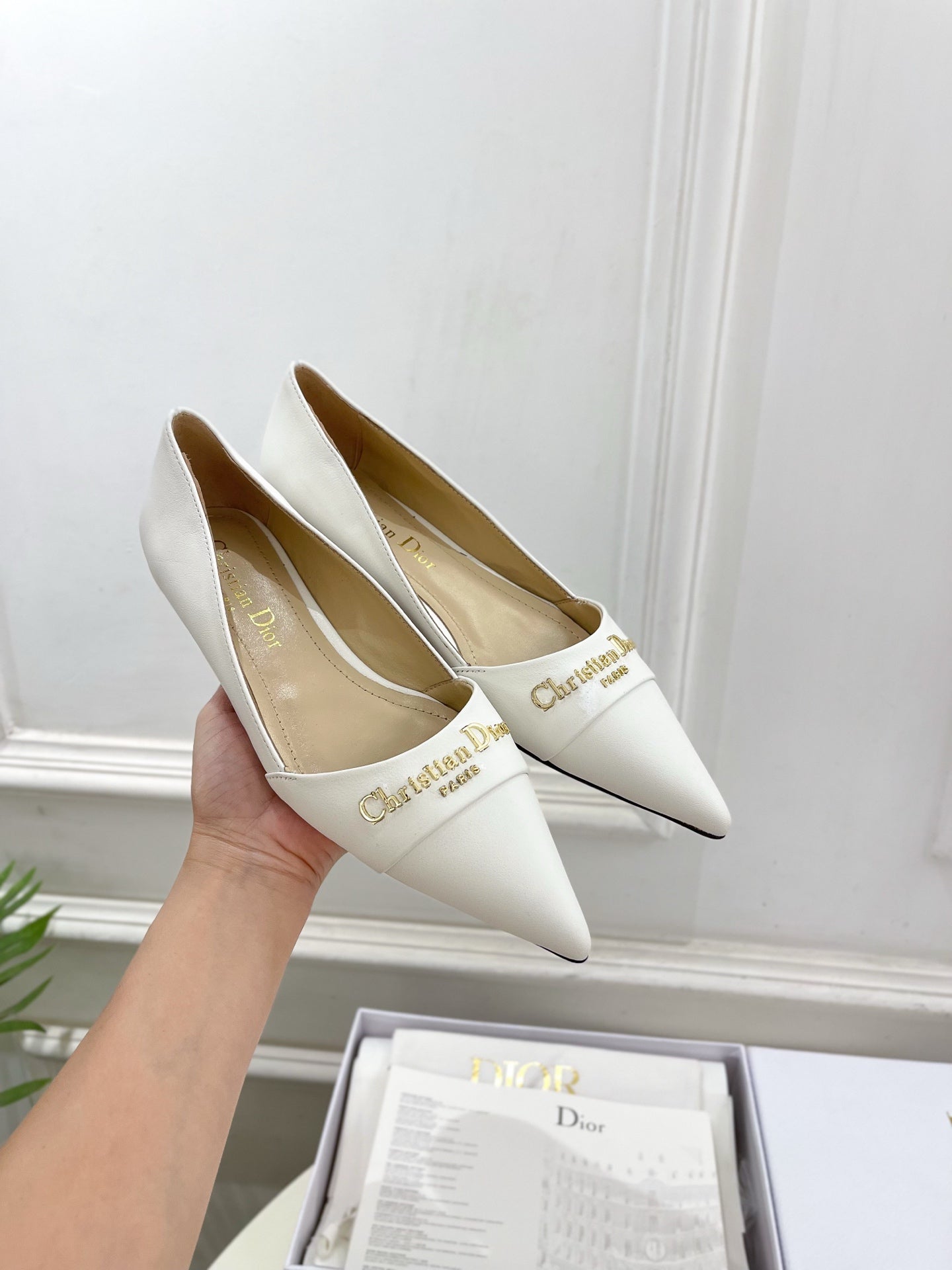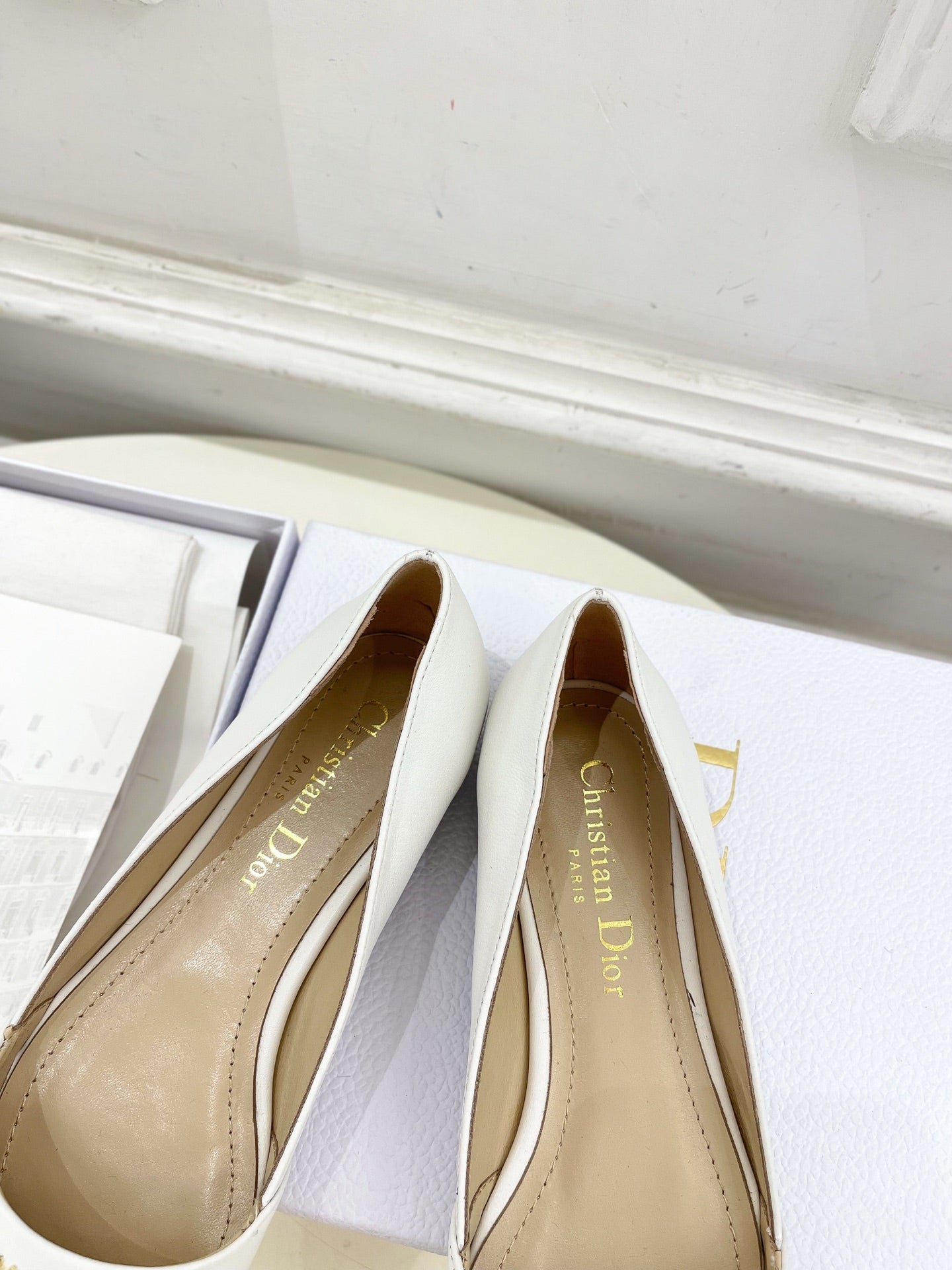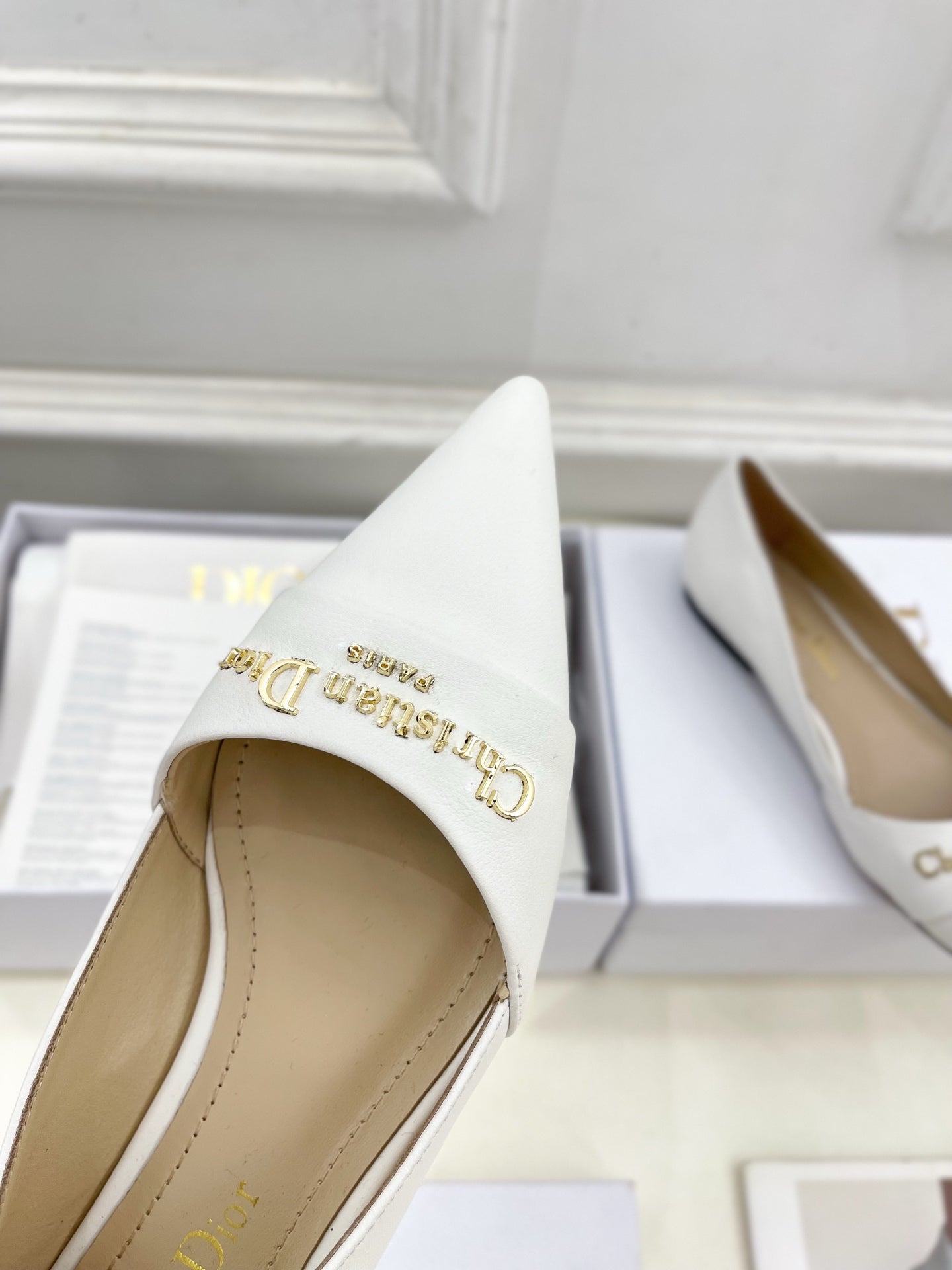 CD 25 Pump Flat White Calfskin 307416