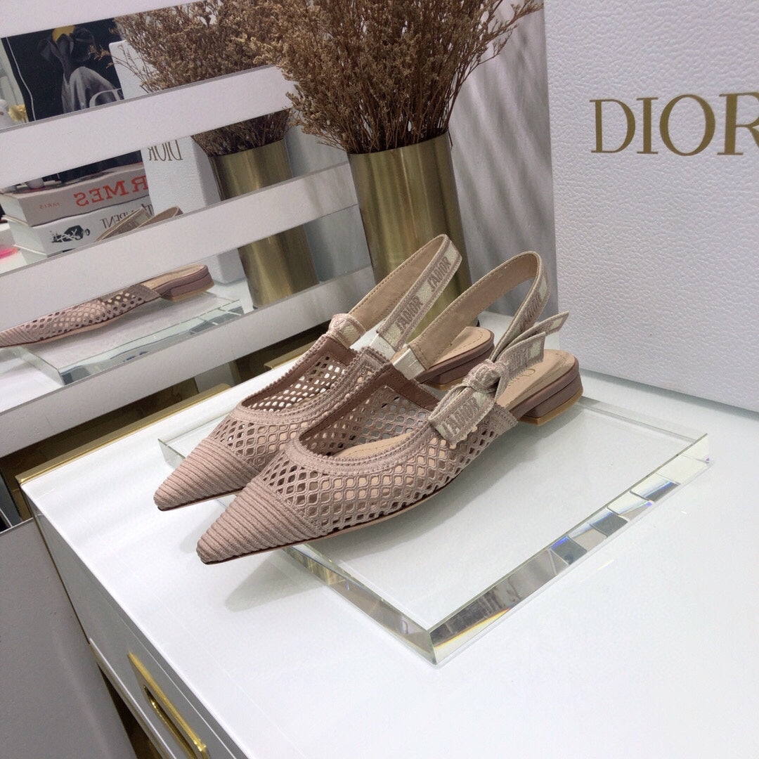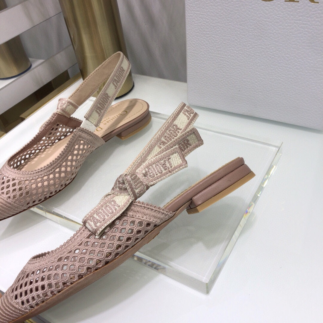 JAdior slingback flat transparent mesh rose canelle embroidered cotton