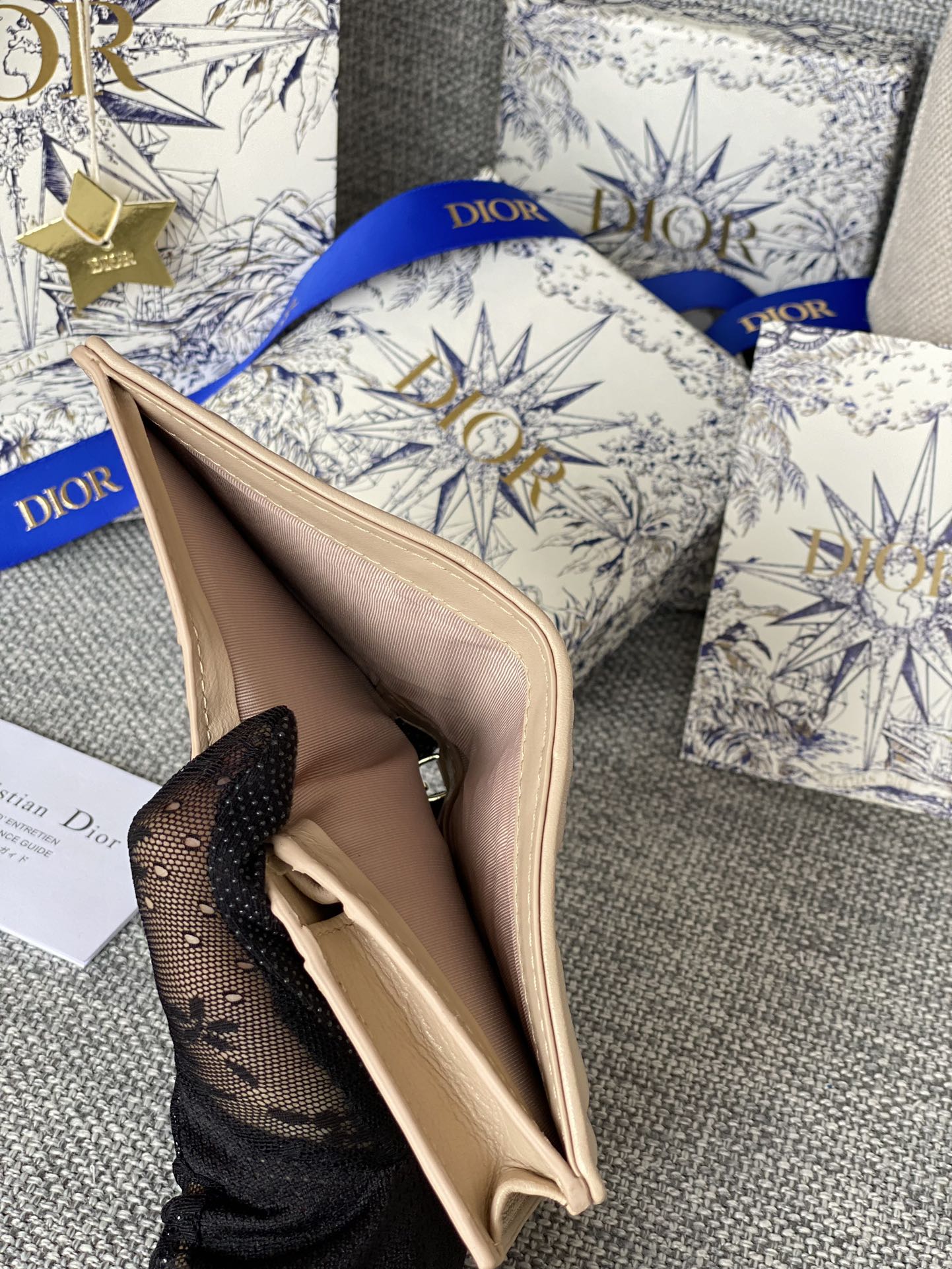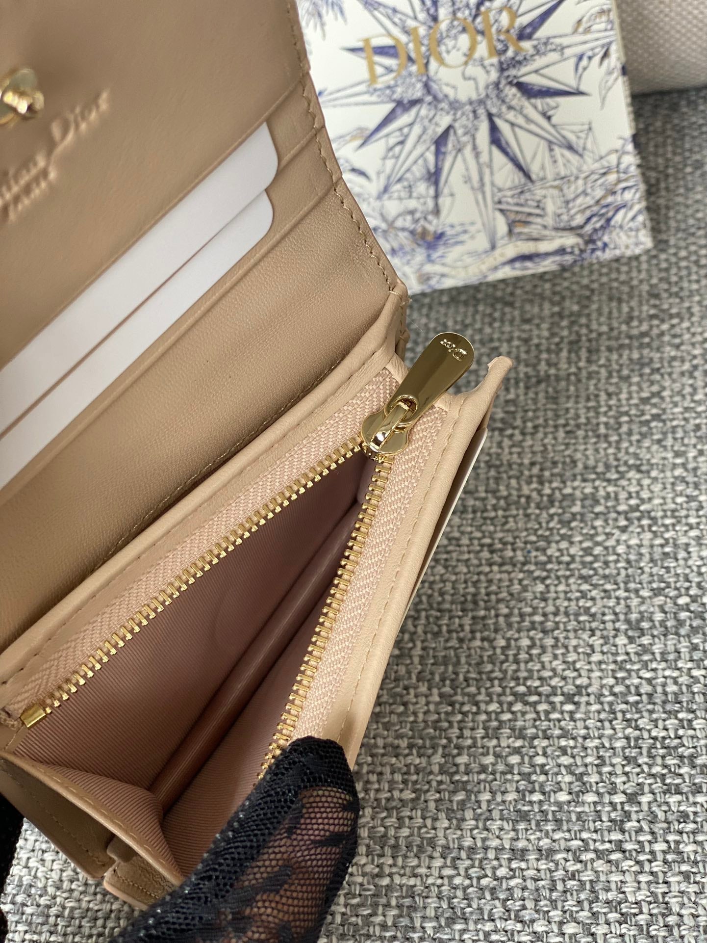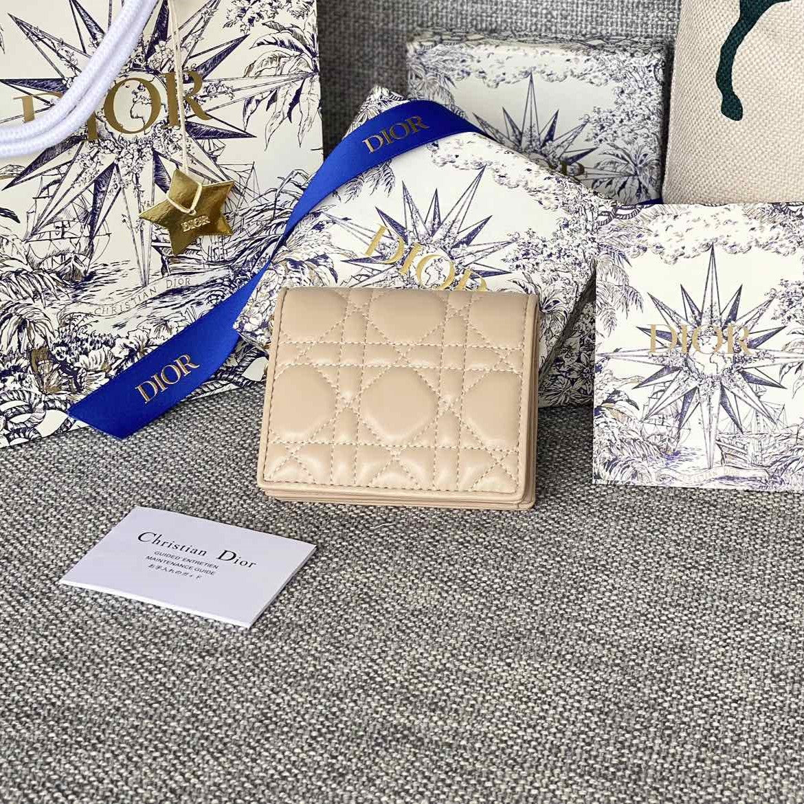 CD Caro 11cm Compact Wallet Beige Calfskin