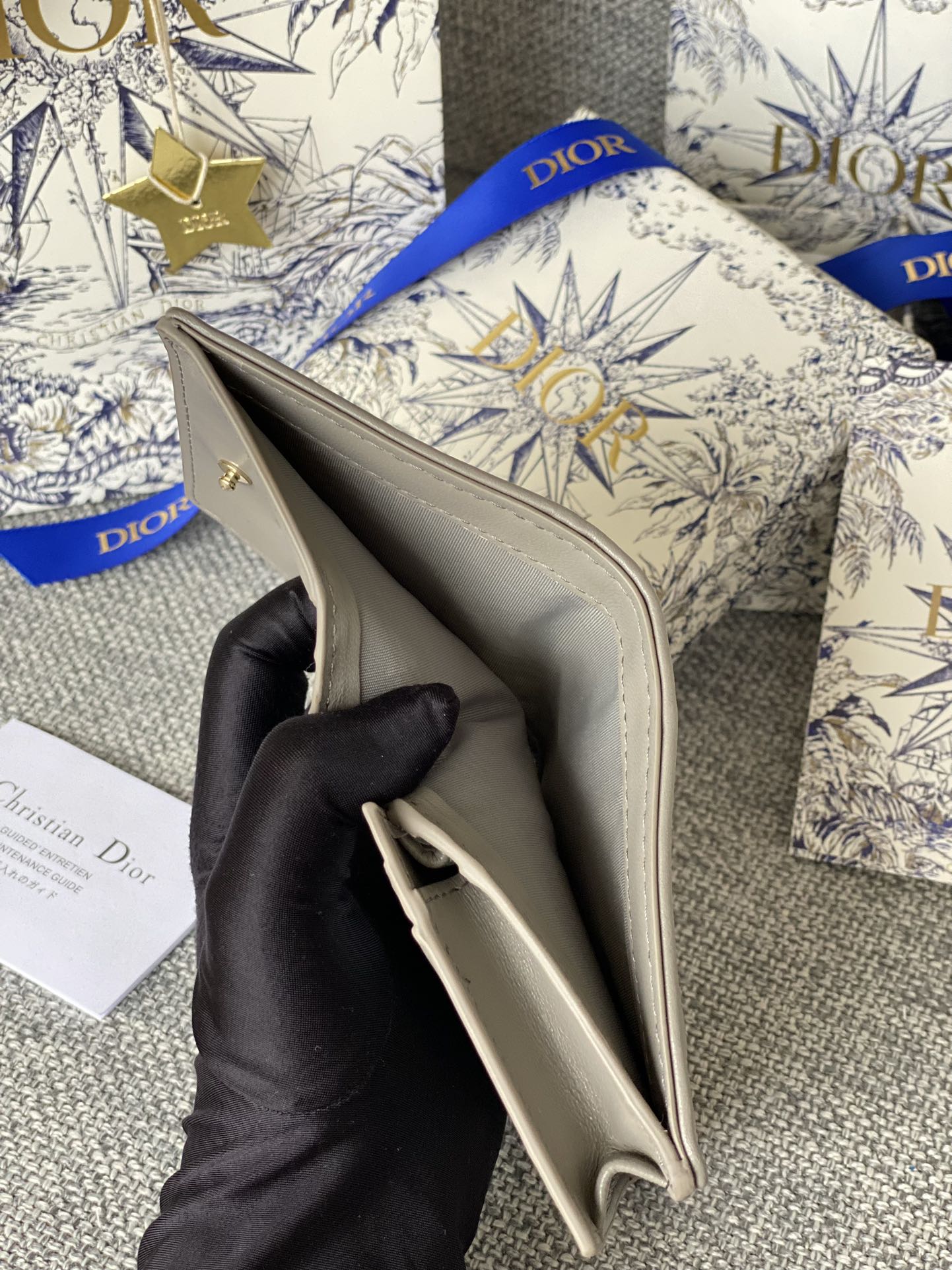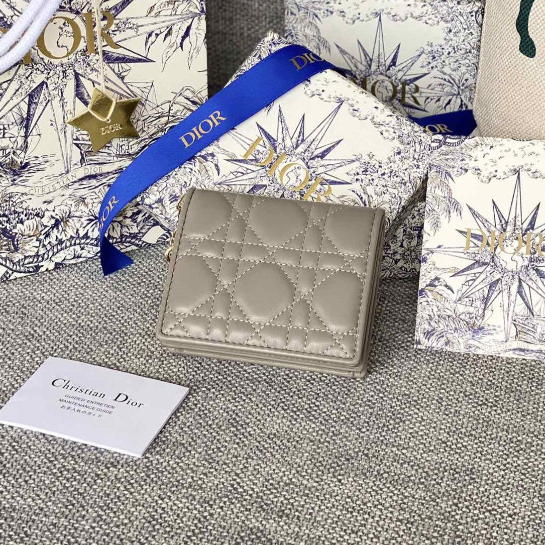 CD Caro 11cm Compact Wallet Grey Calfskin