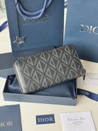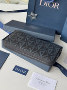 CD Diamond Zipped Long Wallet Black Blue Canvas & Cowhide