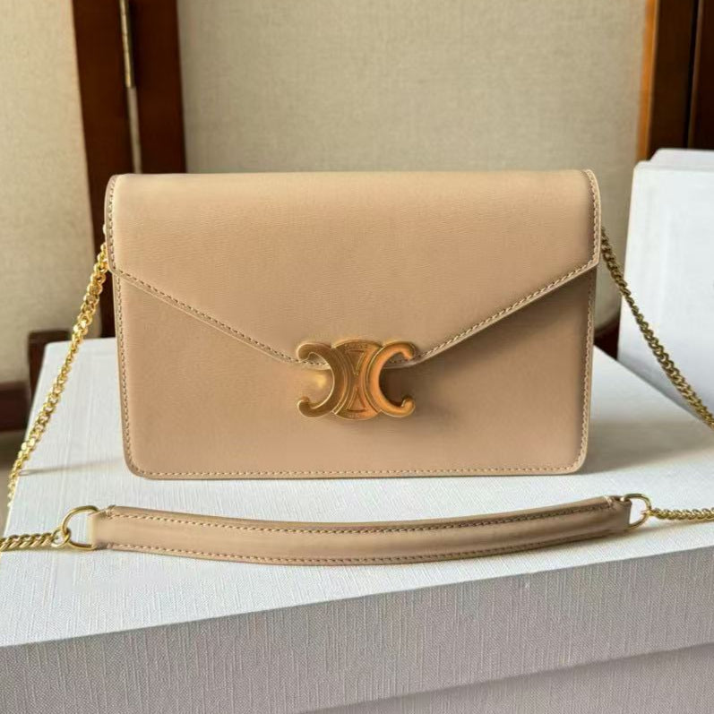 Celine Cuir Triomphe Logo-Printed Bag Beige Gold Cowhide