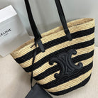 Celine Medium Supple Classic Panier 30cm Black Calfskin Beige Raffia