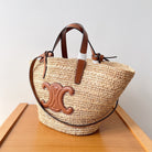 Celine Teen Supple Classic Panier 22cm Brown Calfskin Beige Raffia